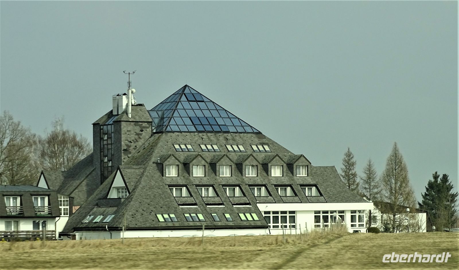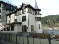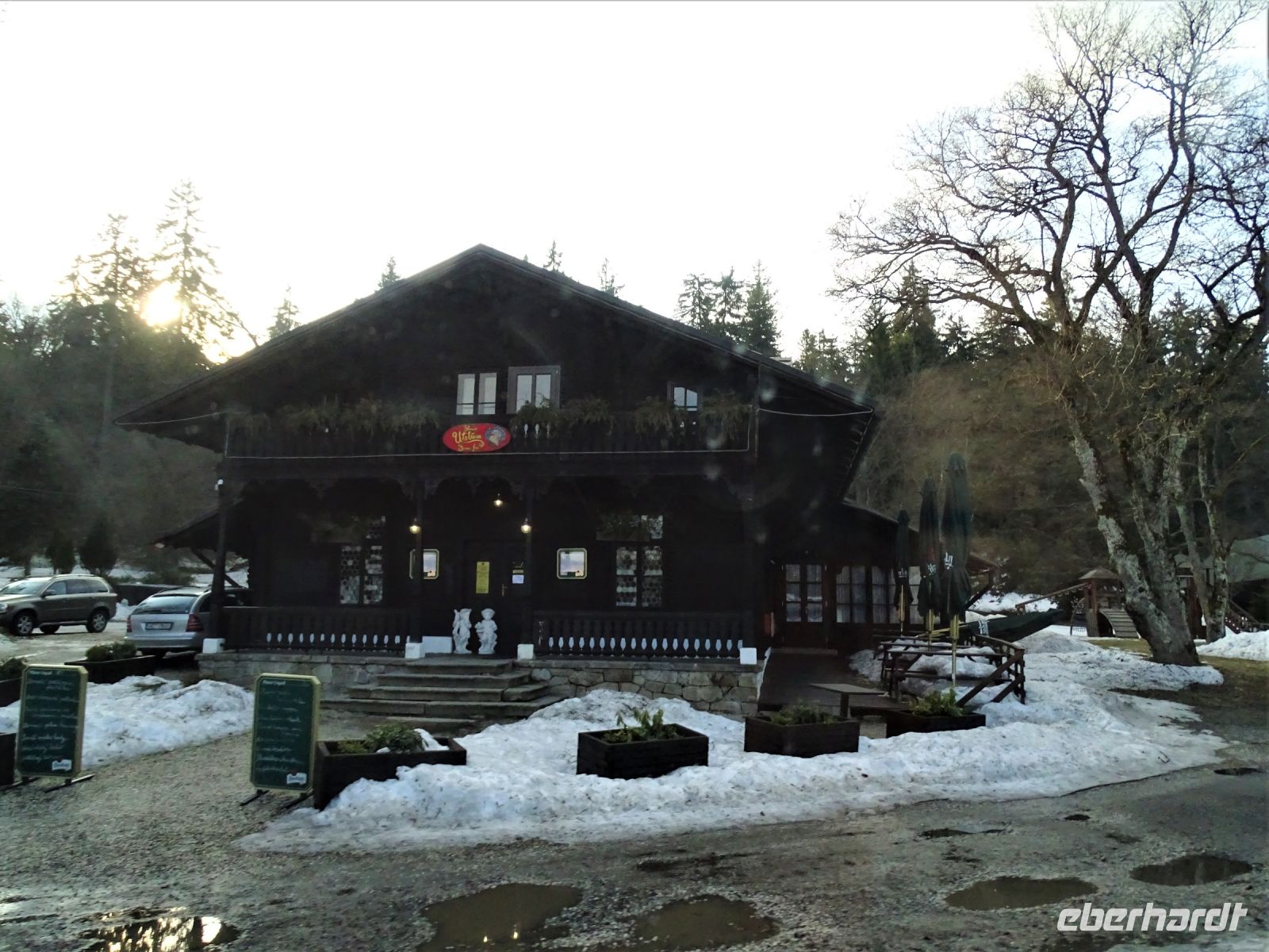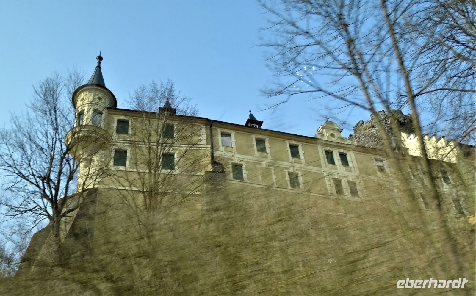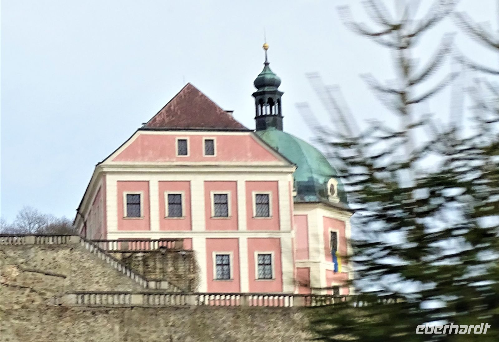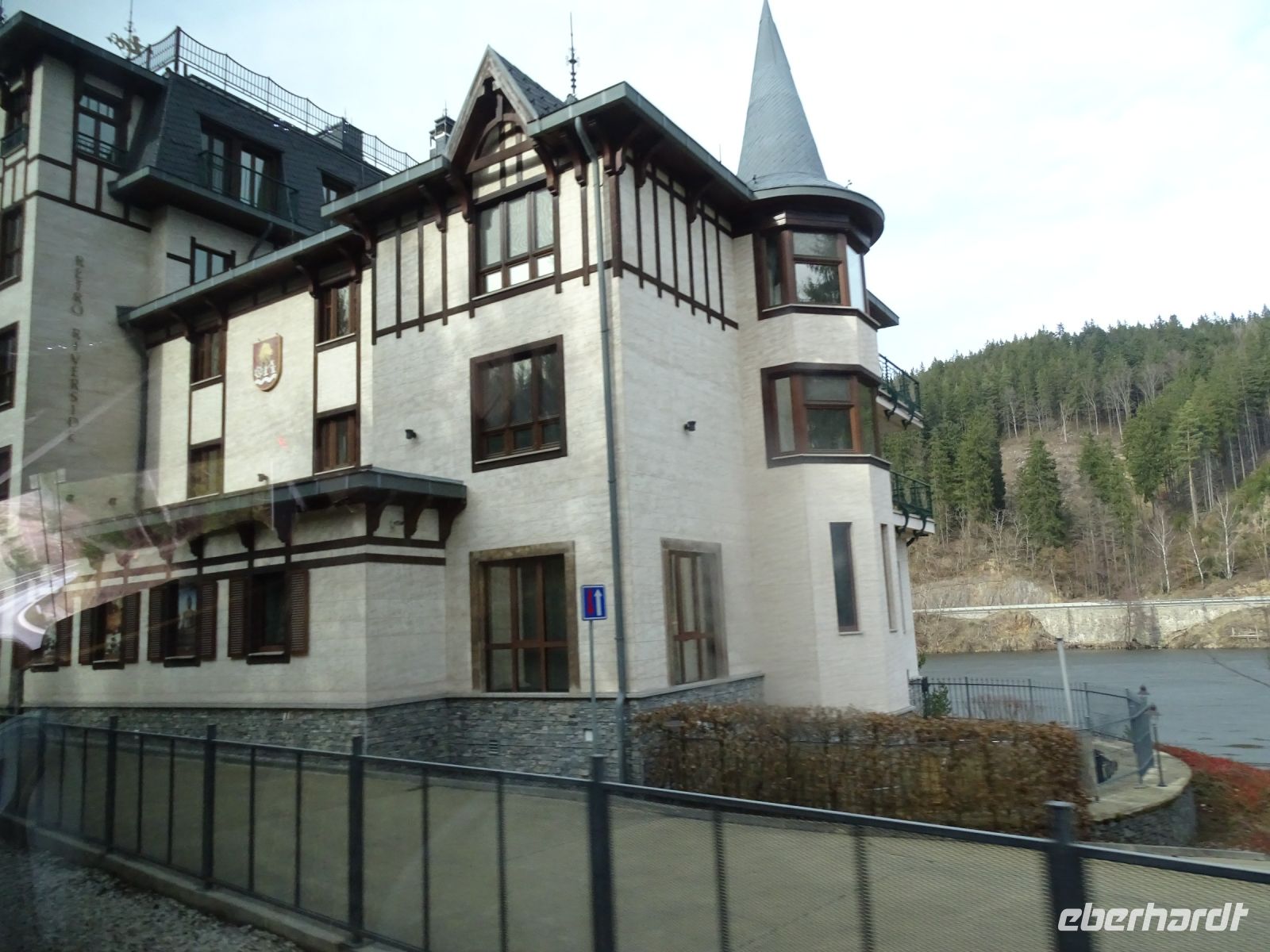 Danach ging die Fahrt weiter durch das Naturschutzgebiet Glatzen, wo wir im Vorbeifahren die Ausläufer des Hochmoores durch die Bewaldung erahnen konnten. Die Höhenlage hatte sich inzwischen verändert, so dass wir mit Schnee bedeckte Straßenränder erlebten, um sogleich eine besondere Siedlung zu erreichen, die aus „umgesiedelten echte Schweizer Gebirgshäusern“ bestand. Kurz darauf erreichen wir die Ortslage Königswart und konnten dort das leider geschlossene Schloss Metternich bestaunen. Unsere Busfahrerin chauffierte uns den ganzen Nachmittag ausgezeichnet und ließ uns nach gut viereinhalb Stunden wieder am Spa Hotel Centrum aussteigen.