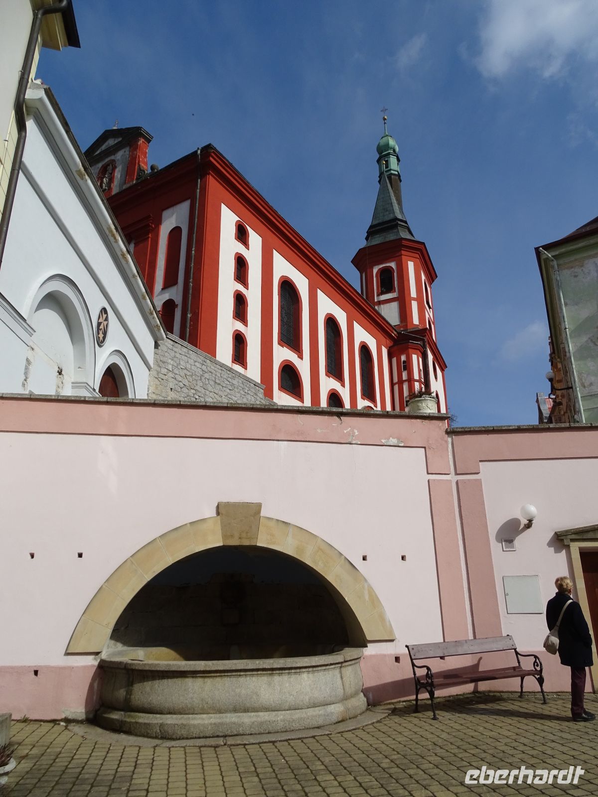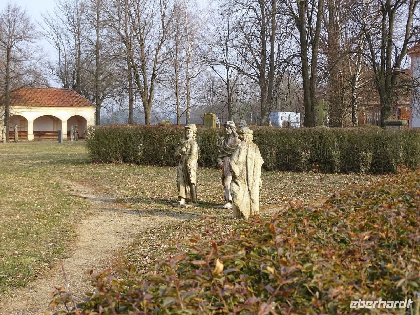 Vorbei an wunderschönen Vierseitenhöfen (Einzelgehöfte) ging es durch Nový Drahov, wo wir die herrlich restaurierten Egerländer Fachwerkhäuser bestaunen konnten. Weiter ging es leicht bergauf zum katholischen Wallfahrtsort Maria Loreto. Hier lagert ein Großteil der fast 30 Figuren des ehemaligen Kreuzweges, einer der längsten der Welt.