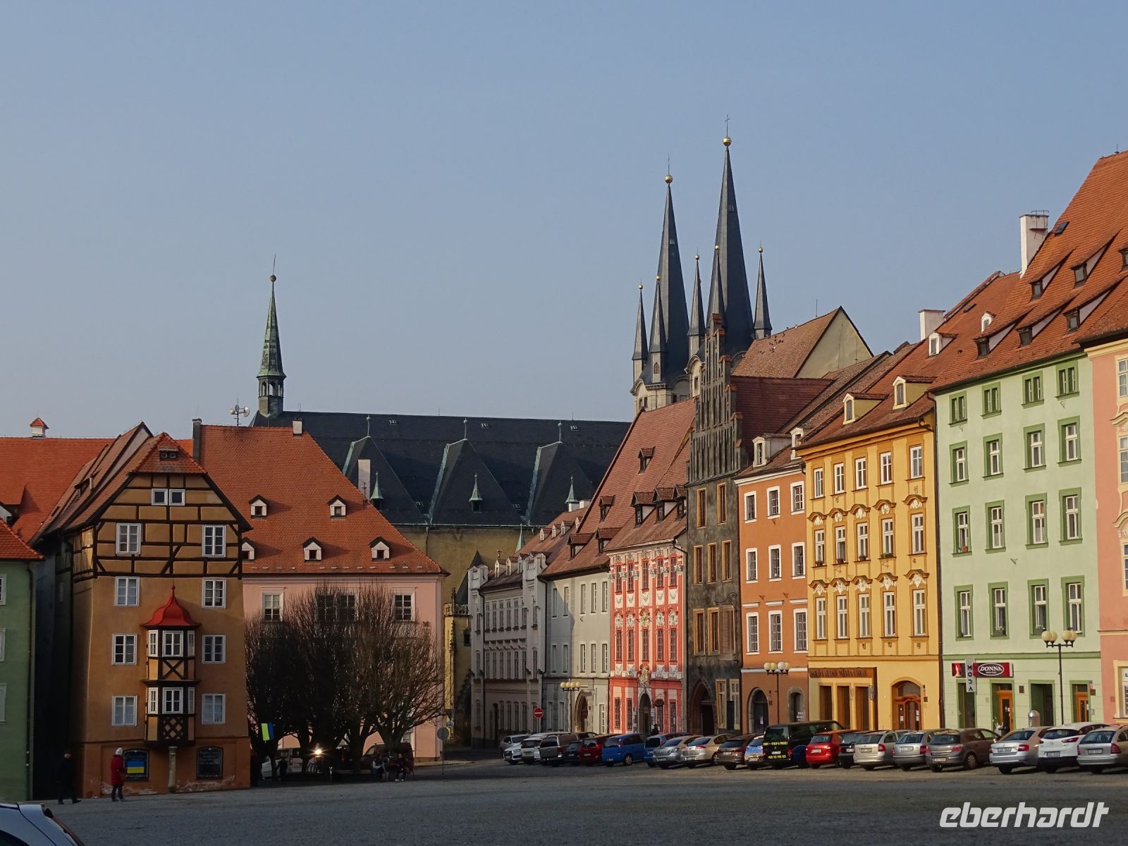 Gut gestärkt und bestens unterhalten setzen wir unsere Fahrt in Richtung Eger (Cheb), vorbei an der Feste der Burg Seeberg, fort. In Eger (Cheb) angekommen, erläuterte uns unser Reiseführer die Bedeutung der alten Festung Cheb als wichtiger Zollpunkt seiner Zeit und wir staunten über die gewaltige Kirche St. Nikolaus mit ihren hohen Türmen. In Marktnähe verließen wir zu einem kleinen Rundgang unseren Bus und statteten der Rolandstatue, die auf einem großen Sockel mitten auf dem Marktplatz wacht, einen Besuch ab. Wir bummelten über den langgestreckten Markt, der von der wunderschönen Fassadenvielfalt historischen Häuser umsäumt wird und bestaunten das „schwarze Haus“ und das „Todeshaus“ von Wallenstein, der in diesem mit einer Lanze niedergestochen wurde. Leider ließ uns der sehr kalte Wind nicht lange Verweilen und so stiegen wir wieder in unseren Bus, der uns nach nur kurzer Fahrt wieder in unser Hotel in Franzensbad brachte. Heißer Tee war nun das begehrteste Getränk und wir ließen uns das allabendliche, köstliche Drei-Gänge-Menü schmecken. Ein sehr erlebnisreicher Tag ging zu Ende und jeder ließ den Tag nach seiner Fasson ausklingen.