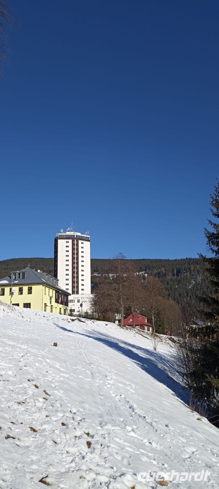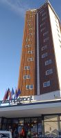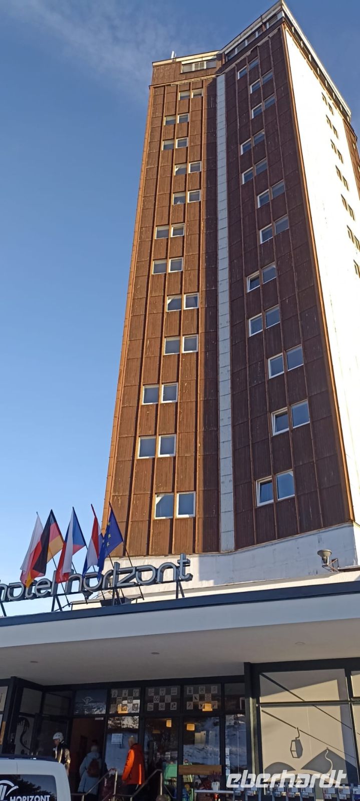 Unser Hotel „Horizont“ ein beeindruckendes 18-stöckiges Hochhaus, das einen fantastischen Blick über die verschneite Landschaft bietet.