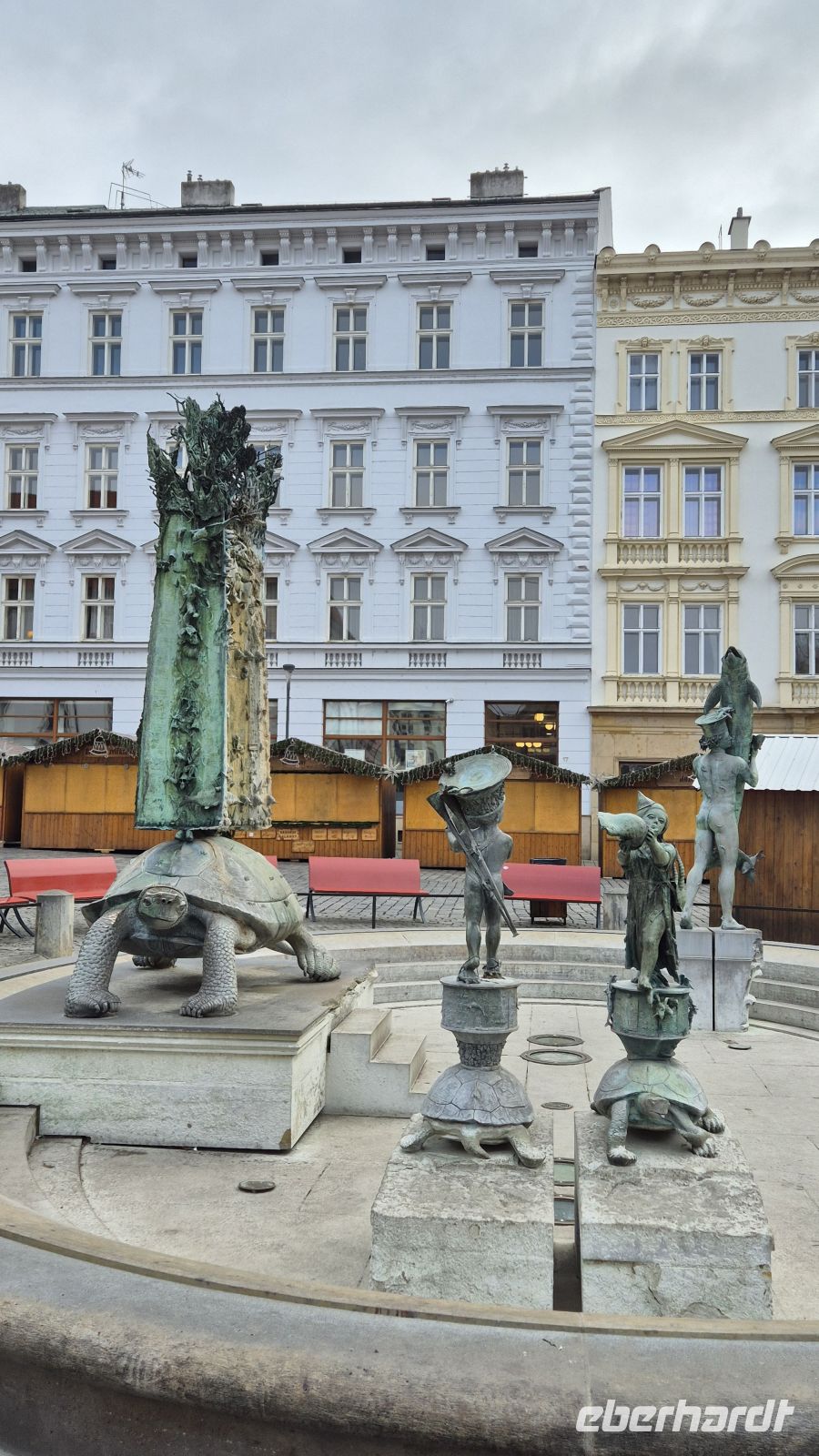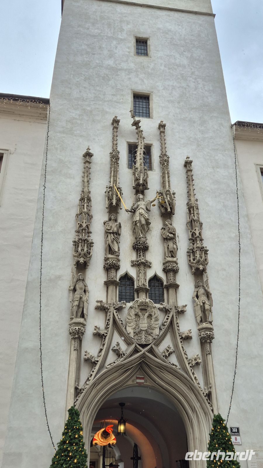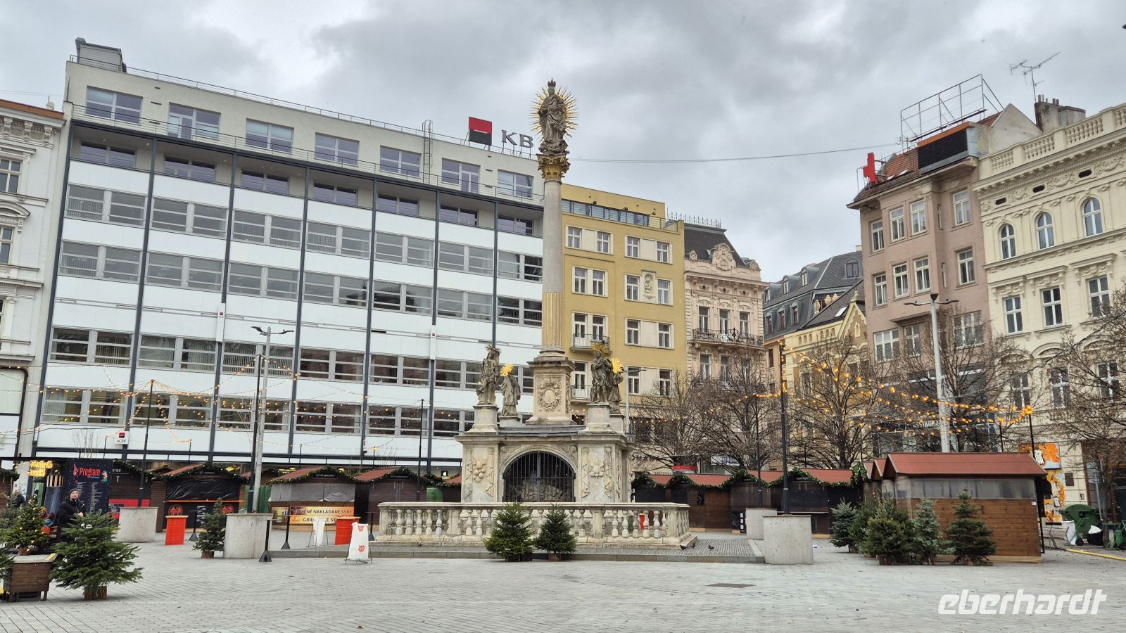 Anschließend geht es dann weiter zum Janacek-Theater, von wo aus wir zu Fuß die Altstadt erkunden. Es geht vorbei am Freiheitsplatz, dem alten Rathaus - mit dem echten Brünner Drachen - bis zum Krautmarkt, wo noch einige Punschbuden geöffnet haben. Nichtsdestotrotz entscheiden sich die meisten, mit dem Bus zurück zum Hotel zu fahren.