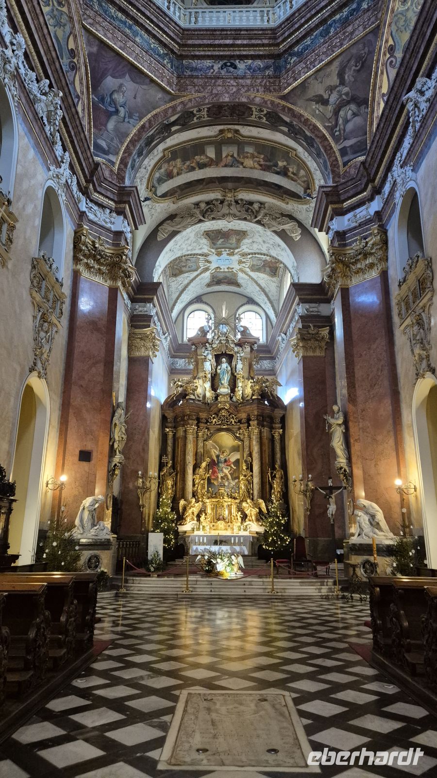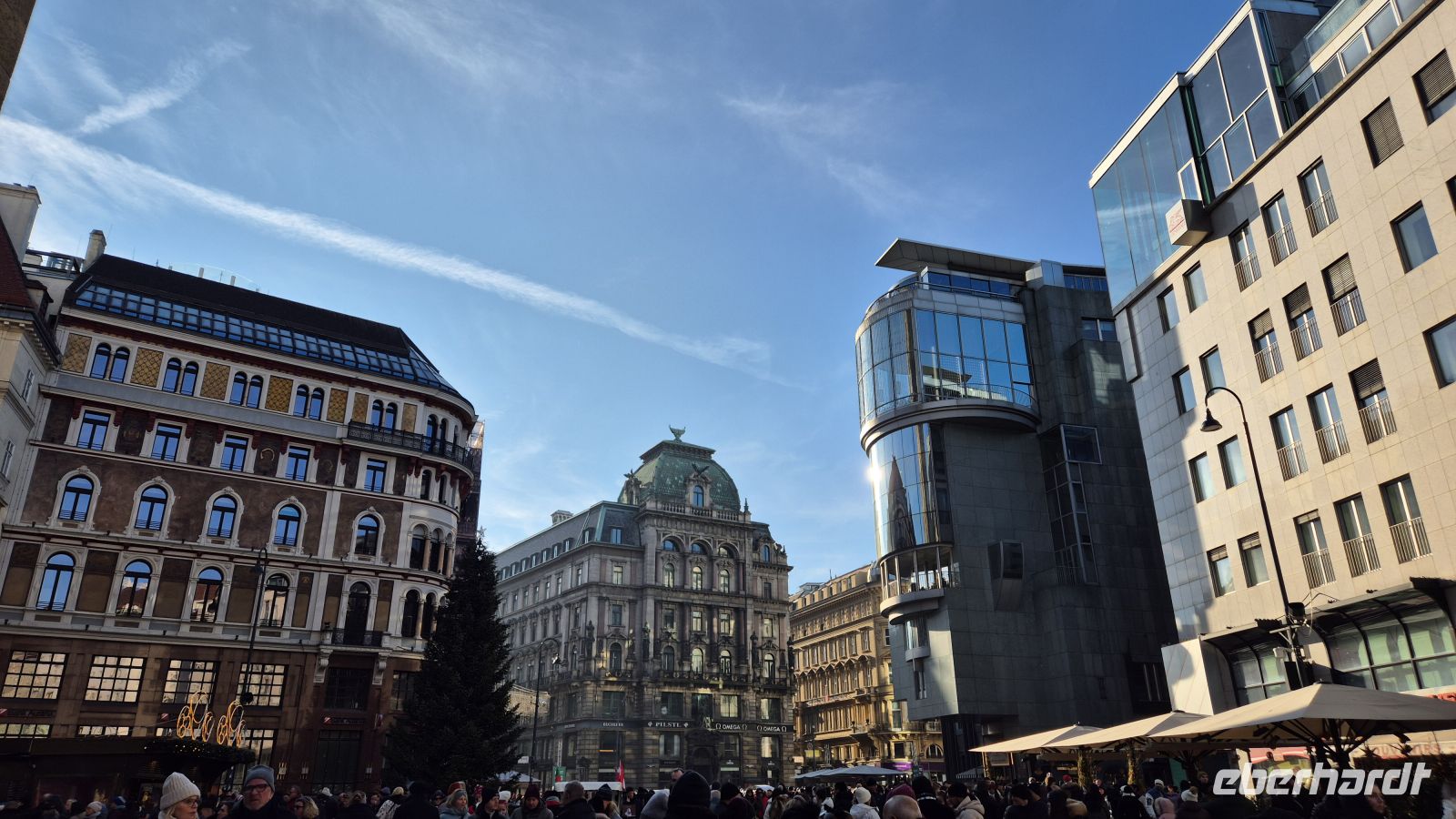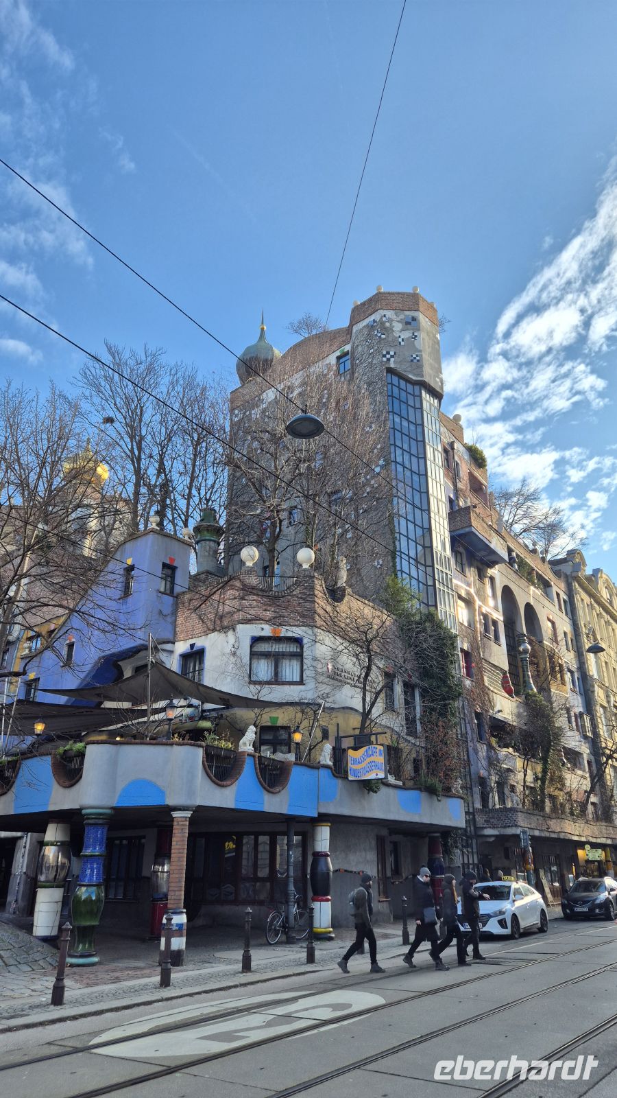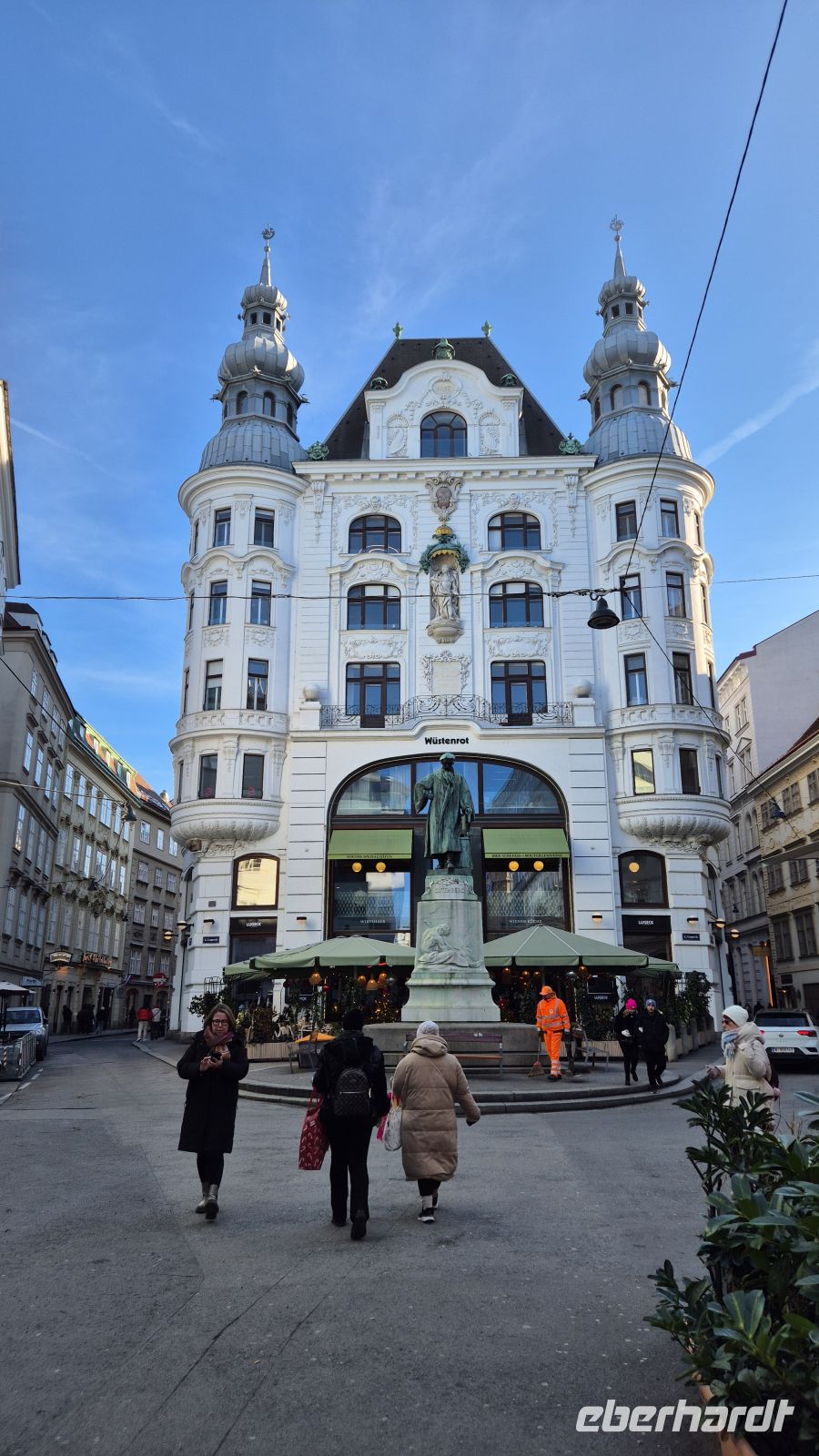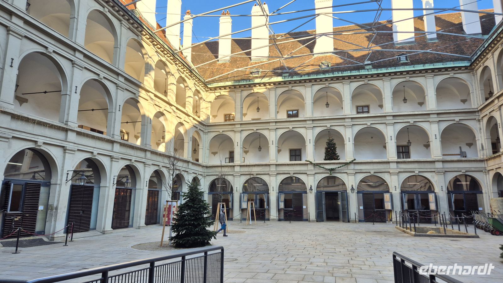 Anschließend passieren wir das Barockschloss von Mikulov und dann erreichen wir auch schon die Grenze zu Österreich. Nach einer kurzen Pause geht es dann weiter in die Hauptstadt. An der Donau und dem Donaukanal entlang geht es ins Zentrum hinein. Am Schwedenplatz an der berühmten Ringstraße treffen wir unseren Stadtführer Franz und starten zunächst zu einer Stadtrundfahrt. Das erste Ziel ist das Hundertwasserhaus. Obgleich es bereits seit beinahe 40 Jahren steht, kann es immer noch faszinieren und ist eine Attraktion. Anschließend geht es dann entlang der Ringstraße vorbei an den prächtigen Bauwerken des frühen 20. Jahrhunderts. Mit einem Abstecher entlang der Wiener Sezession und dem Naschmarkt geht es dann weiter zum Kunst- und Naturhistorischen Museum, dem Hoftheater und dem Rathaus, wo der Weihnachtsmarkt noch voll im Gange ist.