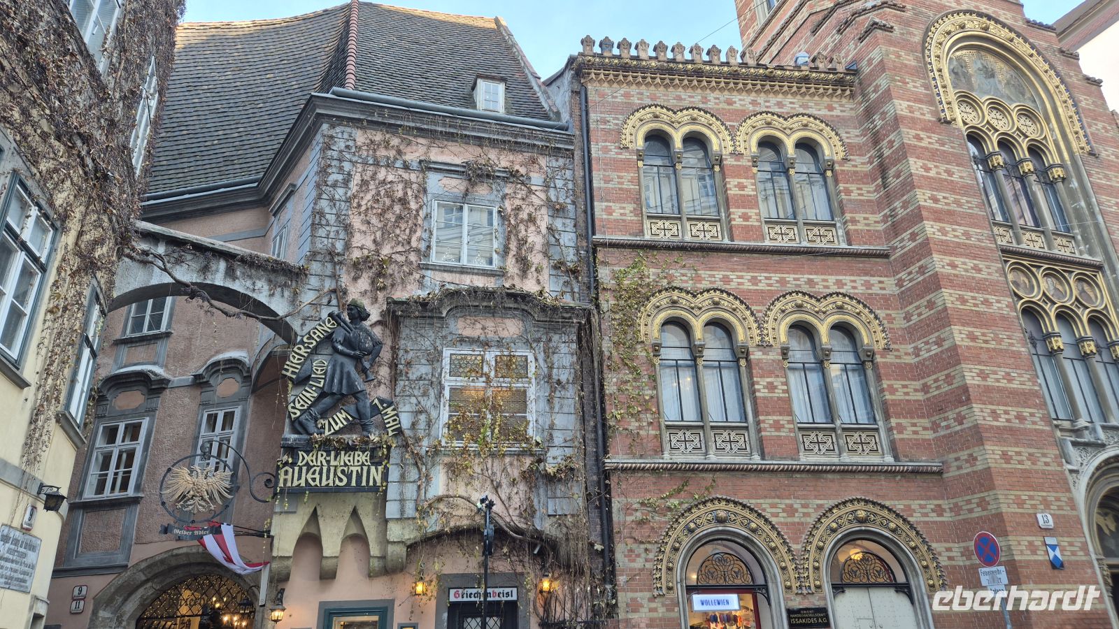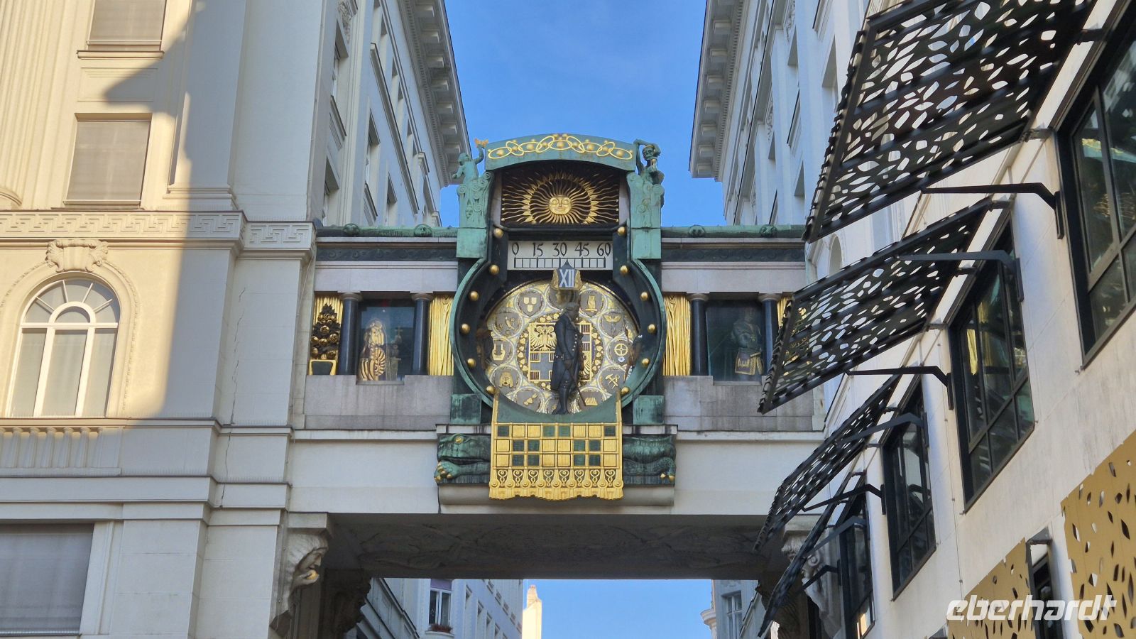 Zurück am Schwedenplatz verlassen wir dann den Bus und setzen unseren Weg durch den 1. Bezirk zu Fuß fort. Wir schlendern durch die engen Gassen, besuchen den lieben Augustin und sehen die berühmte Ankeruhr am Hohen Markt. Von hier aus ist es nicht mehr weit bis zum berühmten Stephansdom. Was war es die letzten zwei Tage in Tschechien ruhig - die vielen Menschen sind schon fast ein Kulturschock für uns. Trotzdem geht es weiter durch den Graben, vorbei an der Pestsäule und der unendlich langen Schlange, die vor dem Hofkonditor Demel auf Einlass wartet. Am Michaelerplatz erreichen wir das Zentrum der Habsburgermonarchie. Wir spazieren durch die Hofburg auf den Heldenplatz und weiter zur Hofreitschule. Von hier aus dann wieder durch das Gassengewirr in Richtung Stephansdom, damit sich auf wirklich niemand verirren kann - dann ist es nach informativen Stunden Zeit sich von Franz zu verabschieden und wir haben nun noch Zeit für eine Mittagspause oder um die Stadt noch auf eigene Faust weiter zu erkunden. Möglichkeiten gibt es schließlich genug.