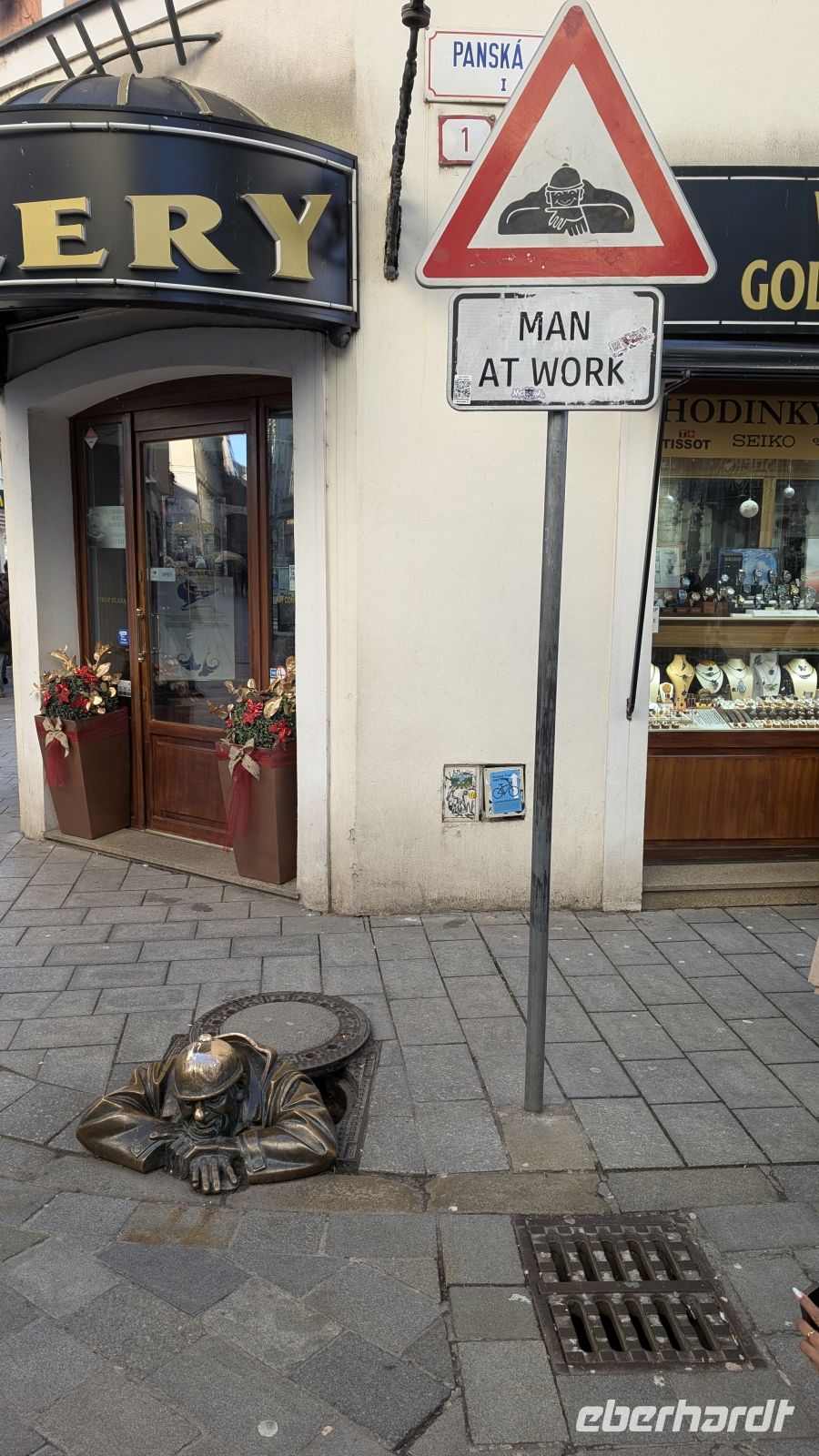 Ein Foto mit dem „Schönen Naci“ (nicht zu verwechseln mit dem heute von der Politik und Medien geächteten Wort Nazi, was im Grunde nur Nationalstolz bedeutet), vor dem Haus des Kaffee Mayer, ist ein MUSS in Bratislava.