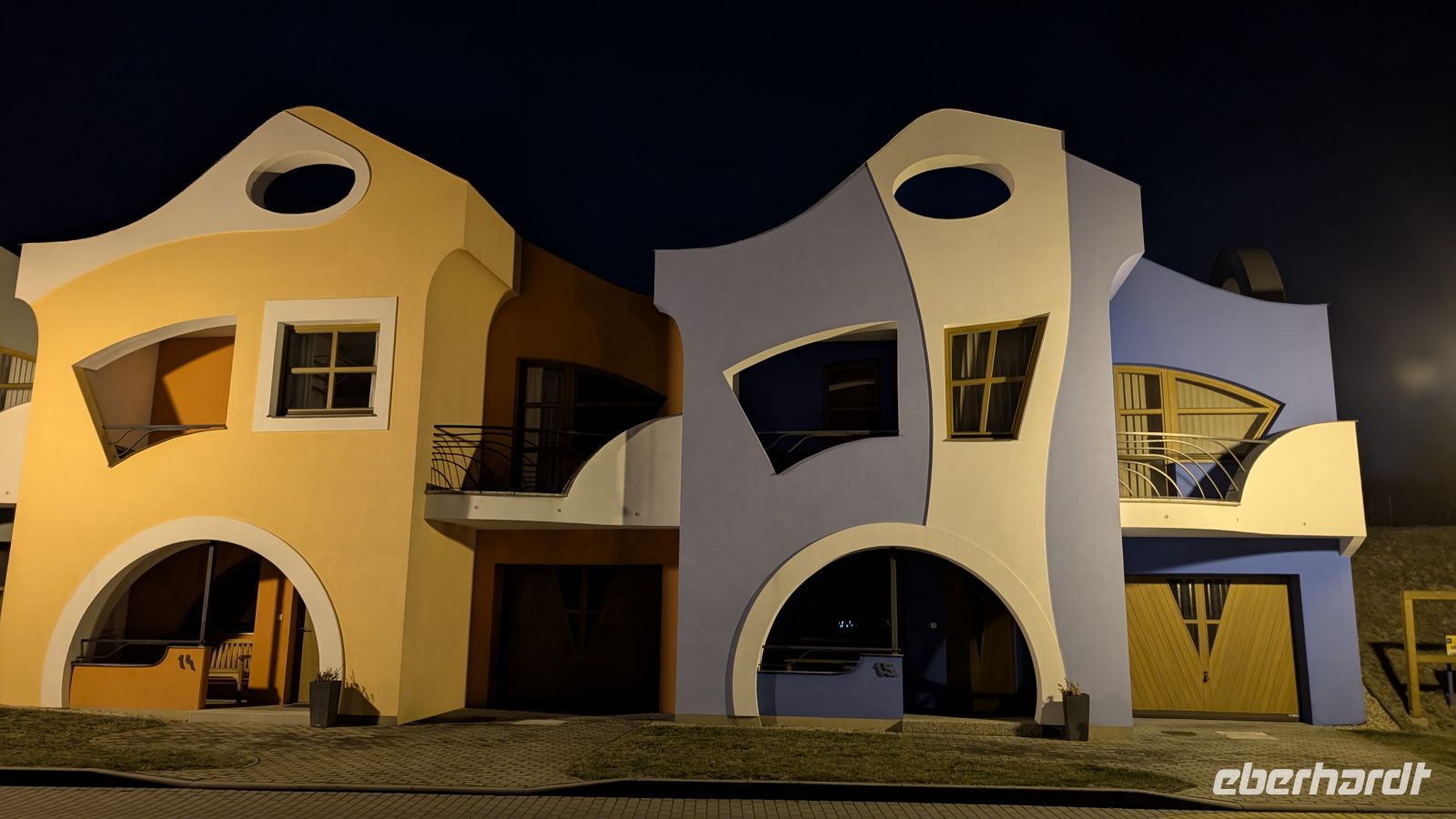 Herden von Rehe sah man links und rechts der Fahrbahn äsen, aber je näher wir uns Brünn näherten umso dunkler wurde es. Der Himmel wurde erneut von dicken Wolken überzogen, was uns aber nicht abhielt, noch schnell die „besoffenen Häuser“ anzuschauen.