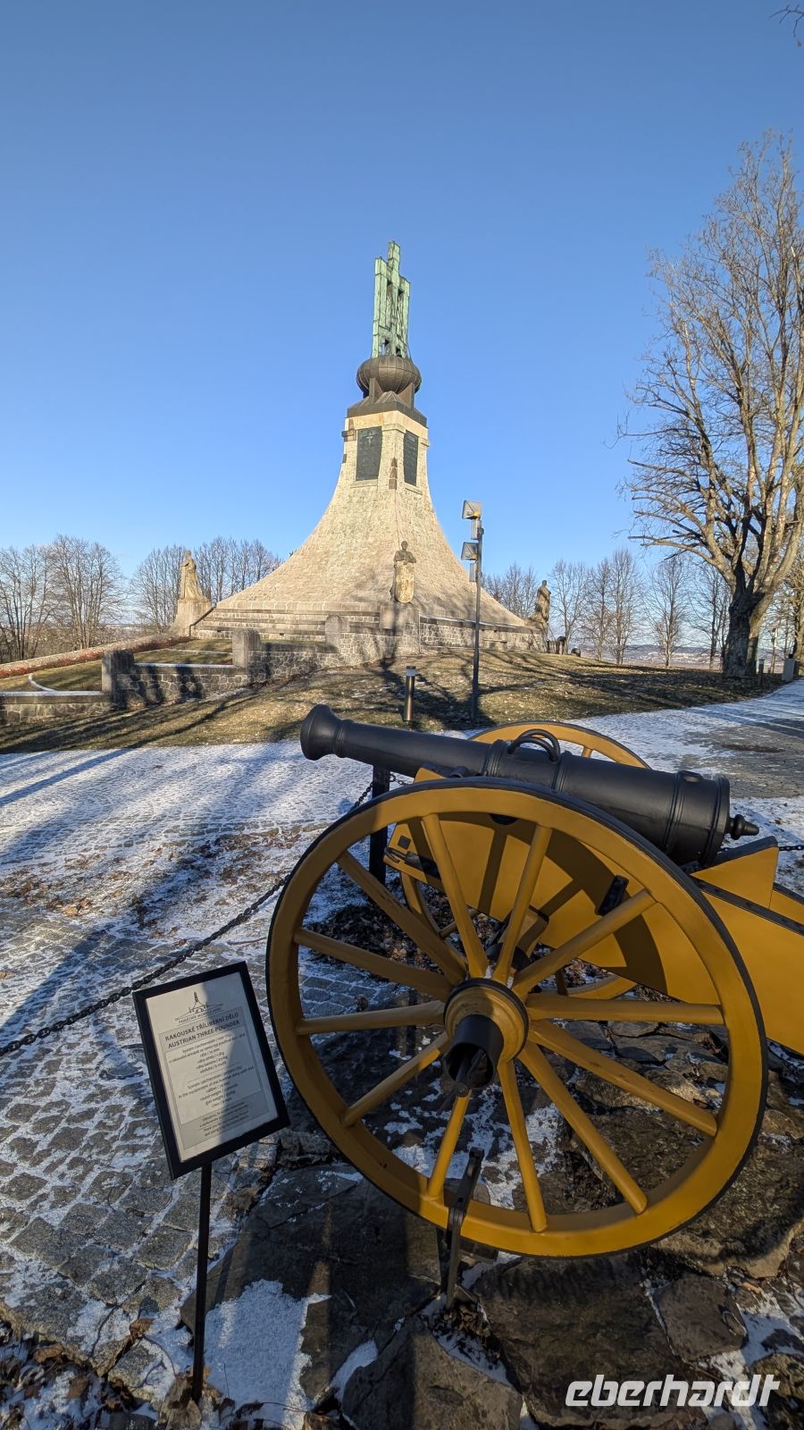 Das gleiche bevorzugten wir auch am Friedensdenkmal Mohyla miru. Obwohl wir strahlend blauen Himmel hatten, ohne Wolken, aber der Wind blies durch die Kleider.