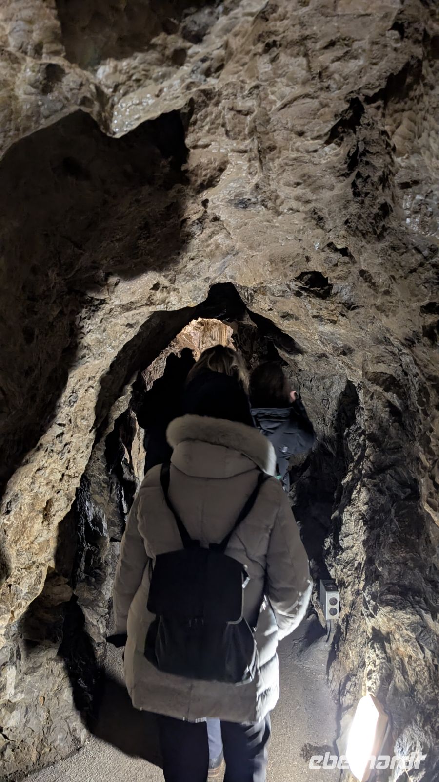 Und wie in jedem spannenden Film, muss die Spannung zunächst aufgebaut werden, so begannen auch wir zuerst mit den kleinen Stalagmiten und Stalagtiten, die immer spektakulärer und monströser wurden, je weiter wir in die Höhle vordrangen. Ein 4 Meter hoher Stalagnat gilt als Wächter der Höhle, Formen die an Eulen, Felsenburg, umgedrehte Regenschirme und Wasserfall erinnern, spiegelten sich im sogenannten Spiegelsee. Weiter hinten ist der einmalige Engel mit ausschweifender Sinterkruste und dem Vorhang zu sehen.