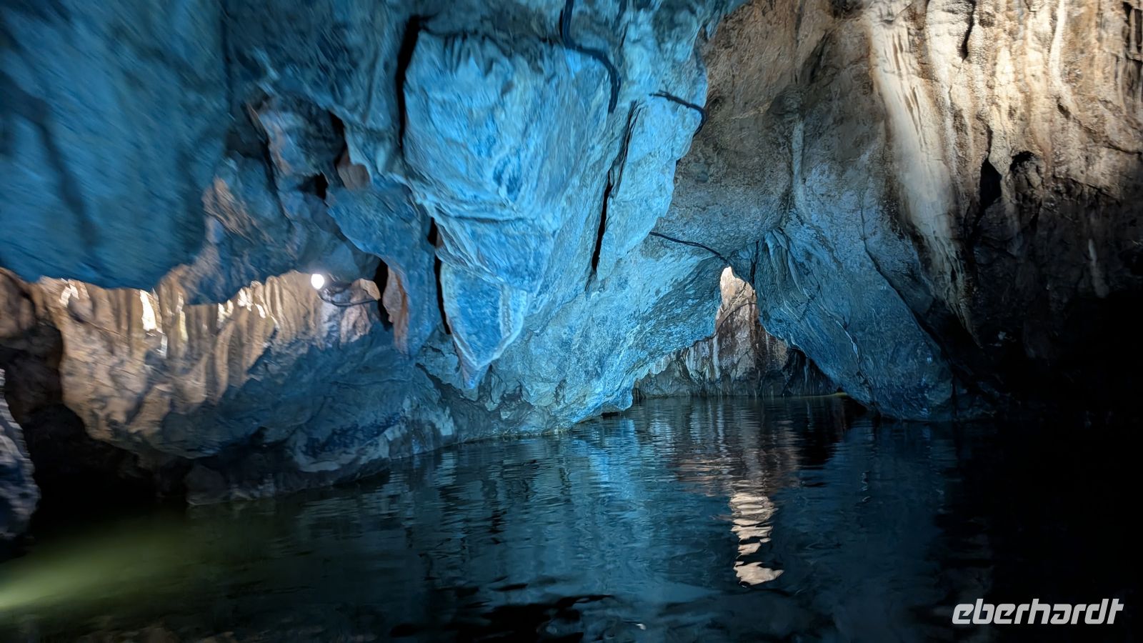 Wer Höhlen mag und sich etwas dafür interessiert, wird wohl kaum etwas Spektakuläreres auf der Welt finden, als diese unbeschreiblichen Minuten während der Bootsfahrt. Faszinierende Beleuchtung unter und über Wasser, niedrige Passagen unter Tropfsteinen und Felsdecken hindurch, wenn man nicht aufpasst, bumst man mit dem Schädel gegen die Decken oder Felsüberhänge. Und genau das ist der Grund, dass man hier nicht fotografieren soll. Man erschrickt, und das Handy liegt im Wasser. Vorbei mit den Urlaubserinnerungen, nur noch das, was ich Kopf als Erinnerung geblieben ist.