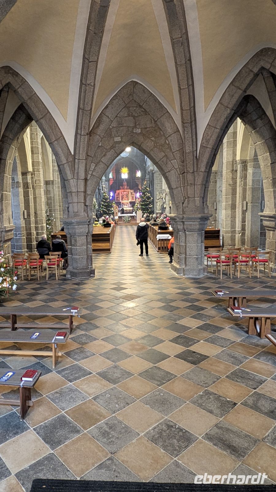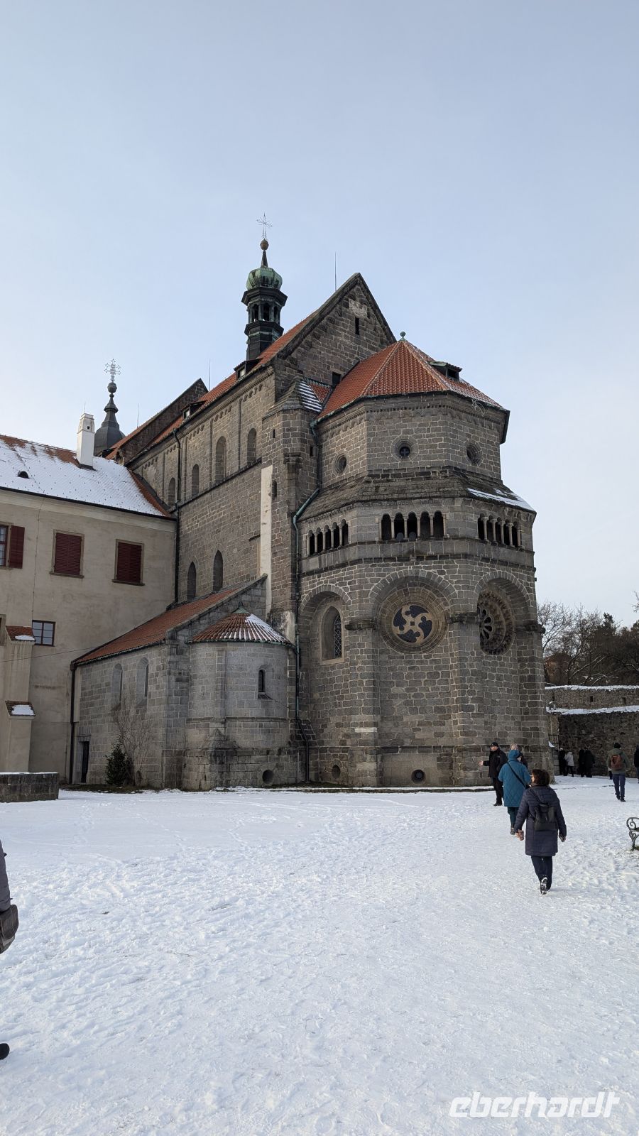 Die an den Dom von Worms erinnernde St. Prokop Basilika war für Besucher heute leider geschlossen, wegen dem Neujahrskonzert. Der Eintritt war nur mit gültiger Eintrittskarte möglich, dennoch konnten einige aus der Gruppe einen schnellen Blick in die Kirche werfen, da das Konzert noch nicht begonnen hatte.