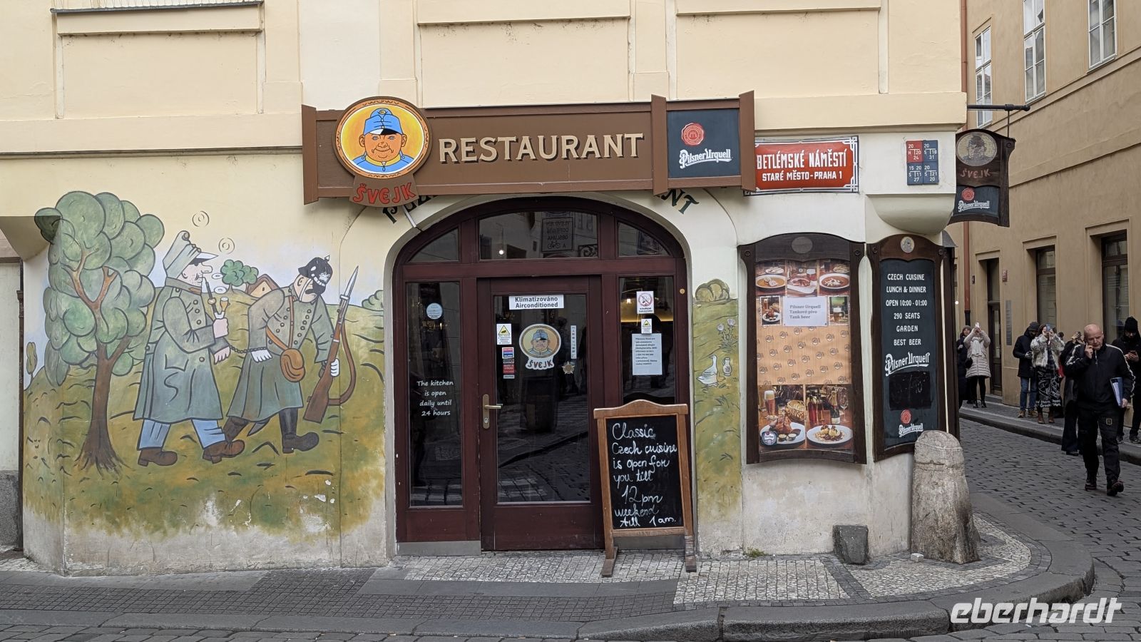 An der astronomischen Uhr konnte man sich kundig machen, wieviel Zeit uns noch in Prag blieb. Lohnt sich ein Besuch in einem der berühmten Schwejk-Wirtshäuser, wo der Gast eine Reise in die Zeit Kaiser Franz Josefs macht und man den braven Soldaten Schwejk in der Ecke sitzend zu sehen glaubt.