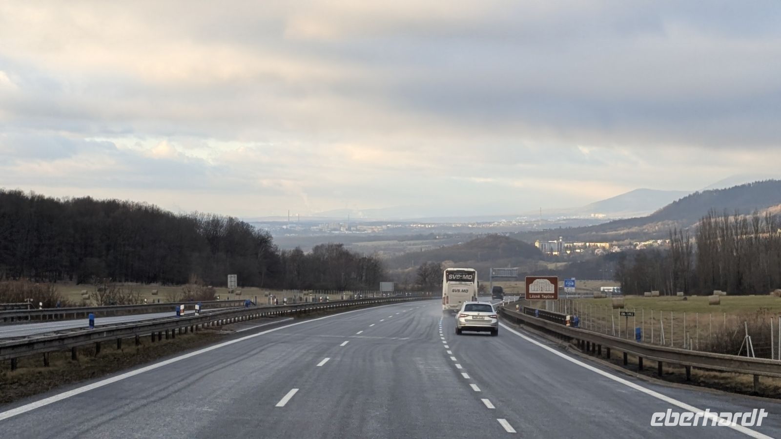 Für die Heimfahrt zurück nach Brünn entschieden wir uns nicht über die Autobahn zu fahren, sondern auf der alten Straße Nummer 23 durch die wunderschöne, im Schnee glänzende Landschaft Tschechiens.