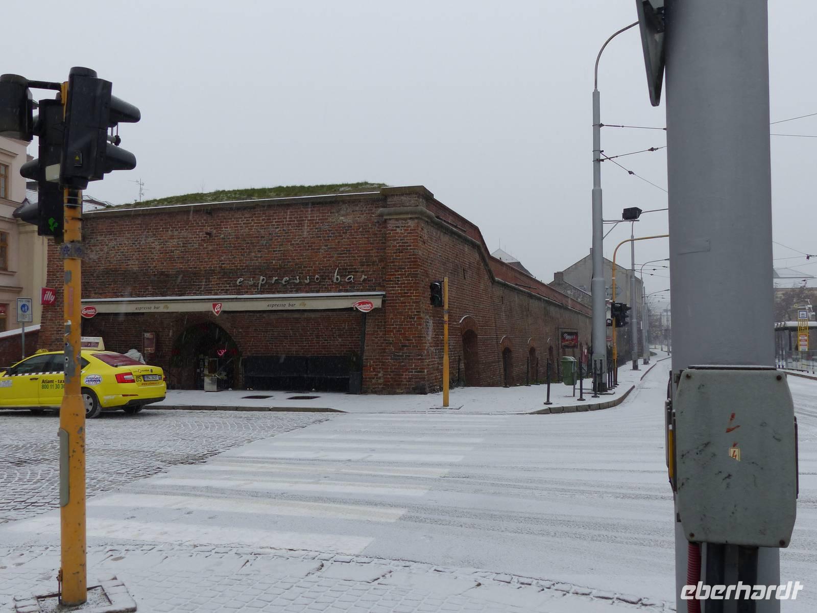 Hier am Wenzelsplatz trafen wir uns dann mit der Dolmetscherin für die bevorstehende Brauereibesichtigung. Frau Kušova erzählte uns noch einiges Wissenswerte zu ihrer Heimatstadt und führte uns noch vor die Fassade des im 17. Jh. erbauten erzbischöflichen Palais, in dem 1848 nach Unruhen in Wien der damals erst 18jährige Franz Joseph I. zum Österreichich-Ungarischen Kaiser gekrönt wurde, nachdem sein Vater, Ferdinand V. zu seinen Gunsten abgedankt hatte. Gegenüber liegt das imposante ehemalige Armee-Arsenal, das unter Kaiserin Maria Theresia als Zeughaus erbaut wurde und heute die Bibliothek der renommierten Universtät von Olomouc beherbergt.