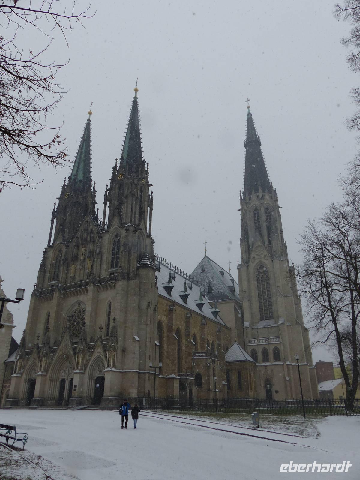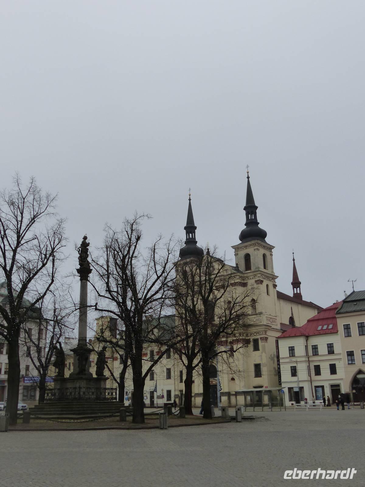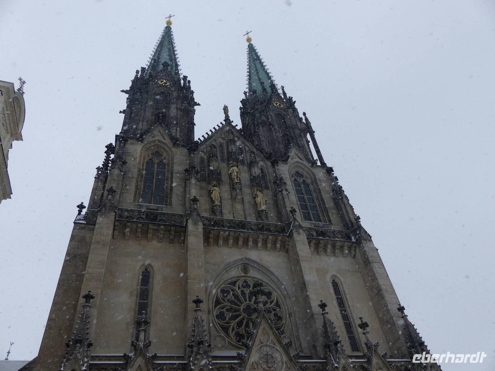 Den Marktplatz beherrscht aber zweifellos sein schönstes Bauwerk: die Dreifaltigkeitssäule des bekanntesten Olmützer Architekten und Steinmetzen Wenzel Render. Dieses architektonische Juwel, das seit 2001 zum UNESCO-Weltkulturerbe gehört, ist mit einer (derzeit nicht zugänglichen) Kapelle im Sockel und seinem Figurenschmuck einzigartig und zudem mit 34 m Höhe die größte in Europa erhaltene Pestsäule. 1716 wurde sie vom Bildhauer Render begonnen, angelegt als Bildergalerie mit Sandsteinplastiken zum Dank für das Ende der letzten großen Pestepidemie in Böhmen. Der Künstler sah sie nicht nur als sein Lebenswerk, sondern diente dem Bau noch über seinen Tod hinaus, denn da er kinderlos starb, sorgte er mit seinem Privatvermögen für ihre Vollendung. Vorbei an der Moritzkirche, die einen wehrhaften Eindruck vermittelt und eine der größten Barockorgeln Europas besitzt, gelangten wir zum Platz der Republik mit der barocken „Maria-Schnee-Kirche", einst von den Jesuiten errichtet und nach einem Schneewunder benannt, dass sich in Rom bei der Einweihung einer Marienkirche ereignet hatte. Auf dem Wenzelsplatz schließlich endete der Rundgang zunächst. Hier steht die größte Kirche der Stadt, dem heiligen Wenzel geweiht und ursprünglich im 12. Jh. errichtet. Heute ist das Erscheinungsbild der Kathedrale neogotisch. Aus der Erbauungszeit der Kirche stammt auch der Bischofspalast, der sich heute aber in späterer Bauform präsentiert. Allerdings hatte man bei Umbauten im 19. Jh. bedeutende romanische Reste gefunden, die überwiegend im Inneren zu sehen sind - aber ein Rest ist auch von außen, als Verbindungsteil zur Kathedrale, noch - oder besser: wieder - zu bewundern.