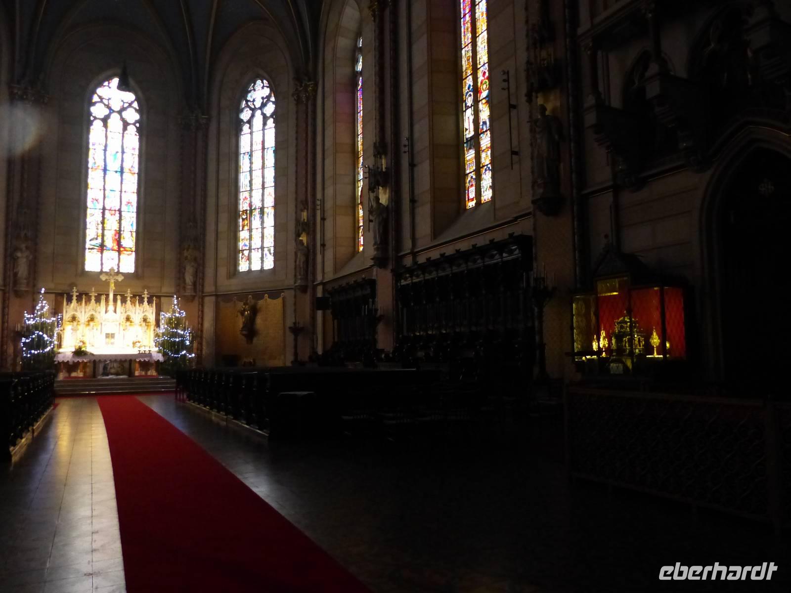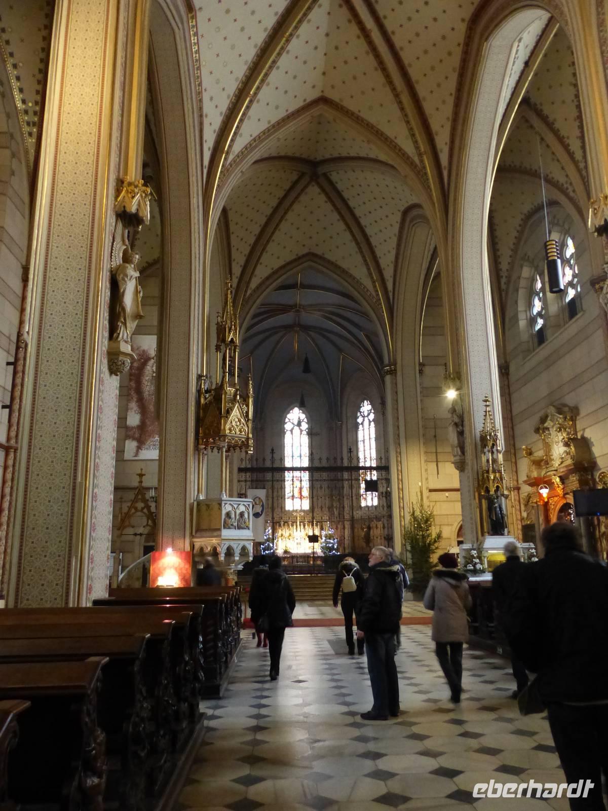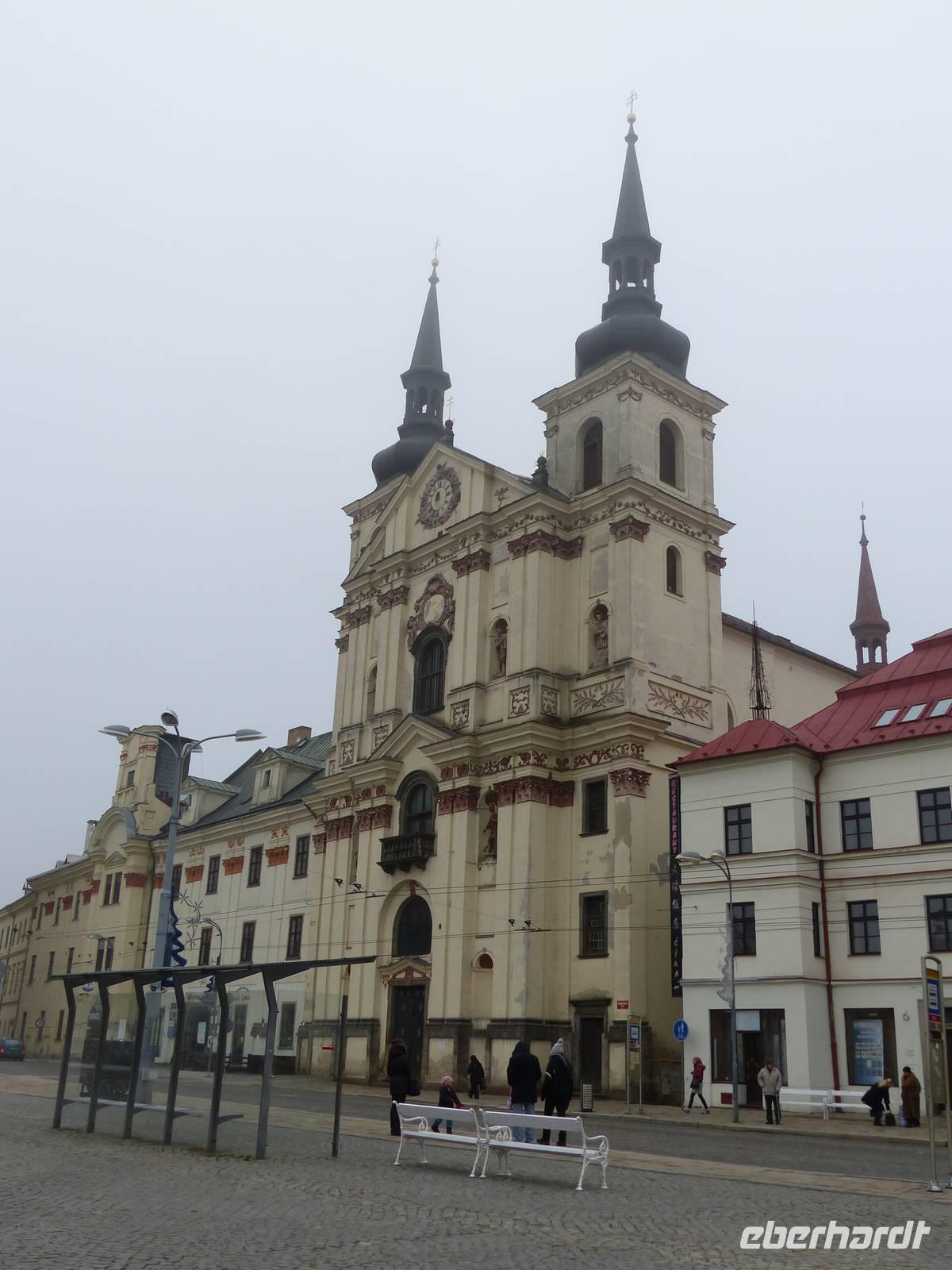 Den Marktplatz beherrscht aber zweifellos sein schönstes Bauwerk: die Dreifaltigkeitssäule des bekanntesten Olmützer Architekten und Steinmetzen Wenzel Render. Dieses architektonische Juwel, das seit 2001 zum UNESCO-Weltkulturerbe gehört, ist mit einer (derzeit nicht zugänglichen) Kapelle im Sockel und seinem Figurenschmuck einzigartig und zudem mit 34 m Höhe die größte in Europa erhaltene Pestsäule. 1716 wurde sie vom Bildhauer Render begonnen, angelegt als Bildergalerie mit Sandsteinplastiken zum Dank für das Ende der letzten großen Pestepidemie in Böhmen. Der Künstler sah sie nicht nur als sein Lebenswerk, sondern diente dem Bau noch über seinen Tod hinaus, denn da er kinderlos starb, sorgte er mit seinem Privatvermögen für ihre Vollendung. Vorbei an der Moritzkirche, die einen wehrhaften Eindruck vermittelt und eine der größten Barockorgeln Europas besitzt, gelangten wir zum Platz der Republik mit der barocken „Maria-Schnee-Kirche", einst von den Jesuiten errichtet und nach einem Schneewunder benannt, dass sich in Rom bei der Einweihung einer Marienkirche ereignet hatte. Auf dem Wenzelsplatz schließlich endete der Rundgang zunächst. Hier steht die größte Kirche der Stadt, dem heiligen Wenzel geweiht und ursprünglich im 12. Jh. errichtet. Heute ist das Erscheinungsbild der Kathedrale neogotisch. Aus der Erbauungszeit der Kirche stammt auch der Bischofspalast, der sich heute aber in späterer Bauform präsentiert. Allerdings hatte man bei Umbauten im 19. Jh. bedeutende romanische Reste gefunden, die überwiegend im Inneren zu sehen sind - aber ein Rest ist auch von außen, als Verbindungsteil zur Kathedrale, noch - oder besser: wieder - zu bewundern.