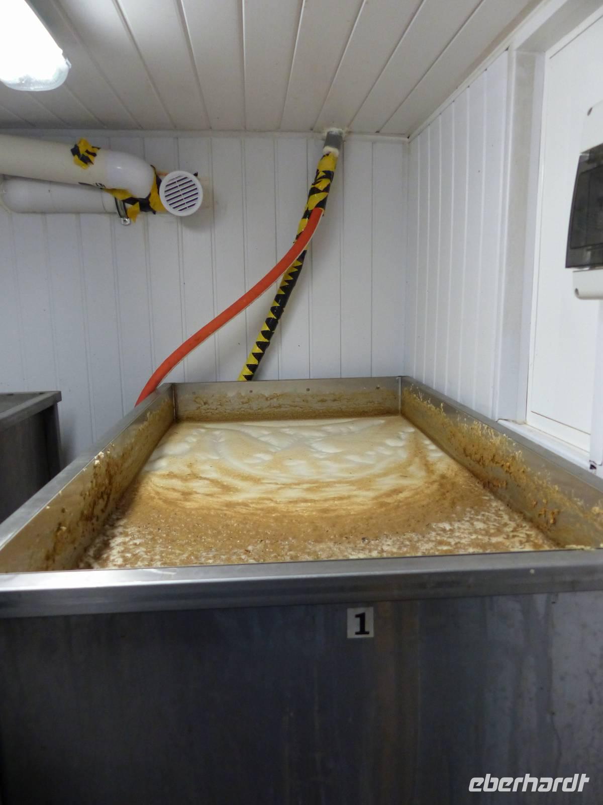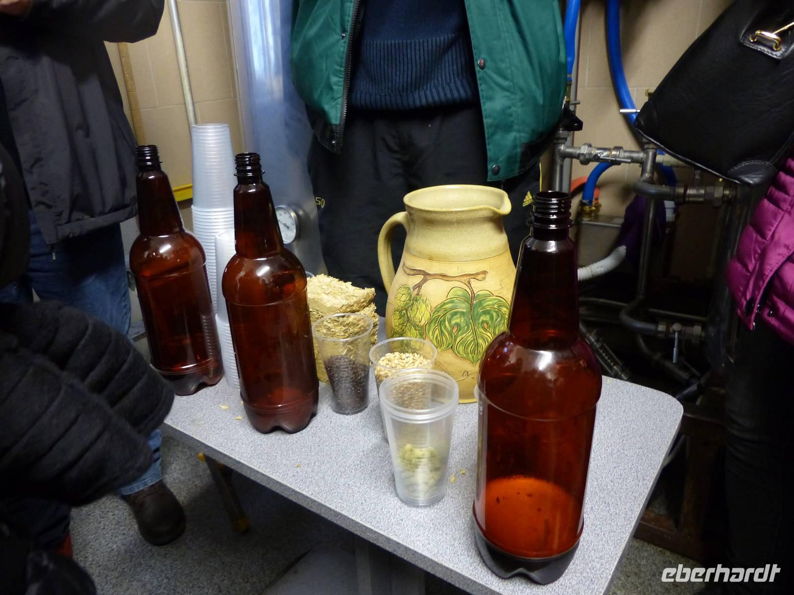 Als alle gesättigt waren, erklärte uns der Braumeister im winzigen Braukesselraum, unterstützt durch Dolmetscherin Frau Kušova einiges zur Geschichte des Bieres allgemein und in Böhmen und zur Art und Weise der böhmischen Bierherstellung. Als Privatbrauerei mit nur begrenztem Kundenkreis und einer Jahresproduktion von nur 650 Hektolitern ist die Kosir-Brauerei nicht an das Reinheitsgebot oder an EU-Vorschriften gebunden und kann daher das Bier nach dem Geschmack der unmittelbaren Kundschaft brauen und dabei auch ein paar Experimente wagen. So bekamen wir bei der anschließenden Probe nicht nur einen Eindruck vom „normalen" Bier, sondern konnten auch einen Schluck gewürztes Weihnachtsbier kosten und vom speziell zu Halloween gebrauten Kürbisbier probieren. Nach einem kurzen Blick in Gärraum und Lagerkeller brachte uns der Bus zum Hotel zurück.