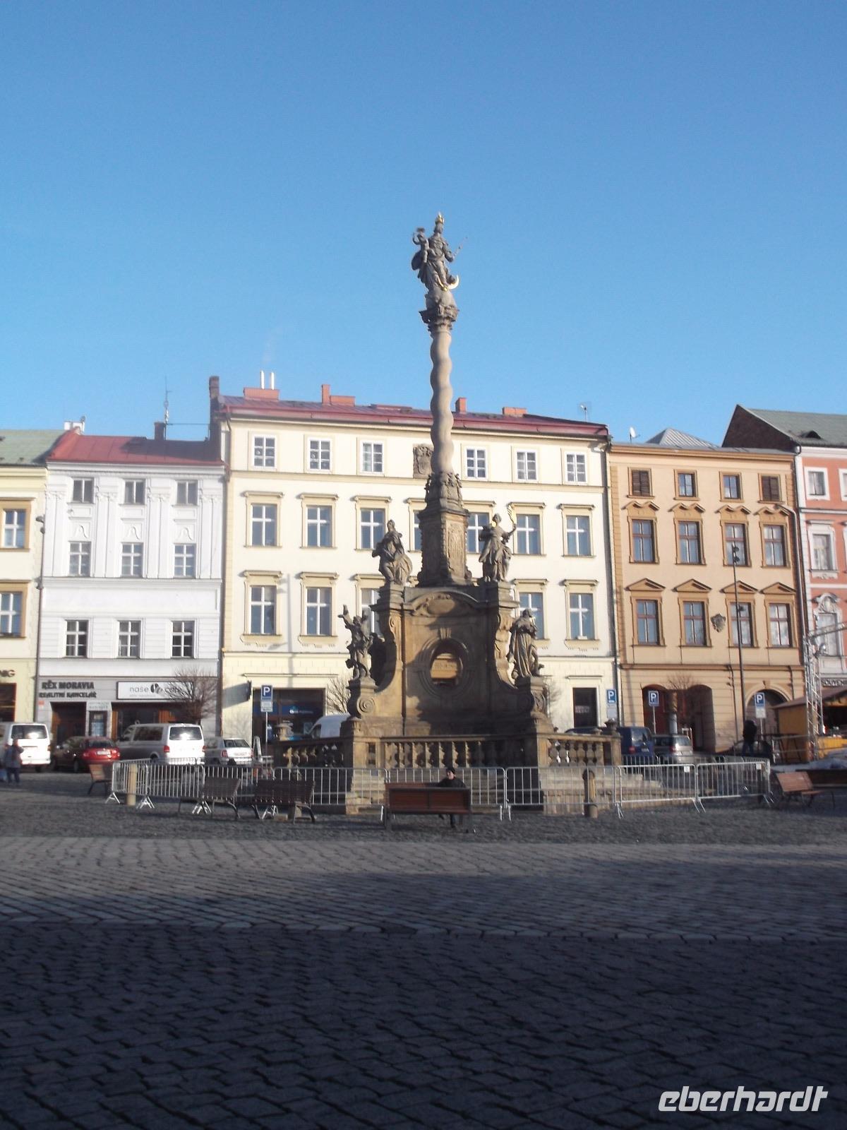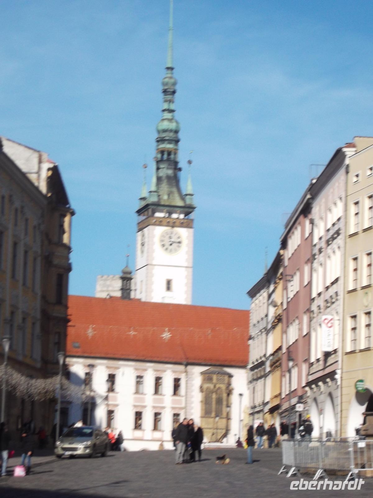 Die Umrundung der Sehenswürdigkeiten des Olmützer Stadtkerns begannen wir bei den wenigen erhaltenen Resten der von den Österreichern einst komplett um die Stadtfestung Olmütz gezogenen gezogenen Umwallung. An den noch sichtbaren Kasematten mit Kugelfang-Mauern entlang und dem Rest des einstigen Theresientors gingen wir ins Zentrum und erreichten den äußeren oder Untermarkt, hier „Niederring" genannt, mit einer kleineren Marien- oder Pestsäule, einigen Häusern aus der Renaissancezeit sowie zweien der insgesamt sieben und zumeist mythologischen Figuren gewidmeten Olmützer Brunnen. Nur wenige Schritte sind es vom äußeren zum inneren oder Hauptmarktes. Er liegt exakt im Zentrum der historischen Altstadt von Olomouc. Blickfang des Obermarktes oder „Oberrings" bildet sicherlich die phantastisch verzierte Pestsäule, aber dominierendes Gebäude ist unbedingt das Rathaus. Historisch gesehen war es einst ein Kauf- und Gewerbehaus, von den reichsten Zünften der Stadt betrieben. Der Bau, den ein 75 m hoher Turm überragt, stammt aus der Gotik, dem 15. Jh. mit Erweiterungen aus späteren Zeiten und wirkt daher heute mehr wie aus der Renaissance. Etwas Besonderes ist seine astronomische Uhr, die eigentlich schon aus der Erbauungszeit stammt, aber nach ihrer Zerstörung im zweiten Weltkrieg in den 50er Jahren des 20. Jh. im Stil des „sozialistischen Realismus" neu aufgebaut wurde. Inzwischen bekanntestes Olmützer Bauwerk aber ist zweifellos auch sein schönstes: die Dreifaltigkeitssäule des Architekten und Steinmetzen Wenzel Render. Seit 2001 gehört dieses architektonische Juwel zum UNESCO-Weltkulturerbe gehört. In Europa ist es mit seiner (leider zumeist nicht zugänglichen) Kapelle im Sockel und dem überreichen Figurenschmuck einzigartig. Mit 34 m Höhe ist es gleichzeitig die größte in Europa erhaltene Pestsäule. Gleich nach Überwindung der Pestepidemie 1716 wurde sie als Dankesbau vom Bildhauer Render begonnen. Die Säule legte er an als Bildergalerie mit Sandsteinplastiken zum Dank für das Ende der letzten großen Pestepidemie in Böhmen an. Render sah die Säule als sein Lebenswerk und förderte den Bau noch über seinen Tod hinaus, denn er sorgte mit seinem Privatvermögen für ihre Vollendung. Hier an diesem Prunkstück barocker Baukunst legten wir etwas Freizeit ein, um uns in der Olmützer Innenstadt ein wenig umzusehen. Nach dem Wiedertreffen ging es vorbei an der Moritzkirche, die einst eine Wehrkirche war und eine der größten Barockorgeln Europas besitzt, und am Platz der Republik sahen wir die barocke „Maria-Schnee-Kirche", einst von den Jesuiten errichtet und nach einem Schneewunder benannt, dass sich in Rom bei der Einweihung einer Marienkirche ereignet haben sollte. Dann kamen wir zum Wenzelsplatz, wo der Stadtrundgang endete. Die Kathedrale der Stadt, dem heiligen Wenzel geweiht, wurde ursprünglich im 12. Jh. errichtet, ihr heutiges Erscheinungsbild ist aber neogotisch. Aus der Erbauungszeit der Kirche stammt der neben ihr stehende Bischofspalast. Obwohl auch dieser sich heute in späterer Bauform präsentiert, kann man doch die romanischen Reste sehen, die bei Umbauten im 19. Jh. gefunden und für sehr bedeutend gehalten wurden. Heute kann man das prächtige romanische Doppelfenster auch von außen, als Verbindungsteil zur Kathedrale, bewundern.