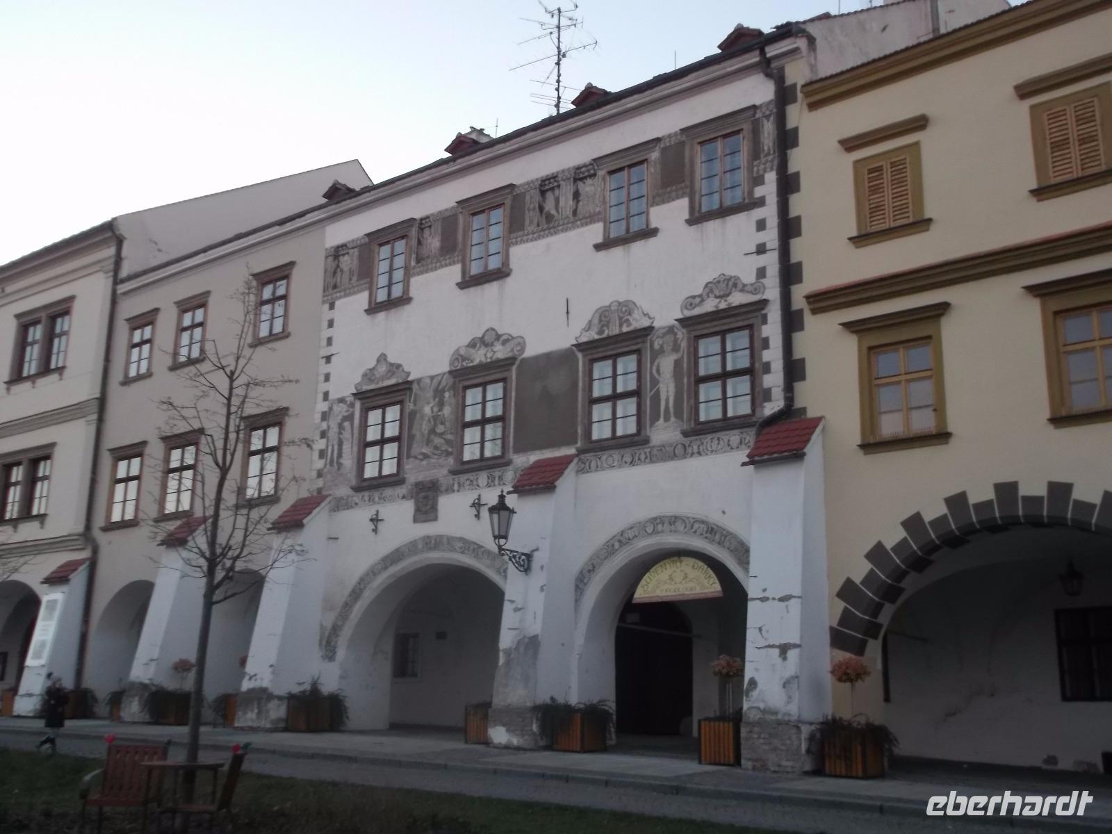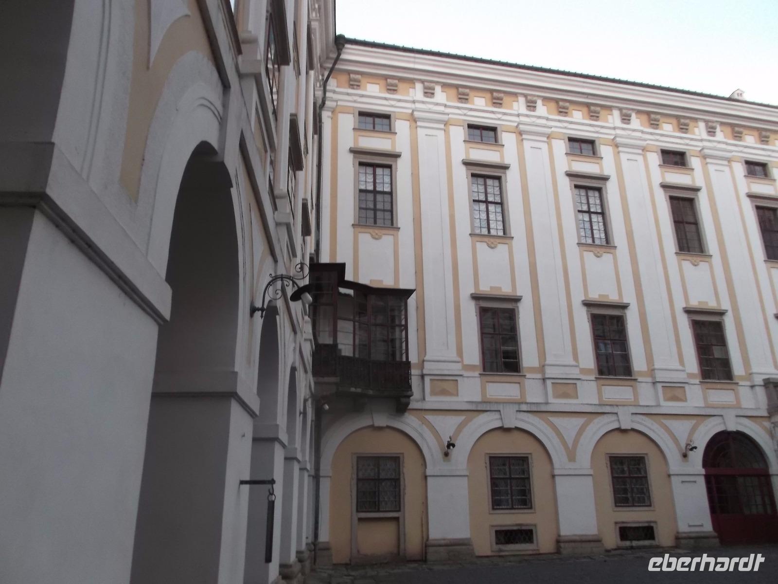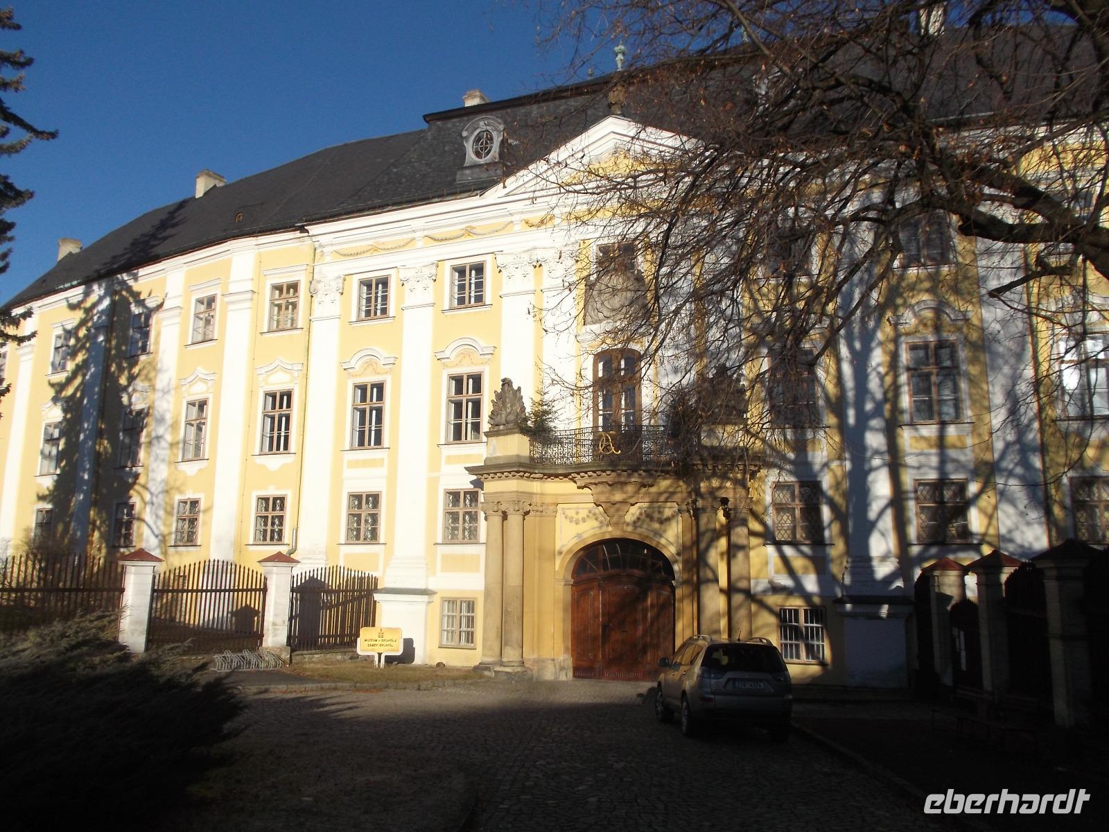 Heute würde unser Ausflug ins Altvatergebirge führen, einem Ausläufer der Ostsudeten. Während dieses Mittelgebirge auf Tschechisch „Jeneseník" heißt, wird es in Österreich „Hohes Gesenk" genannt, ist aber am bekanntesten ist es aber wohl unter dem Namen seines höchsten Berges, dem fast 1500 m hohen Praded, auf Deutsch „Altvater". Dieses Gebirge, an vielen Stellen über tausend Meter hoch, war unser heutiges Ziel und wir erreichten hier zunächst das an seiner Westseite liegende Städtchen Bruntál. „Freudenthal" heißt es auf Deutsch und zählt zu den ältesten historischen Königsstädten Böhmens. Einst war es unmittelbar dem böhmischen König unterstellt und spielte schon von daher eine besondere Rolle auch in der Geschichte des Heiligen Römischen Reiches Deutscher Nation, zu dem Böhmen als wichtiger Teil gehörte. Seine besondere Sehenswürdigkeit ist ein Schloss, das wie viele Bauwerke des Landstriches hervorragend die Wirren der Geschichte widerspiegelt: einstmals gotische Wohnburg, die man in der Renaissance umbaute, stellten sich seine Besitzer während des 30jährigen Krieges auf die falsche Seite. So wurde die bedeutende Wehranlage ihren Besitzern weggenommen. Der Kaiser übergab sie dem Deutschen Ritterorden und sie diente fortan als Ordensmeistersitz, in dem übrigens weitaus überwiegend Angehörige des Hauses Habsburg residierten. Von den Ordensherren wurde die einstige Burg im 18. Jh. barock und repräsentativ ausgebaut. Bis heute erinnern ihre Arbeits-, Audienz- und Versammlungsräume an den Deutschen Orden und die Nachfolger der während der Kreuzzüge gegründeten Rittervereinigung.