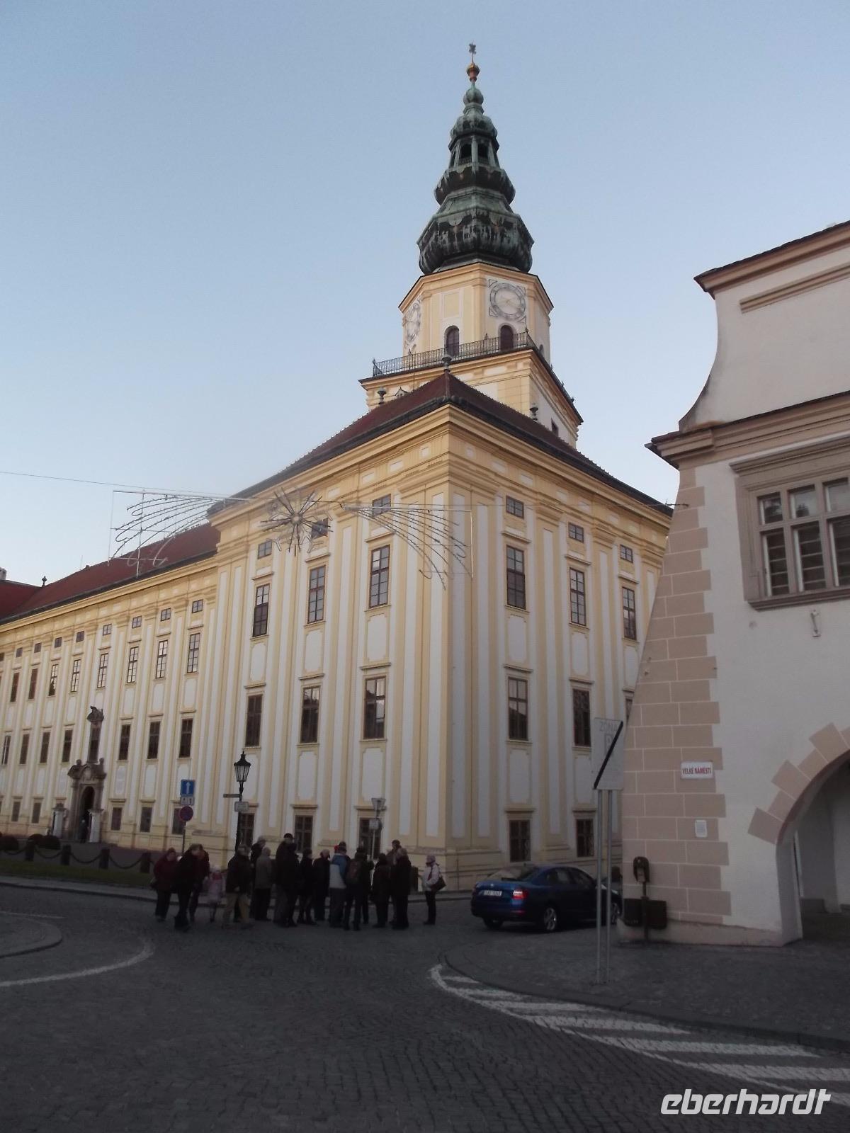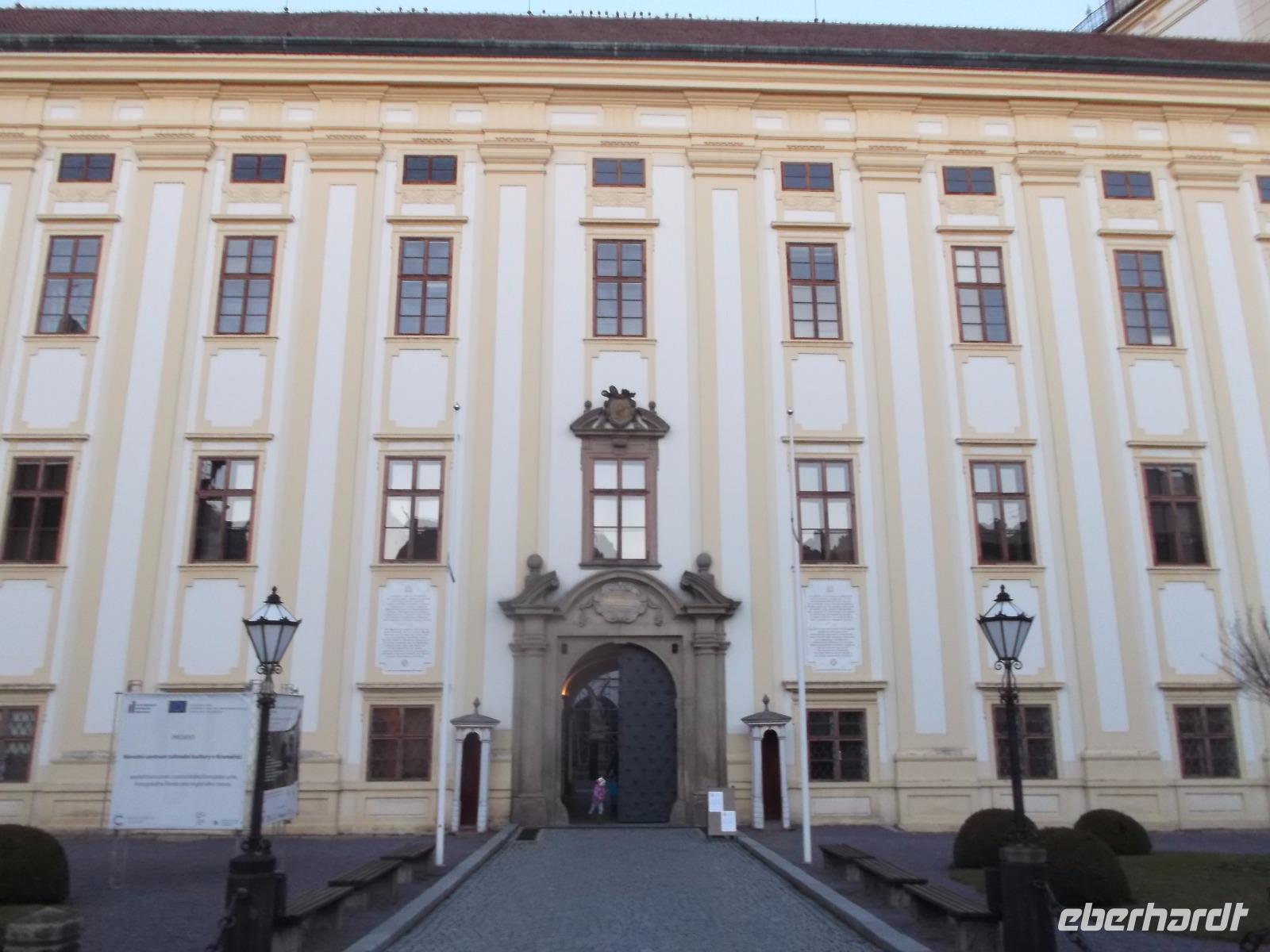 Ganz in der Nähe wartete unser Bus und brachte uns nach einem Fotostopp am barocken Hradisko-Kloster, das ebenfalls wie der Heilige Berg ein Werk des talentierten italienisch-schweizerischen Bildhauers und späteren kaiserlichen Wiener Hofbaumeisters Giovanni Pietro Tencalla ist und - leider nicht zugänglich - heute als Militärkrankenhaus fungiert, in das hübsche Städtchen Kromeriž.