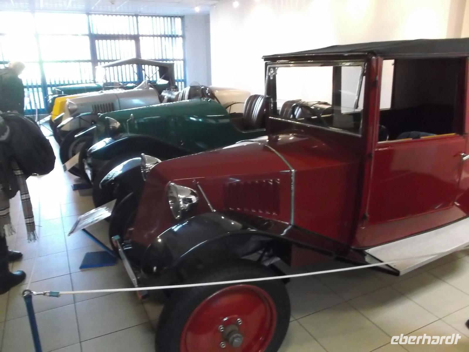 Die Westbeskiden - oder auch die Mährisch-Schlesischen Beskiden - wie die letzten Ausläufer der Westkarpaten in einem langsam veraltenden Ausdruck genannt werden, standen heute auf unserem Tagesprogramm. Etwas mehr als eine gute Busstunde westlich von Olomouc liegt am Rand der Beskiden im Flusstal der Lubina das Städtchen Koprivnice, das als einst österreichisch-ungarisches Nesselsdorf erst 1910 Stadtrechte erhielt. Bekannt wurde der Ort durch die hier 1850 gegründeten Waggon- und Fahrzeugwerke, die - wenn auch teilweise in anderen Produktionsstätten - zehntausende Wagen für Straßen- und Eisenbahn herstellten. Noch bekannter wurde das nunmehr tschechische Unternehmen als Autohersteller Tatra - seit 1923 unter diesem Namen. Mit seiner Gründungsgeschichte aus dem Fahrzeugbau uns seinen früh gebauten Autonmobilen gehört der „Tatra" zu den ältesten Automarken der Welt. Man war sehr experimentierfreudig im Tatra-Werk und wir konnten zahlreiche Ergebnisse in der Ausstellung des Technik-Museums Koprivnice und einer kleinen Führung bewundern. Salonwagen, Rennwagen, vor allem aber Nutzfahrzeuge und Geländewagen, die einige bedeutende internationale Preise holten wie etwa Siege bei der Rallye Paris-Dakar gibt es hier in Hülle und Fülle zu sehen. Bis 1999 wurden auch PKW hergestellt und immer noch ist die einst hier am Rande der Beskiden gegründete Fabrik in der Herstellung von LKW aktiv.