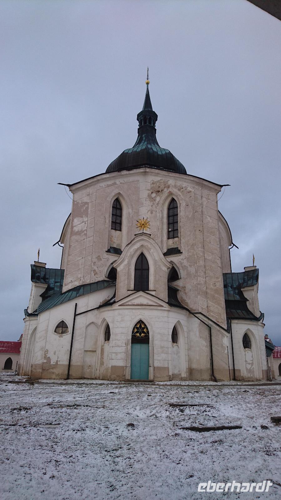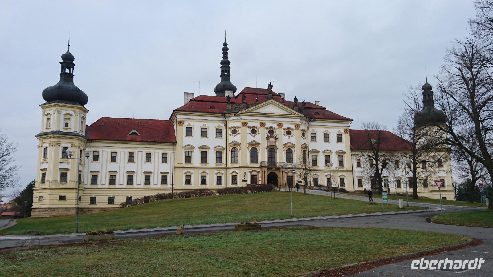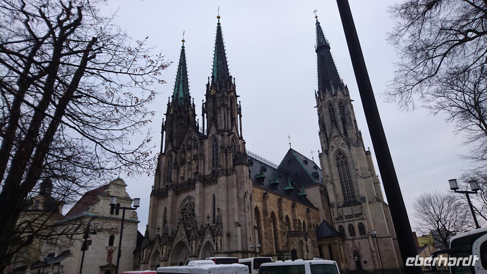 Der Weihnachtsstress war vorbei, die Straßen blieben frei und so erreichten wir bequem über die seit einigen Monaten vollständig fertig gestellte Autobahn A17 die Tschechische Grenze und fuhren mit kleinen Pausen weiter nach Prag. Um die mögliche Staugefahr auf der Umfahrungsstrecke der tschechischen Hauptstadt zu umgehen und etwas von der kleinsten Hauptstadt Europas zu sehen, wählten Lutz und Stefan die direkte Route durch die Hauptstadt, vorbei am Wenzelsplatz und mit guter Sicht auf den Hradschin bei der Überquerung der Moldau. Einige Kilometer vor Brno verließen wir die Autobahn in nordöstlicher Richtung und erreichten um die Mittagszeit Zd'ar nad Sazavou wo wir am Bus einen kleinen Imbiss einnahmen, uns dann direkt neben dem Parkplatz den alten Pestfriedhof der Stadt durch das leider verschlossene aber durchschaubare Tor ansahen und kurz darauf hinauf zum Weltkulturerbe, also zur Wallfahrtskirche auf dem Zelena Hora stiegen. Diese ist durch ihre eckige Form, den darum herum angelegten Kreuzgewölbegang und ihre Lage oberhalb der Stadt sehenswert. Danach ging es wieder hinab in den Ort, wo wir noch einen kleinen Zwischenstopp am alten Schloss und Kloster einlegten. Später fuhren wir weiter gen Olomouc, welches wir am zeitigen Abend erreichten. Hier bezogen wir direkt am Blumen- und Stadtpark Flora unsere Hotelzimmer. Beim Einchecken trafen wir bereits auf unsere Gäste mit Eigenanreise. Auch deren fahrt verlief problemlos und wir begrüßten uns herzlich. Nach etwas Ruhe fuhr uns der Fahrstuhl hinauf ins Dachgeschoss des Hotels, wo wir bei abendlicher Sicht über die erleuchtete Stadt Olomouc zu einem Willkommensgetränk geladen waren, ehe wir im Restaurant des Hotels unser Abendessen bekamen und später den Tag an der Bar, bei einem Parkspaziergang oder einfach auf unseren Zimmern ausklingen ließen.