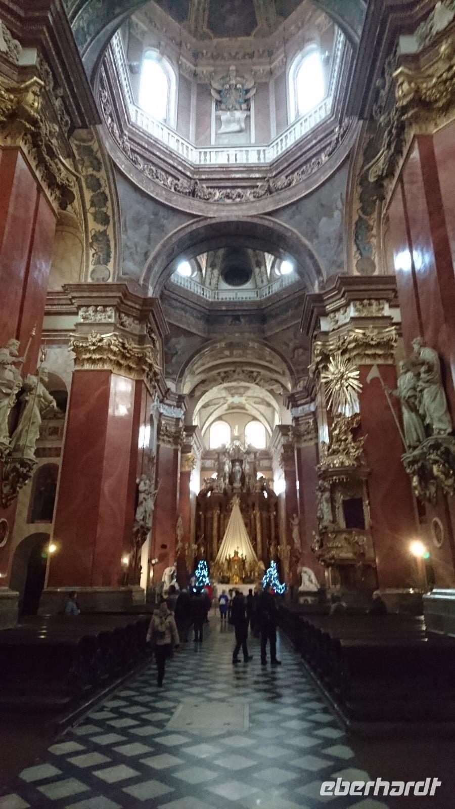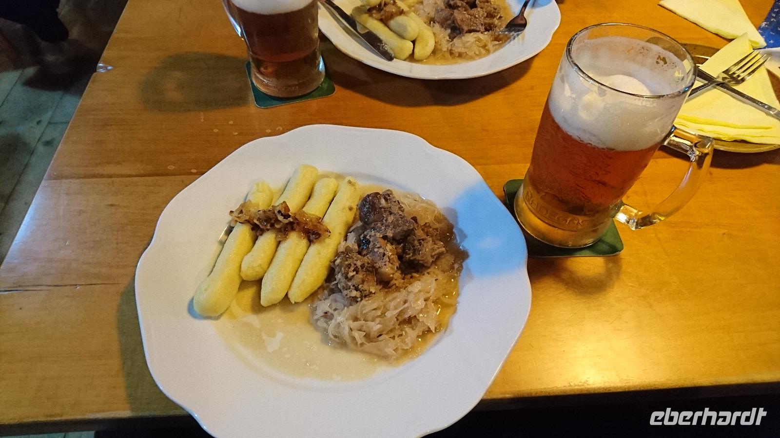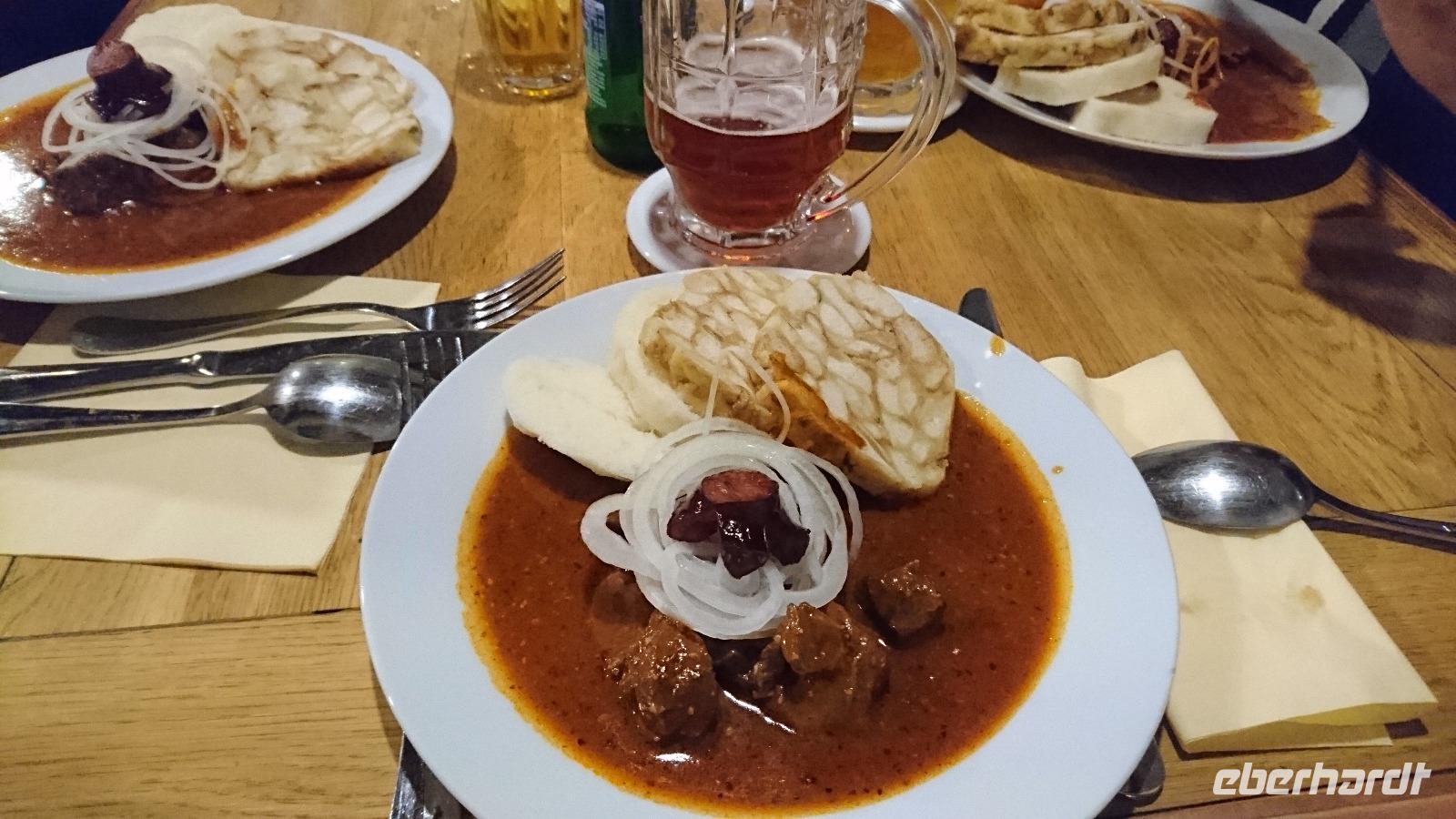 Nach dem Frühstück trafen wir gemeinsam mit Stefan unseren örtlichen Guide Petr an der Hotelrezeption. Er lud uns ein zu einem Stadtspaziergang durch Olomouc. Bald sahen wir die großen und auf die alte Funktion als Mährische Hauptstadt, aber auch als heutiger Sitz des hiesigen Erzbistums und der zweitältesten Universität Tschechiens hinweisenden Gebäude, erreichten den Marktplatz mit der Pestsäule und dem alten Rathaus, sahen hier die ehemalige Apostel- und heutige Arbeiteruhr in Funktion und genossen bei einem freien Rundgang um den Markt einen Kaffee oder einen Glühwein, ehe wir weiter zum Dom wanderten. Dieser hat im Stil Ähnlichkeit mit dem Stephansdom in Wien und wir sahen darin die üppige Ausstattung, auch den noch vorhandenen Weihnachtsschmuck, ehe wir mit einem Zwischenstopp an der größten handgeschnitzten Krippe Mährens wieder gemütlich zurück zum Hotel liefen, wo uns Lutz bereits erwartete. Mit dem Bus fuhren wir nun gemeinsam zuerst zum alten Kloster der Stadt, in dem heute das städtische Krankenhaus untergebracht ist. Mit wunderbarem Blick auf das rekonstruierte und sanierte Gebäude nahmen wir einen kleinen Mittagssnack am Bus zu uns. Dann ging es hinaus aus der Stadt, nach Kromeriz. Hier besuchten wir das ehemals bischöfliche Schloss, wurden verzaubert von der üppigen Ausstattung, den vielen Jagdtrophäen, alten Möbeln und Teppichen, vielen originalen Gemälden, wunderbaren Spiegeln und einer Waffensammlung. Danach war noch etwas Freizeit in Kromeriz, ehe wir frisch gebrautes und gezapftes Bier im Restaurant Pivovar der Brauerei Cerný Orel, eine Brauereibesichtigung und ein urig-typisches Brauerei-Abendessen genießen durften. Später ging es mit vielen tollen Tageserinnerungen, satt und zufrieden per Bus wieder zurück nach Olomouc, wo wir in Vorahnung des kommenden sicher langen Silvestertages bald zu Bett gingen.