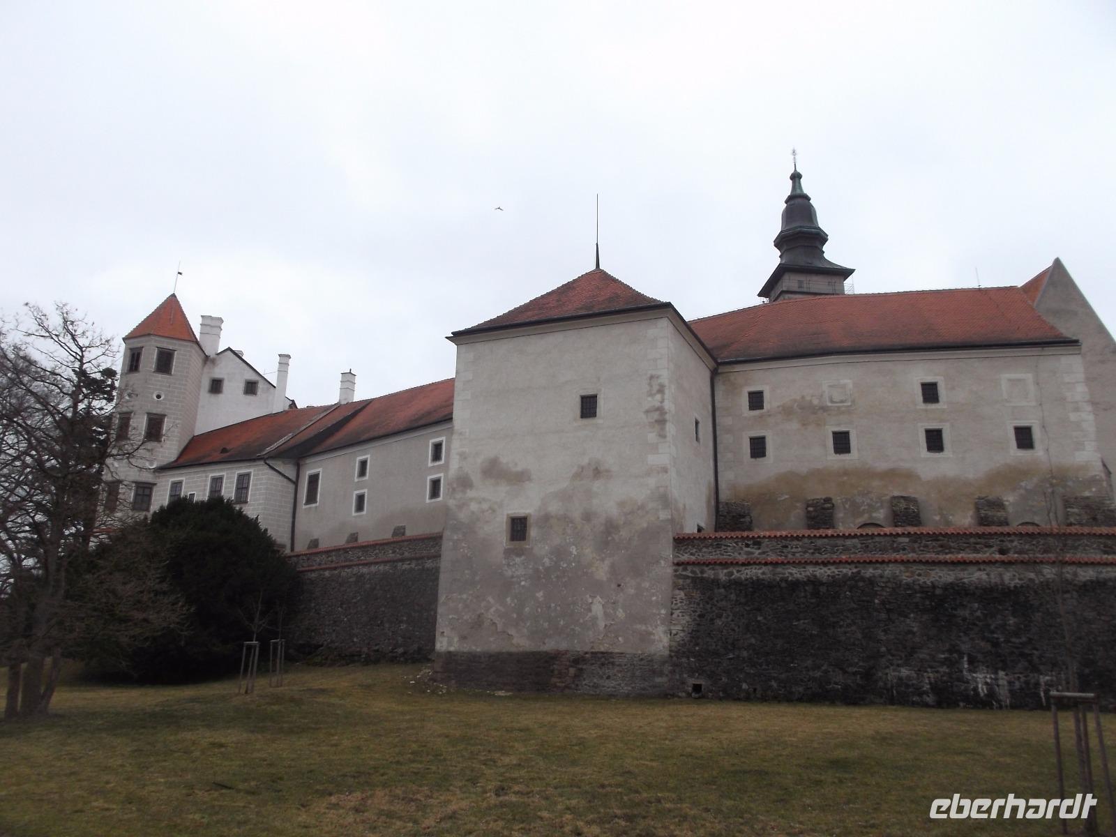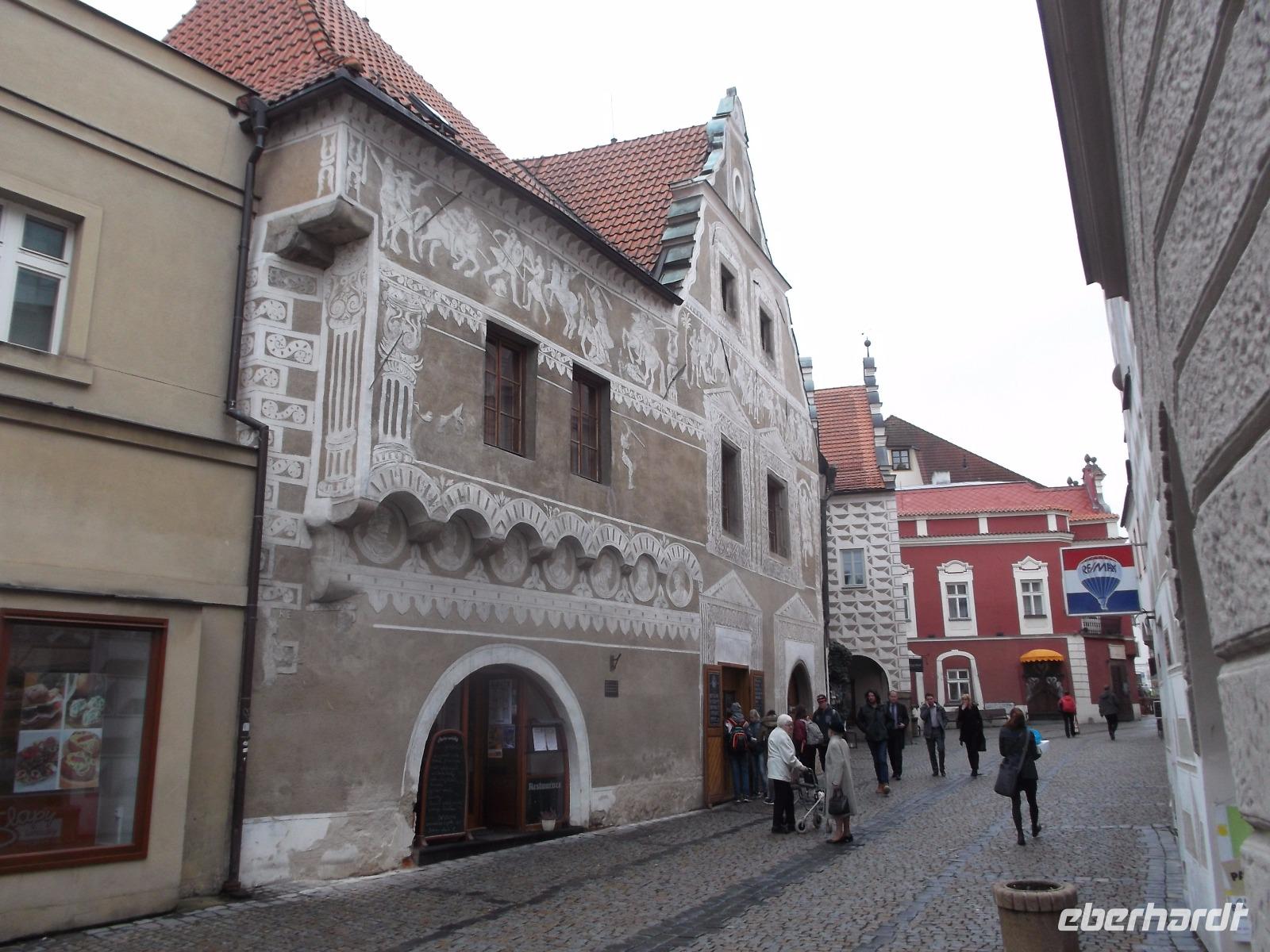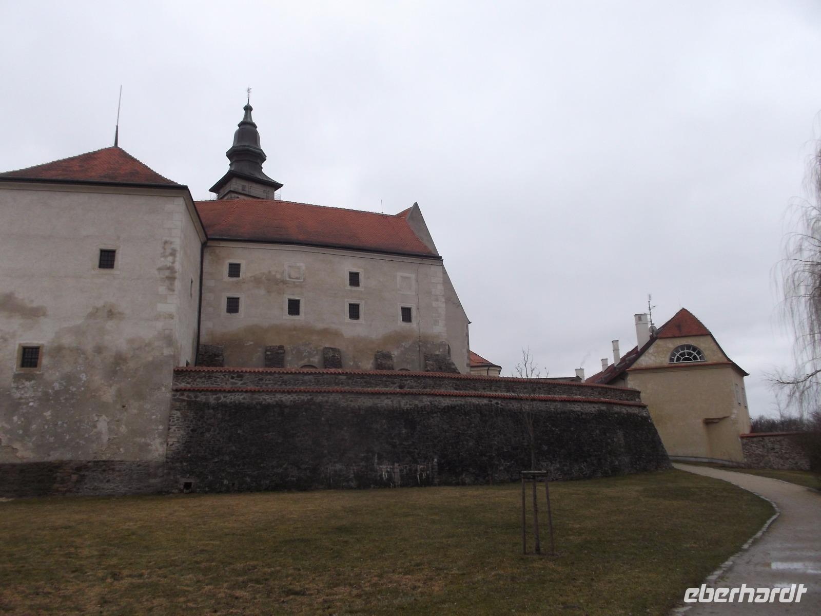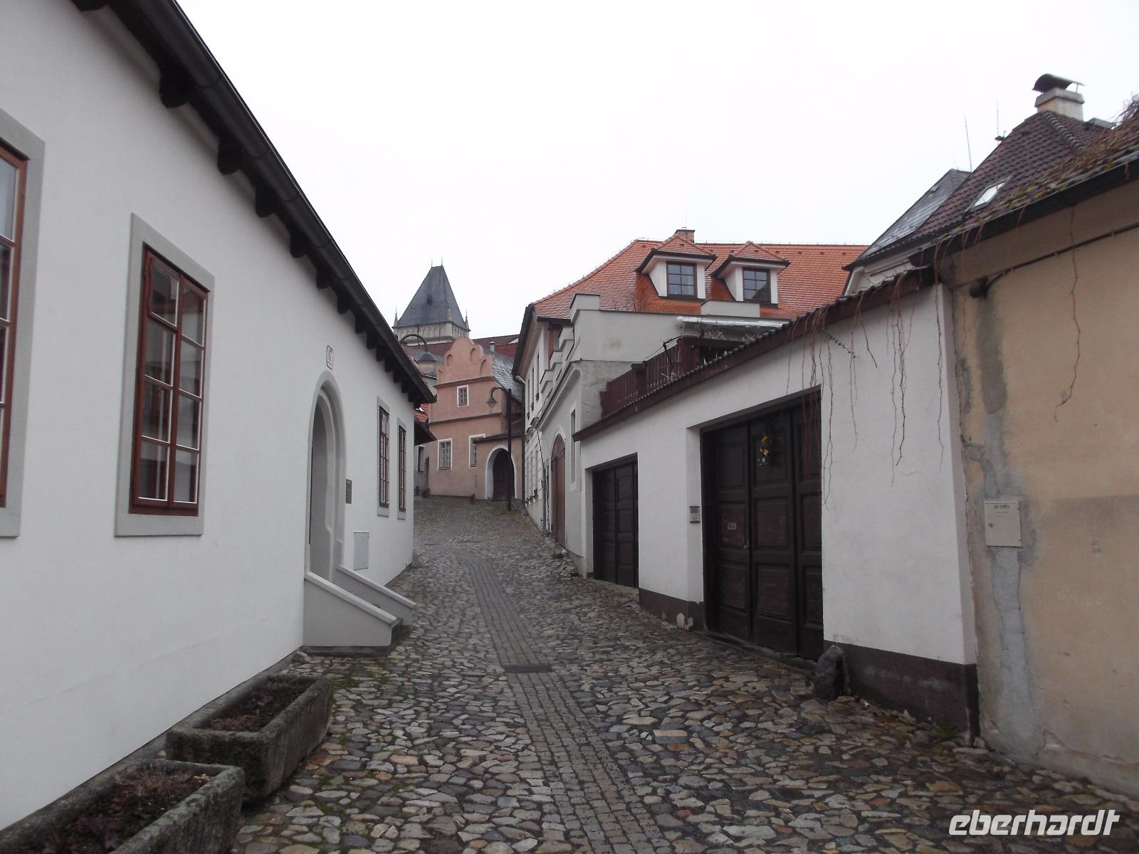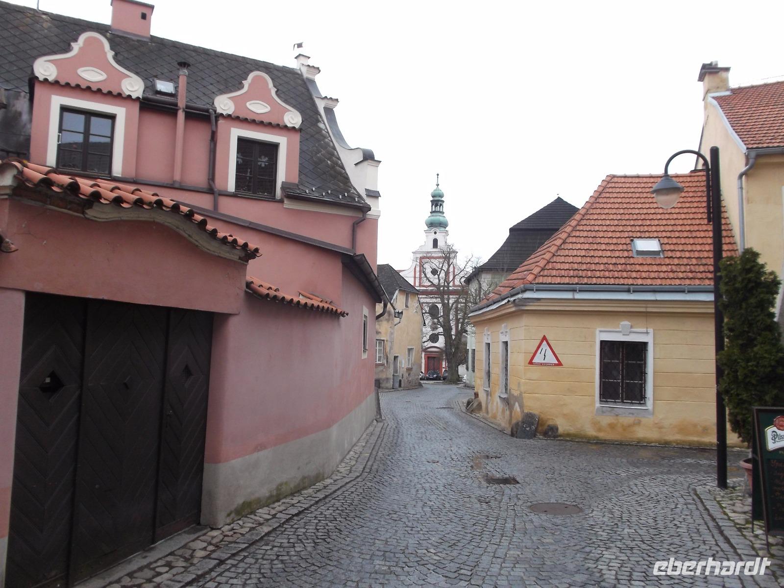Eine der ersten bemerkenswerten Städte auf der historischen Route nach Wien ist selbst legendär: Tábor. Die Gründer des heute vielleicht 35.000 Einwohner zählenden Städtchens benannten den auf einem Hügel von vornherein als Befestigung errichteten Ort nach dem heiligen Berg der Bibel. Er entstand um 1420, als die später „Hussitenkriege" genannten Erhebungen der in Böhmen entstandenen Anhängerschaft des 1415 auf dem Konzil in Konstanz verbrannten Prager Magisters und Predigers Jan Hus ihre ersten Höhepunkte erreichten. Seit dieser Zeit gilt der Ort als „Hochburg" jener christlichen Glaubensrichtung und ist dies in gewisser Weise bis heute geblieben. Bemerkenswerterweise errichtete man den Ort vom Grundriss her wie eine Wagenburg - und der Legende nach soll er tatsächlich aus diesem von den hussitischen Kriegern gern und erfolgreich genutztem Verteidigungsmittel entstanden sein. Bis heute sieht man es den verschachtelt und mit ganz engen Straßen errichteten Stadtvierteln mit ihren Durchschlüpfen und mitunter tunnelartigen Unterführungen an, dass sie im ausgehenden Mittelalter vor allen zu Verteidigungszwecken entstand. Der große Marktplatz in der Mitte, dominiert von der Kirche mit hohem Turm, einen weiten Blick über die Umgebung ermöglichte und einem bis heute wehrhaft wirkenden Rathaus liegt immer noch fast genau mittig und die Gässchen mit ihren uralten Häusern, die tatsächlich häufig noch aus dem 15. Jh. stammen, laden zum Bummeln ein. Wir besahen uns das Ortszentrum ein wenig und setzten dann unseren Weg von der Region Südböhmen, in der Tábor liegt, ins Gebiet von Mähren fort.