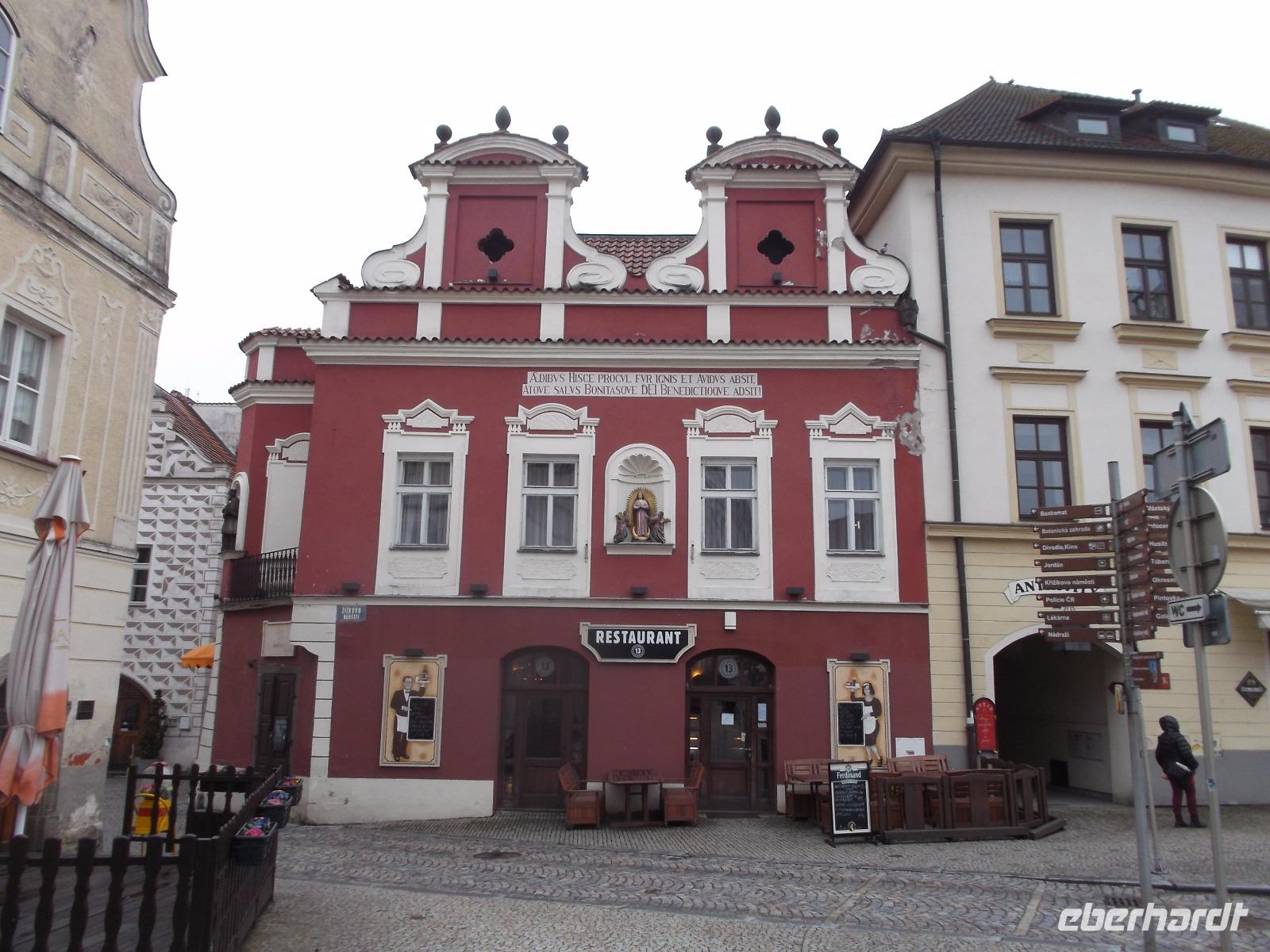 Die Stadt Trebic, von der Größe her etwa Tábor entsprechend, hat ein bedeutendes und sehr gut erhaltenes jüdisches Viertel, das als eines der am besten erhaltenen jüdischen Ghettos in Europa seit 2003 zum UNESCO-Weltkulturerbe zählt. Unser gemütliches Hotel befand sich in einigen am Rande dieses Viertels liegenden historischen Gebäuden, errichtet um 1700, und es waren von hier nur ein paar Schritte in die Altstadt auf der anderen Seite des Flusses, als wir loszogen, um in einer zünftigen Gaststätte ein böhmisches Abendessen einzunehmen.