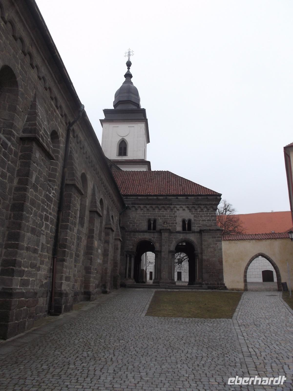 Einen weiteren Teil des Trebicer Weltkulturerbes findet sich auf dem neben Altstadt und Judenviertel gelegenen Klosterberg. Die St. Prokop-Basilika, überwiegend aus Granitgestein erbaut, ist nicht nur der letzte Rest des um 1100 von den Benediktinern gegründeten Himmelfahrtsklosters, sondern auch das älteste Bauwerk der Stadt. Das imposante Gebäude, das in seiner heute sichtbaren Form überwiegend auf den um die Mitte des 13. Jahrhunderts erfolgten Ausbau zur dreischiffigen Basilika zurückgeht, beherbergt bedeutende Kunstschätze und wirkt schon von außen ungewöhnlich durch seine weit hinausragende Chorapsis mit äußerem Säulenumgang, ihr weit gestrecktes Langhaus, Rosettenfenster und eine großem vorgelagerte gewölbte Vorhalle, in der sich ein Säulenportal verbirgt. Durch die im Barock geschaffene Westfassade der Basilika gelangt man ins Innere mit unübersehbarer Raumwirkung durch die architektonische Staffelung des langgestreckten Langhauses, das einst zu den größten in Europa gehörte. Äußerst interessant sind aber auch hier die „verborgenen" Schätze: So finden sich phantastisch original erhaltene Fresken in der Abteikapelle, deutlich sichtbare Steinmetzzeichen in großer Zahl und eine bemerkenswerte Gewölbedecke in der Krypta, die aus mit „Kalkmilch" gehärteten Holzbrettern besteht. Auch die Basilika wurde 2003 zusammen mit dem Ensemble des jüdischen Viertels in die Liste des UNESCO-Kulturerbes der Menschheit aufgenommen.