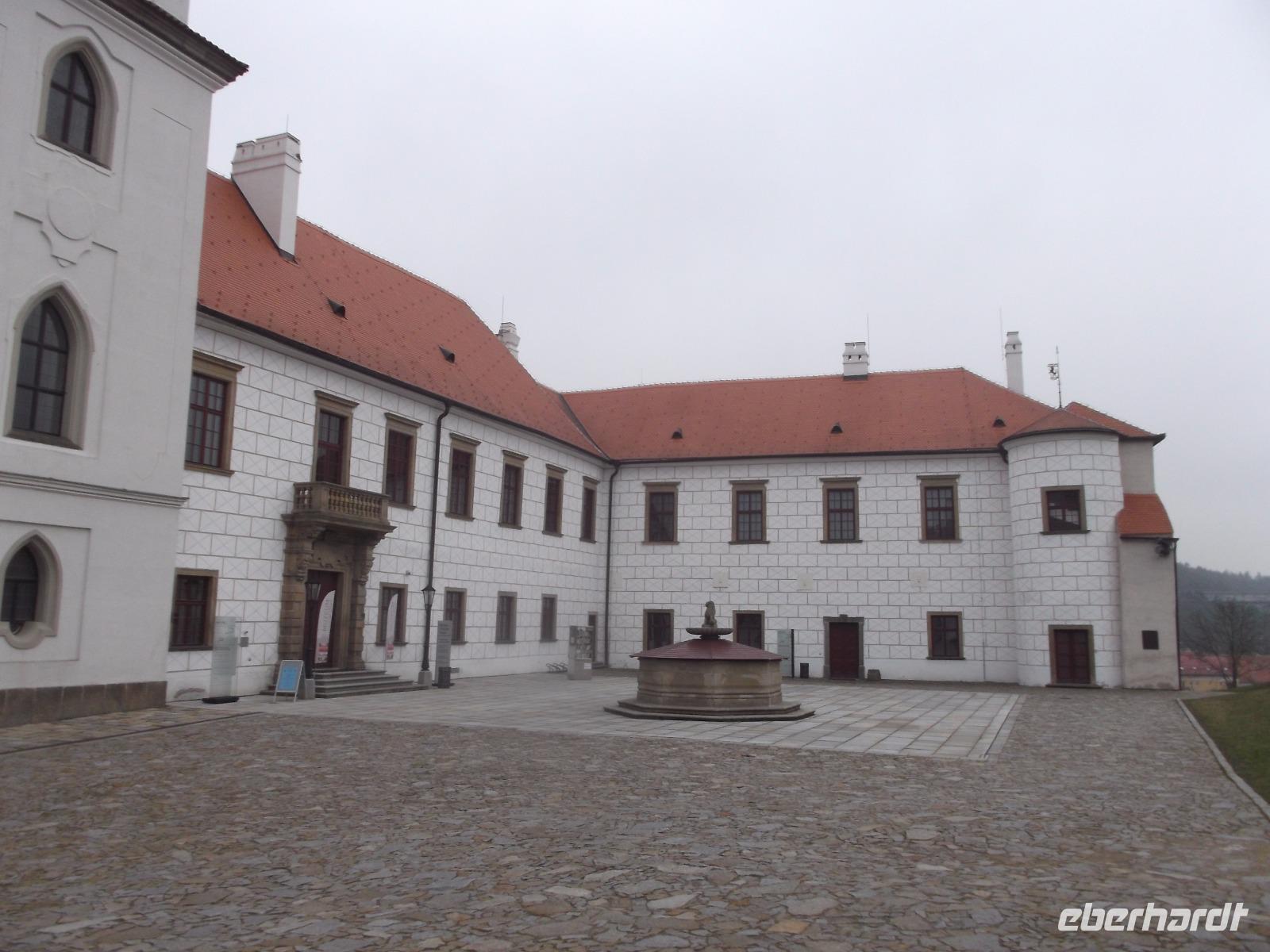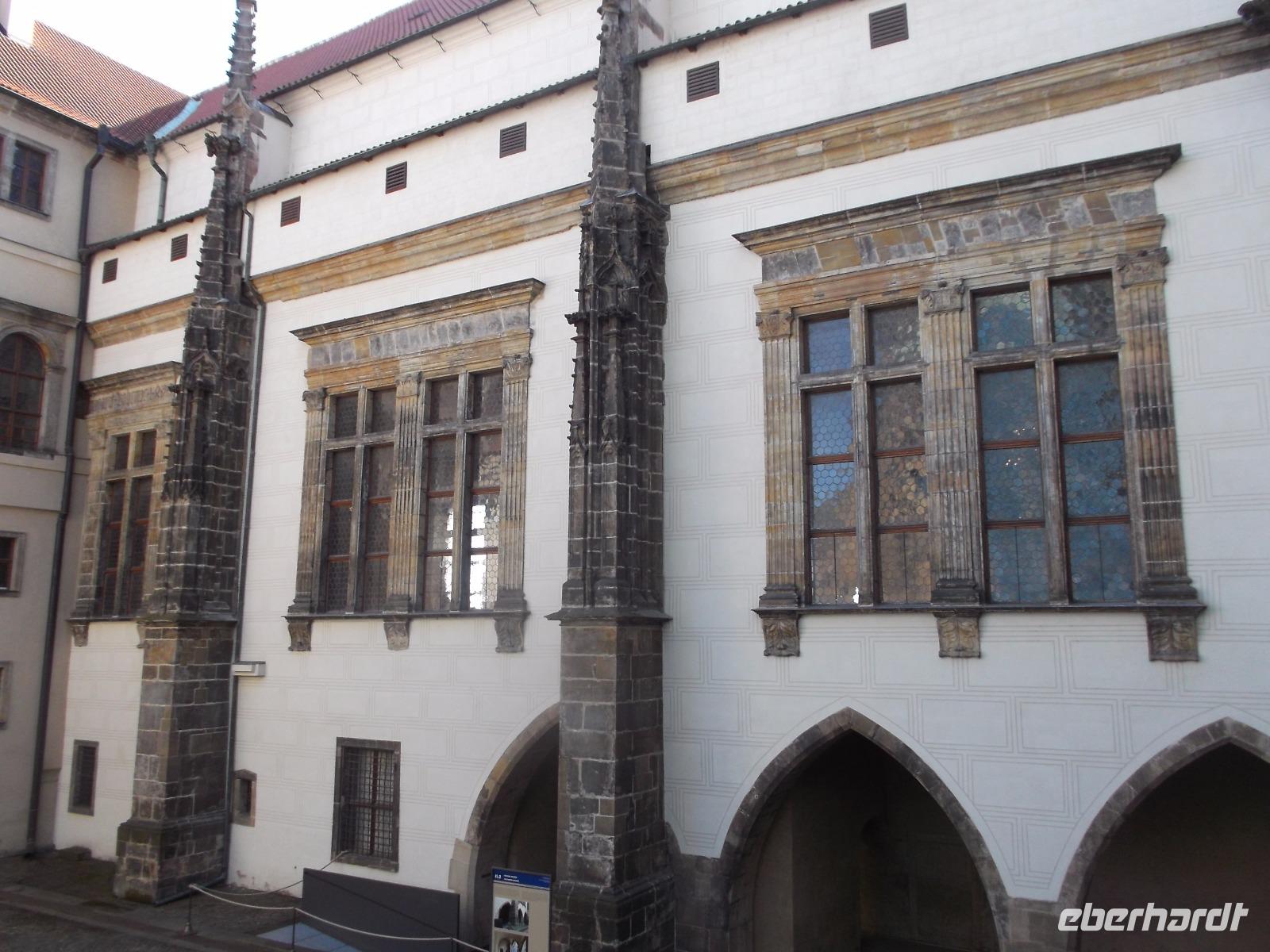 Wir betraten - wie fast immer üblich - die Burg durch den recht modern gestalteten Ehrenhof, der seine heutige Gestalt dem Umbau des Komplexes zum Sitz des Präsidenten der Tschechei 1919 verdankt und dem diese Funktion bis heute zukommt.