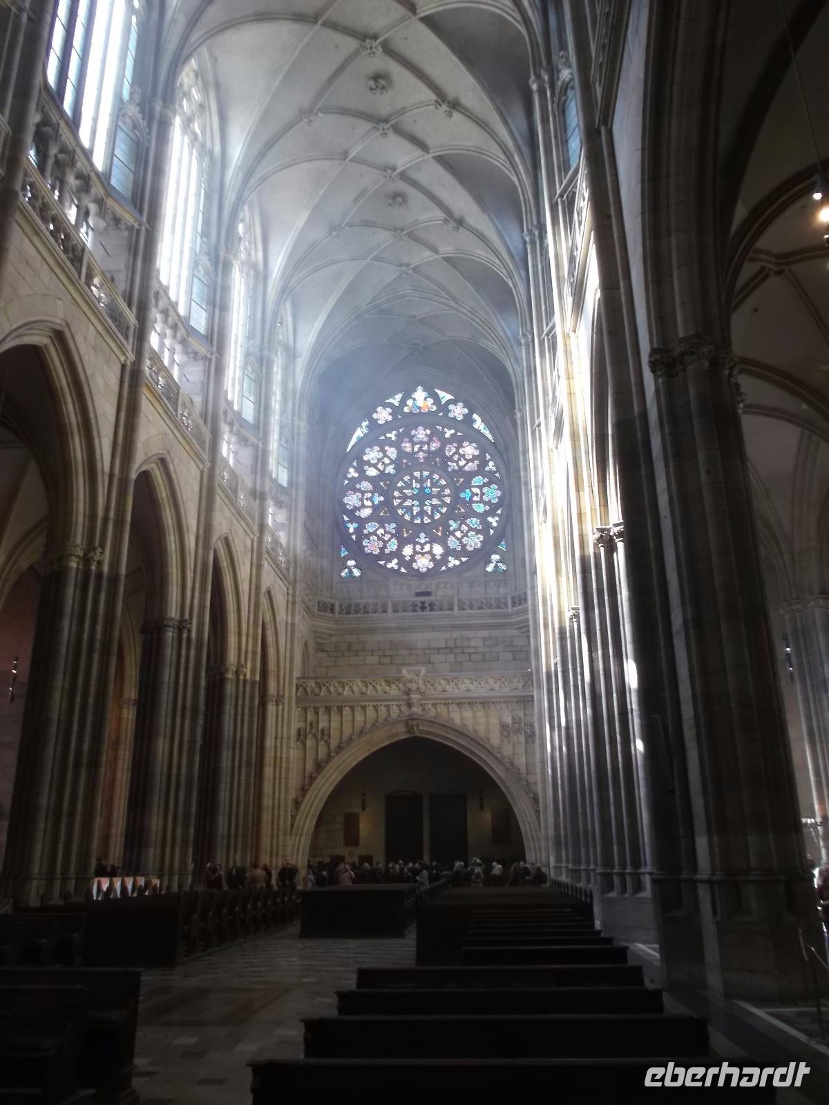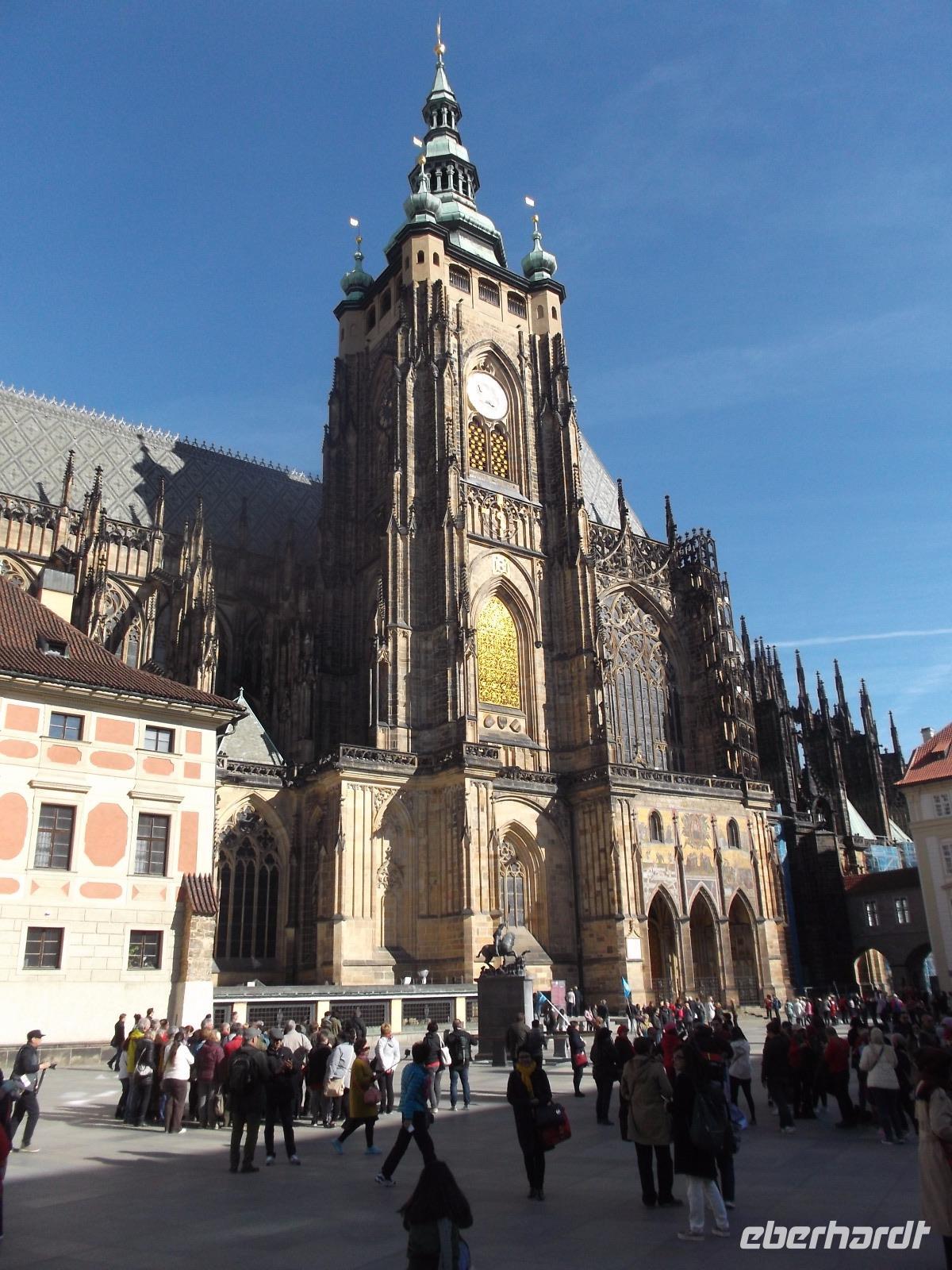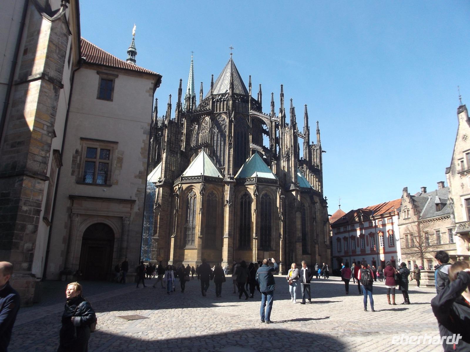 Auf dem Weg durch die Burg zurück konnten wir dann noch den Veitsdom besuchen, heute nicht nur die Kathedrale des Erzbistums Prag, sondern gleichzeitig das größte Kirchengebäude in Tschechien. Schon im 14. Jh. begonnen, wurde der imposante Dom mit seiner immensen Innenraumwirkung und den herrlichen bunten Glasmalereien seiner Fenster erst mehrere hundert Jahre später endgültig vollendet.