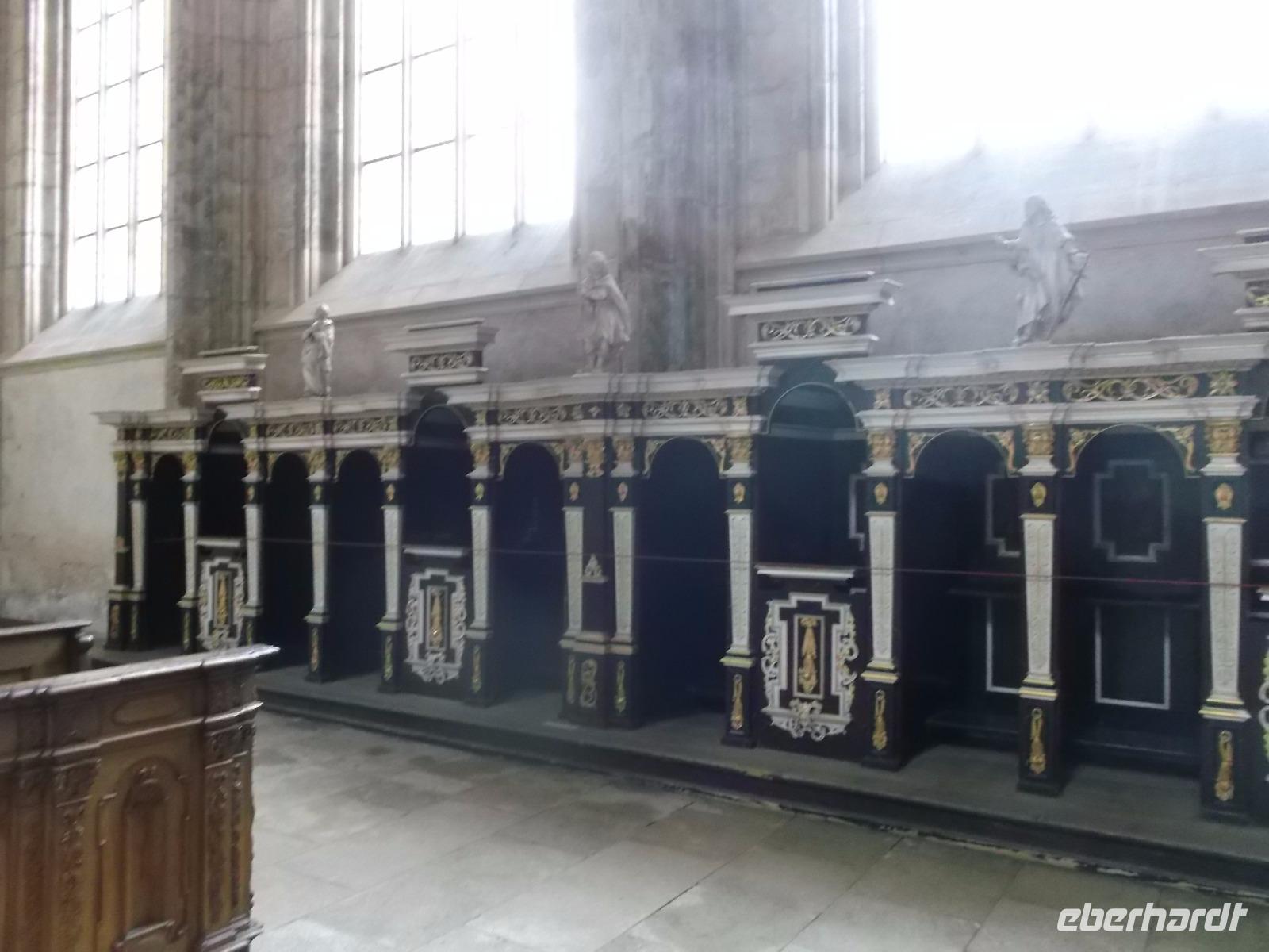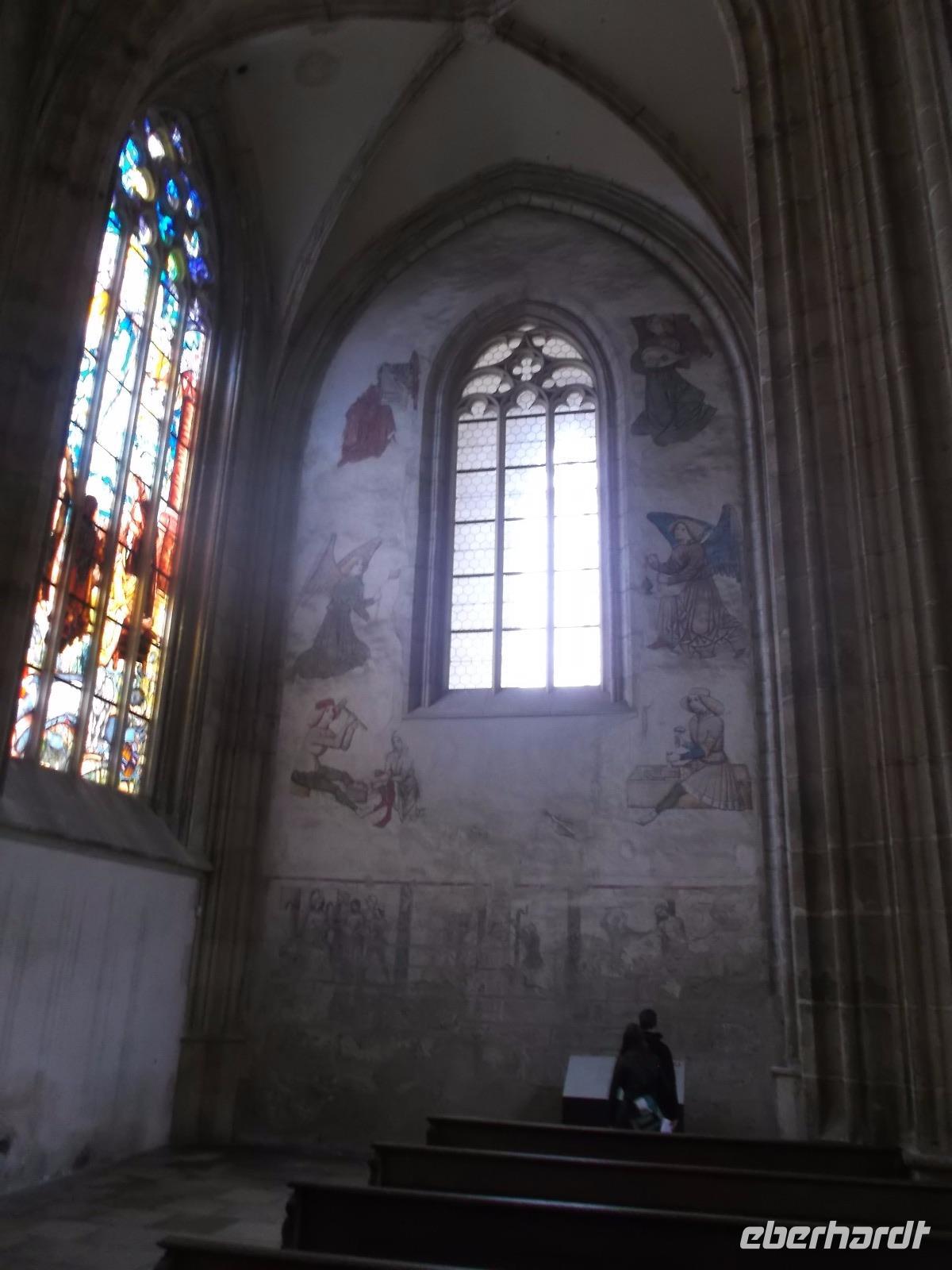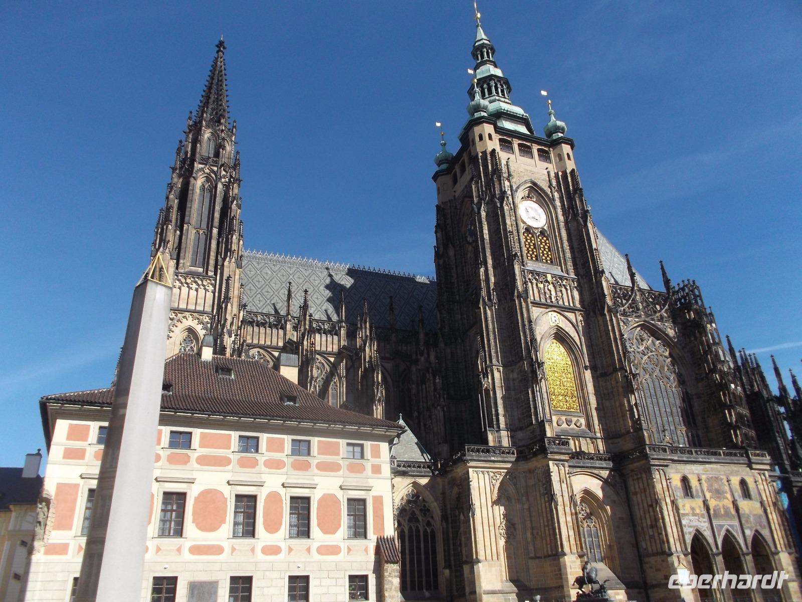 Auf dem Weg durch die Burg zurück konnten wir dann noch den Veitsdom besuchen, heute nicht nur die Kathedrale des Erzbistums Prag, sondern gleichzeitig das größte Kirchengebäude in Tschechien. Schon im 14. Jh. begonnen, wurde der imposante Dom mit seiner immensen Innenraumwirkung und den herrlichen bunten Glasmalereien seiner Fenster erst mehrere hundert Jahre später endgültig vollendet.