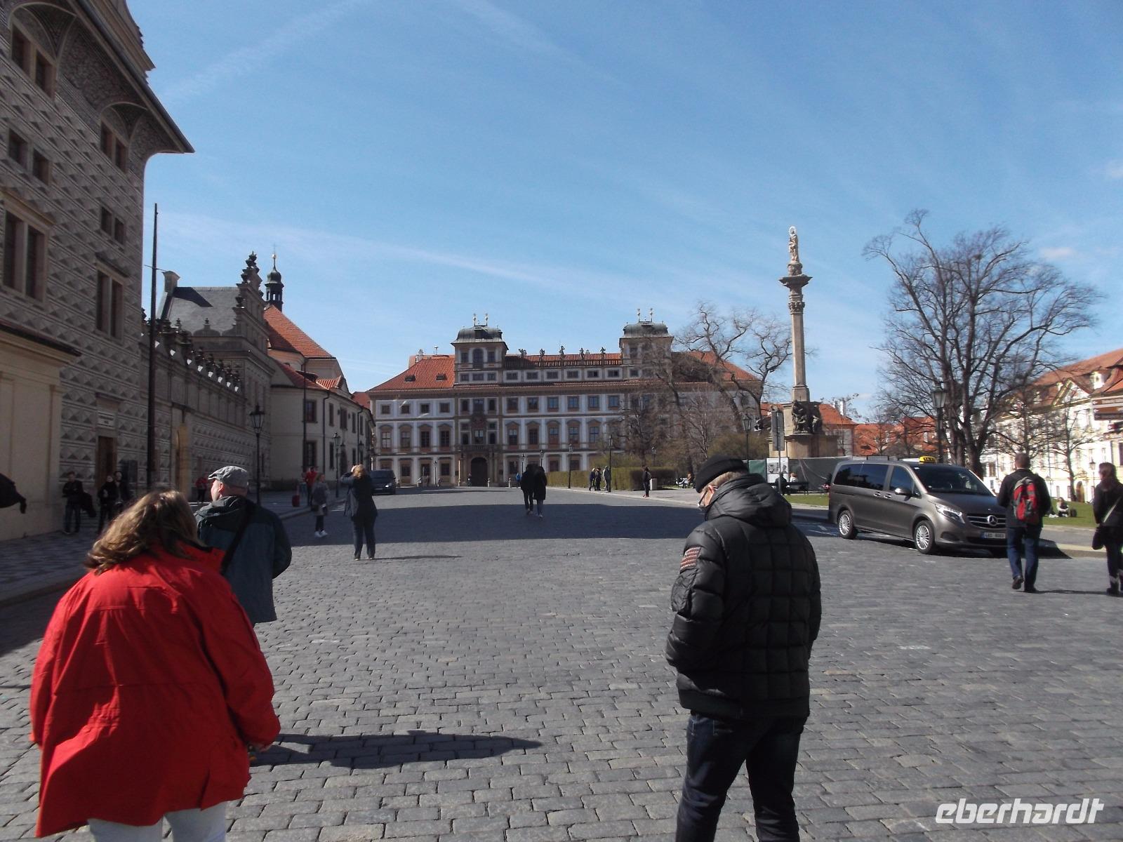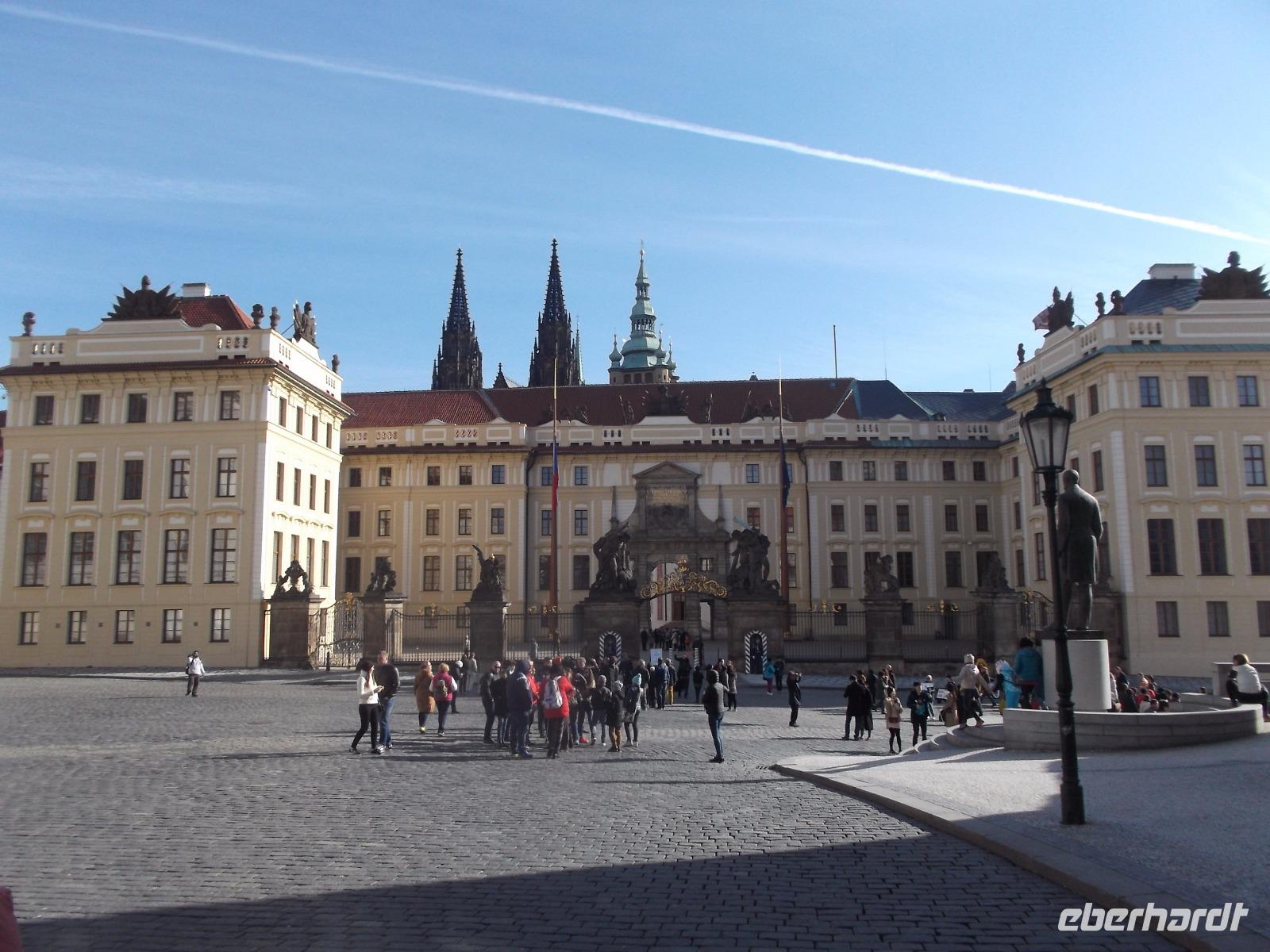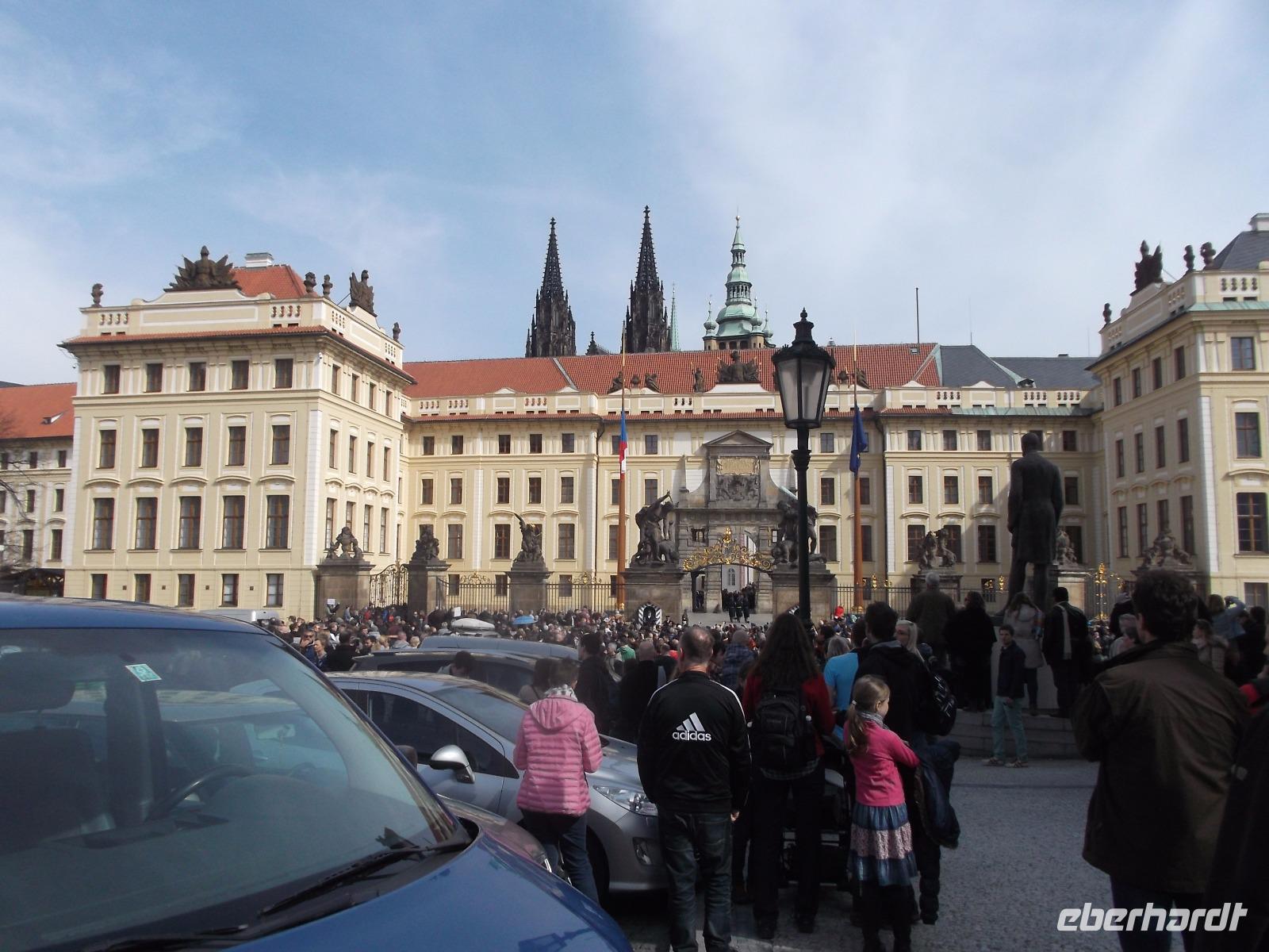 Nach dem Frühstück und Einladen des Gepäcks fuhren wir wieder in den Ortsteil Hradcany. Die Prager Burg liegt auf dem Hradschin genbannten Burgberg und stellt das größte geschlossene Burgareal der Welt dar. .