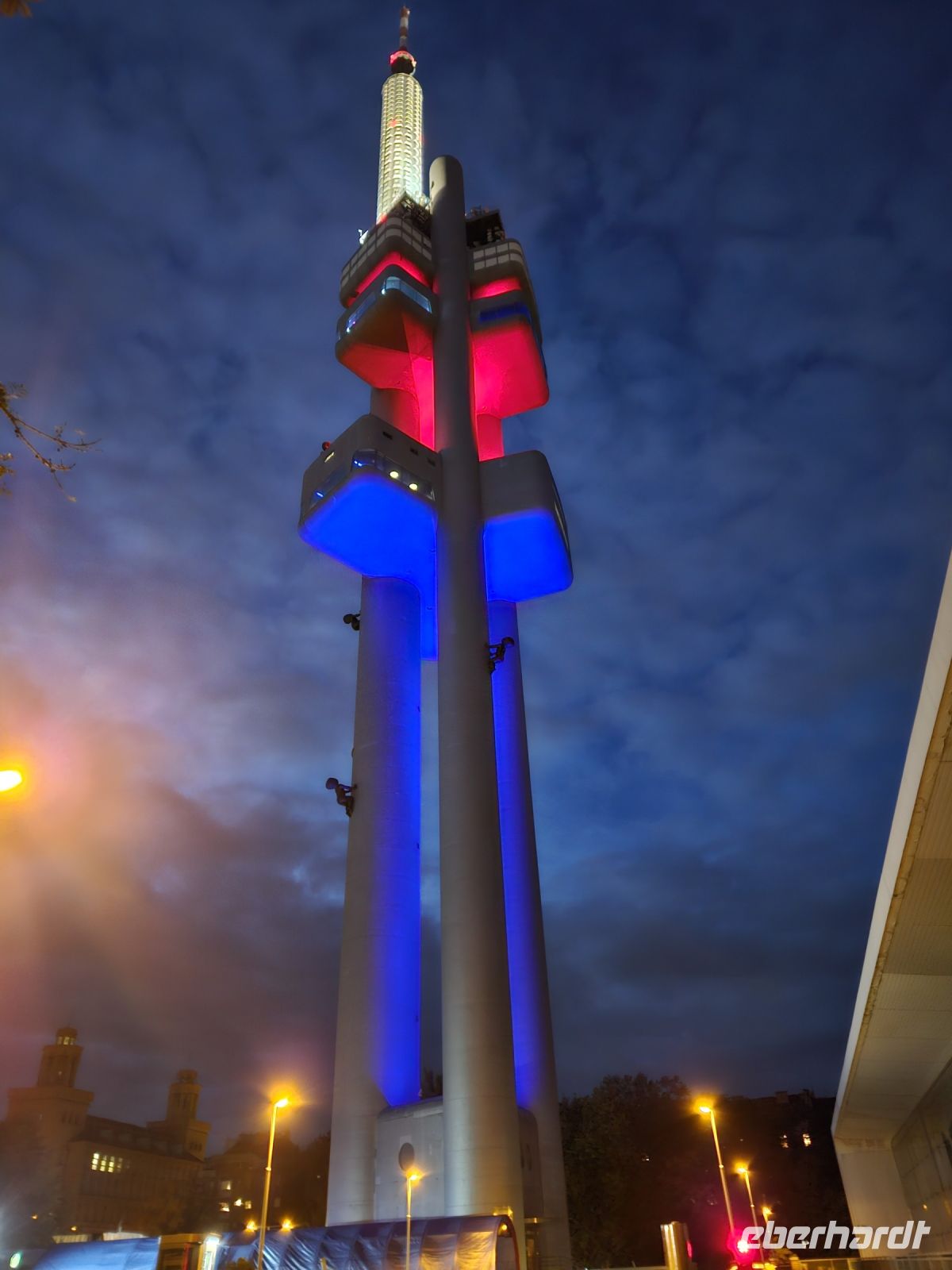Nach einem langen Tag und vielen Laufkilometern, wollten wir etwas zur Ruhe kommen und uns stärken und kehrten in dem Gartenrestaurant „miminoo“ direkt neben dem Prager Fernsehturm ein. Hier wurde uns italienische Küche serviert und es war schön zu sehen, wie es langsam dunkel wurde und der Fernsehturm beim Verlassen des Restaurants in den Farben blau und rot erstrahlte.