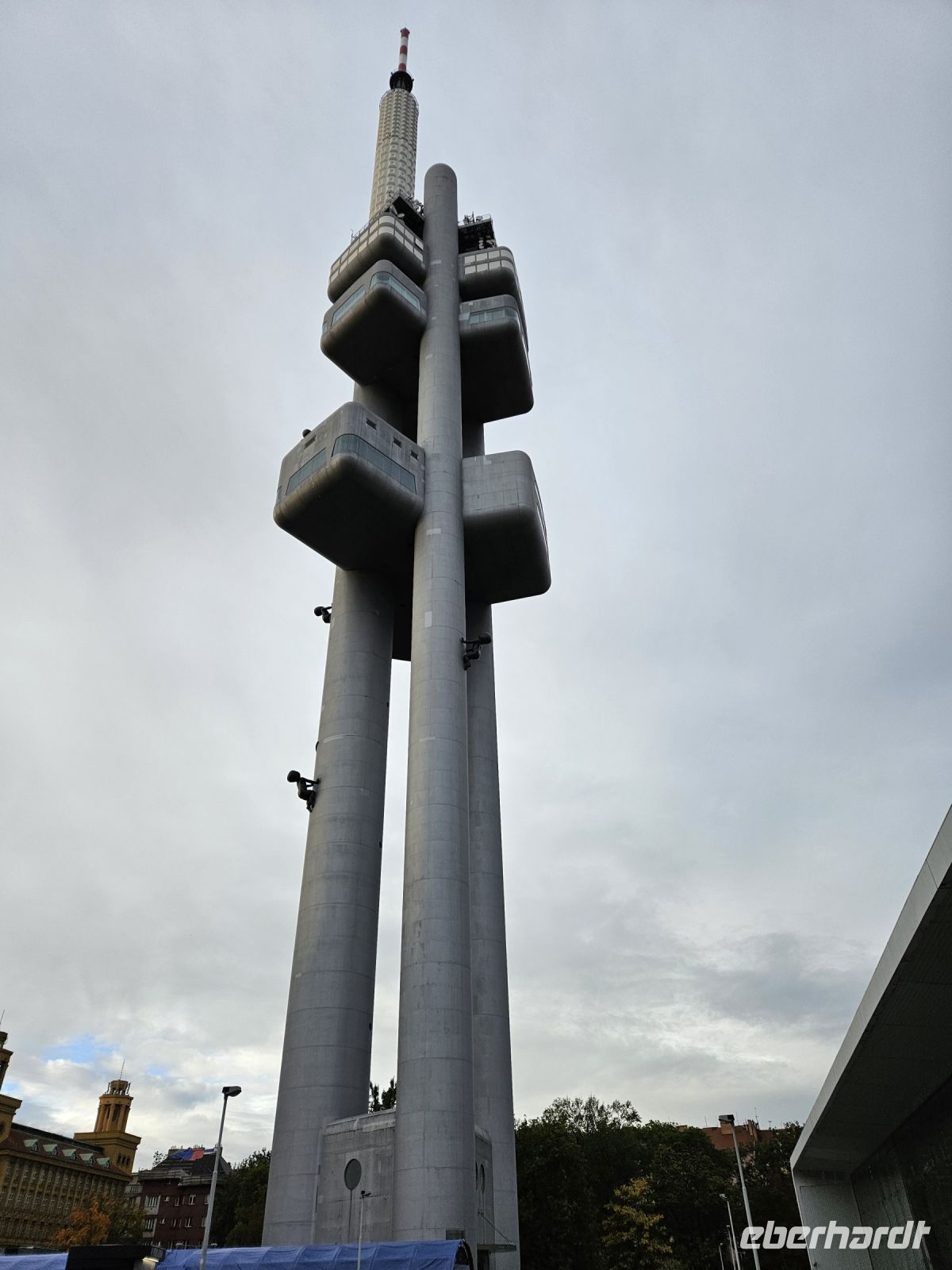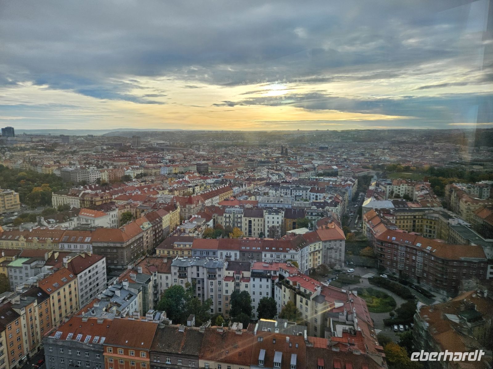 Der Prager Fernsehturm ist mit 216 Metern Höhe das höchste Bauwerk der Stadt und ging 1992 als Sender das erste Mal in Betrieb. Mit einem Expresslift erreicht man die 97 Meter hohe Aussichtsplattform. Von hier aus wird einem nochmal bewusst, wie riesig die Stadt eigentlich ist. Wir genossen die wunderbare Aussicht mit Sonnenuntergang.