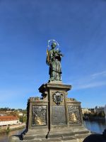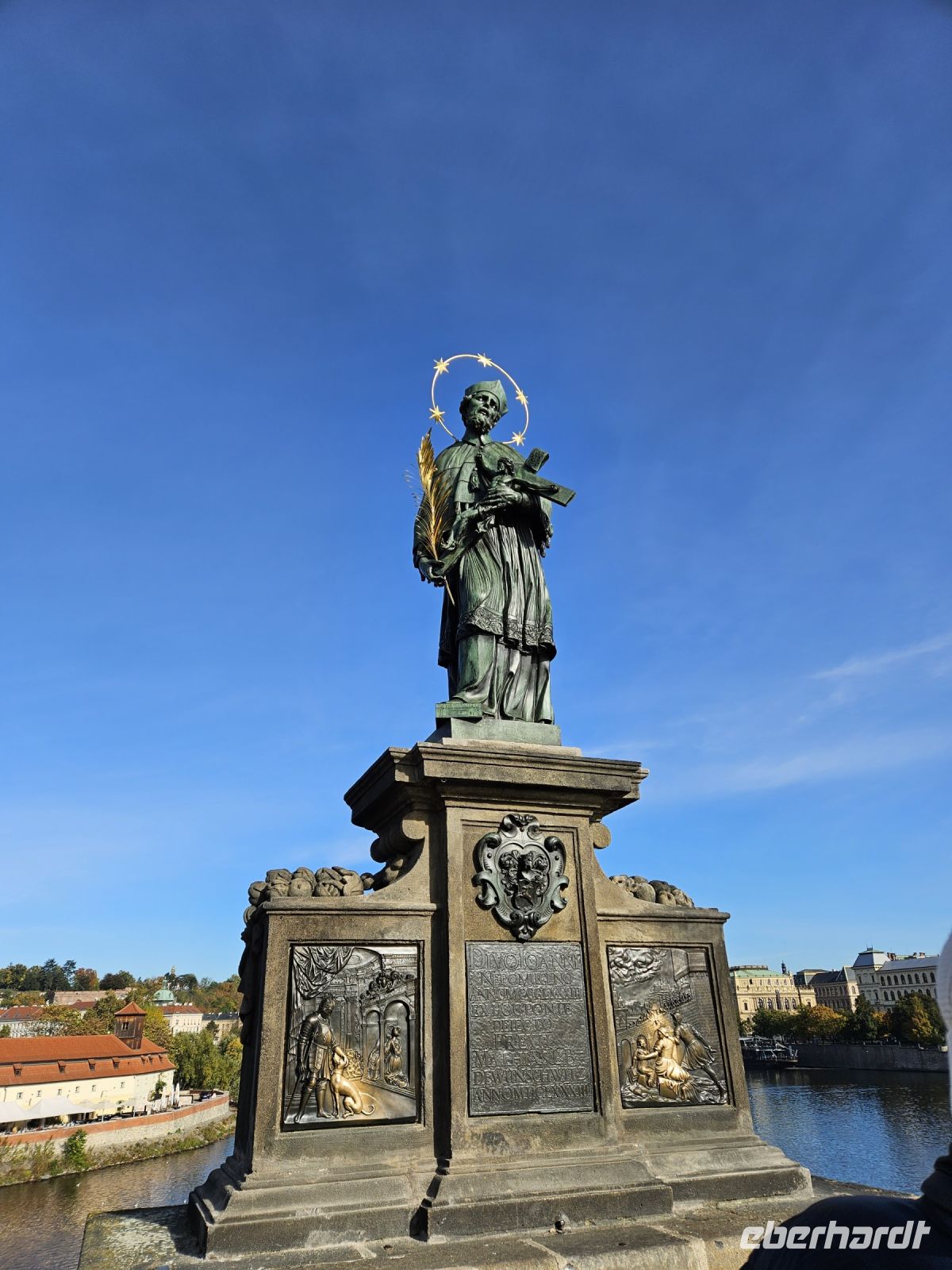 Von den 30 Skulpturen der Karsbrücke, ist die des heiligen Johannes von Nepomuk die bekannteste. Berührt man die Bronzestatue am Sockel, soll man mit besonders viel Glück beschert werden.