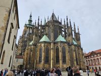 Durch die Umstellung auf die Winterzeit, konnten wir alle eine Stunde länger schlafen und uns anschließend beim Hotelfrühstück gut für den Tag stärken. An der Hotelrezeption wartete um 09.00 Uhr bereits unsere örtliche Reiseleiterin Irena auf uns. Aufgrund einer Messe konnten wir den Veitsdom heute erst ab 12.00 Uhr besichtigen und so ließen wir uns auf dem Weg zur Prager Burg und vor Ort viel Zeit. Mit der Straßenbahn fuhren wir bereits in die Nähe der Prager Burg und begannen hier unseren Spaziergang. Die Prager Burg ist mit ihren Burghöfen, Palästen, Museen und Parks ein gewaltiger Komplex, auf dem man den ganzen Tag verbringen kann. Heute ist die Burg die offizielle Residenz des Präsidenten der Tschechischen Republik. Wir schlenderten durch das Goldene Gässchen, wo man einen Blick in die winzigen Häuschen werfen und eine Vorstellung davon gewinnen kann, wie die Menschen damals auf kleinstem Raum gelebt haben. Man sagt, dass hier die Alchemisten gewohnt haben, die für Rudolf II gearbeitet und daran gearbeitet haben einen Verjüngungstrank, als auch den Stein der Weisen herzustellen. Auch der berühmte Schriftsteller Franz Kafka lebte für kurze Zeit in dem Haus Nr. 22 im Goldenen Gässchen.