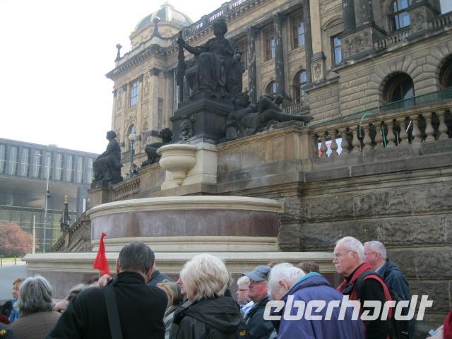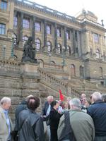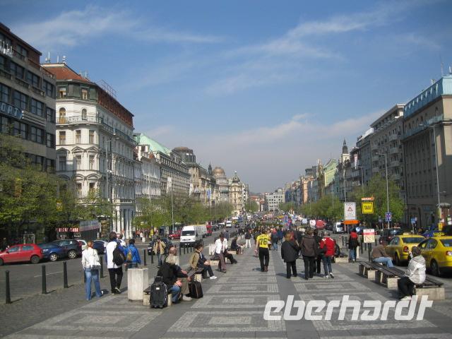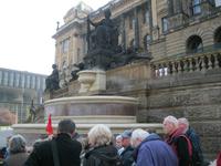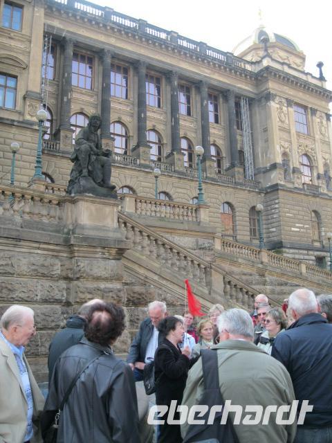 Do 19.04.12 Verdünntes Moldauwasser bekamen wir schon in DD in Form der Elbe zu sehen,denn da begann unsere gemeinsame Reise mit einer kleinen Stadtrundfahrt.Später fuhren wir ein Stück Landstr.und schauten uns vom Bus aus die Festungsstadt und Getto Terzin an.Gegen 13.00Uhr erreichten wir unser Hotel in Prag und verabredeten uns zu einer ersten Orientierungstour, linksseitig des Wenzelsplatzes.Wir ließen uns vom Jugendstil des Lucerna Palastes beeindrucken und staunten über ein verkehrtrum aufgehängtes Pferd samt Reiter.Der Weg führte uns weiter zum Franziskaner Kräutergarten.Dort besichtigten wir die Kirche "Maria am Schnee"mit dem höchsten Altar Prags.Danach war Freizeit und Bummeln angesagt.Am Abend fuhren wir ins "U Medviedku" zum Abendessen.Ein uriger Bierkeller mit trad.CZ Küche empfing uns.Das Budweiser Bier lief kühl die Kehle hinunter und zum Abschluß gab es lecker Apfelstudel.Ein erster Tag in der Hautstadt CZ ging vorüber,aber die Nacht erst begann!