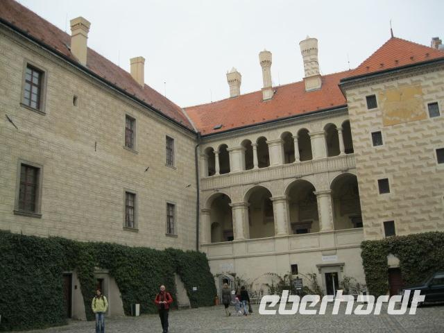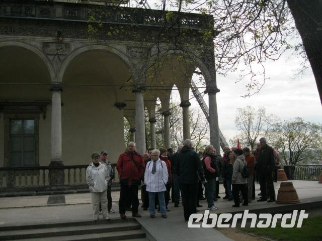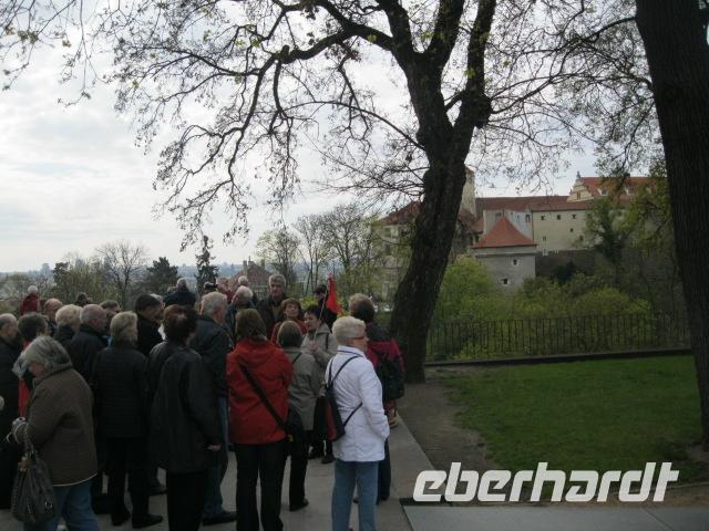 So 22.04.12 Auch heute konnten wir wieder ausschlafen.Die Abreise war für Mittag geplant und so konnte man noch nicht Gesehendes erkunden.Bei Sonnenschein verabschiedeten wir uns von dieser prachtvollen Stadt und fuhren Richtung Melnik.Die ehemalige Königsstadt,heute ein besinnliches Städtchen mit Marktplatz,Kirche und Schloß ,empfing uns recht verschlafen.Bekannt ist Melnik für seine guten Weine.Die Weingärten weden zum Teil durch ökolog.Landwirtschaft bewirtschaftet.Seit 1992 wieder im Privatbesitz der Fürsten v.Lobkowicz, präsentiert sich das Schloß in alter Schönheit.(Vielleicht auch deshalb-der Fürst wohnt höchst persönlich auch dort)Auf der Terasse traf sich unsere Reisegruppe um mit einem Glas des berühmten Melniker Weines "Ludmilla"anzustoßen.Wir blickten übers Land und schauten noch einmal zum Zusammenfluß von Modau und Elbe.