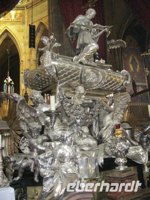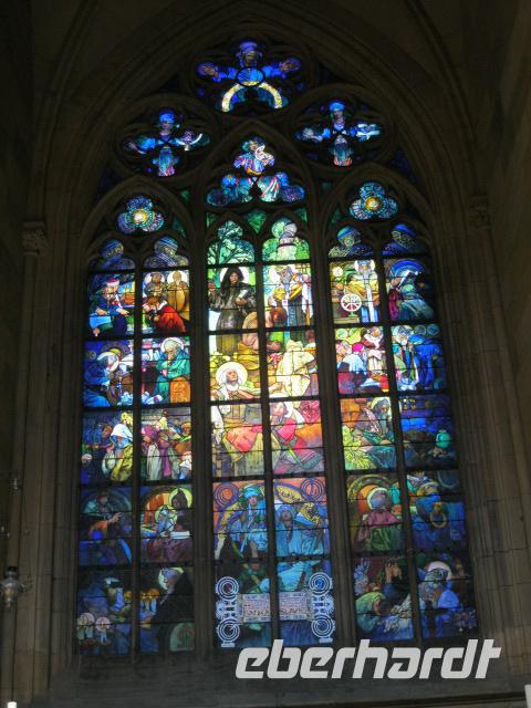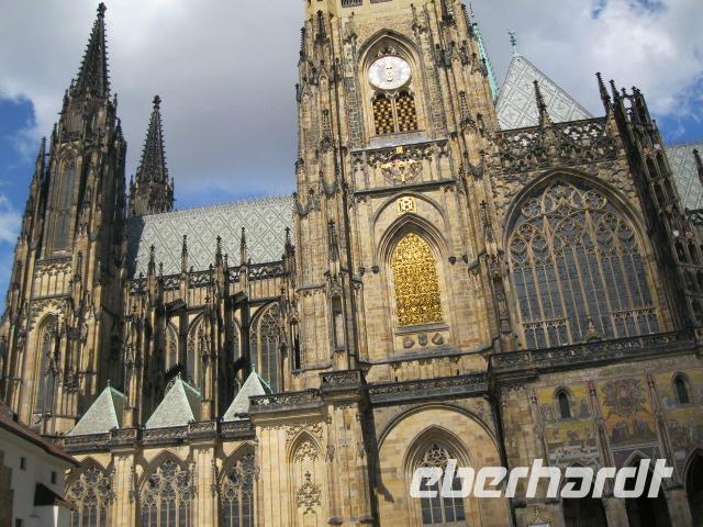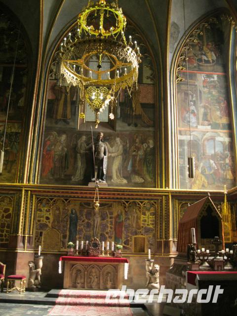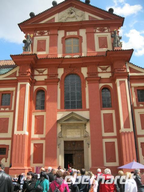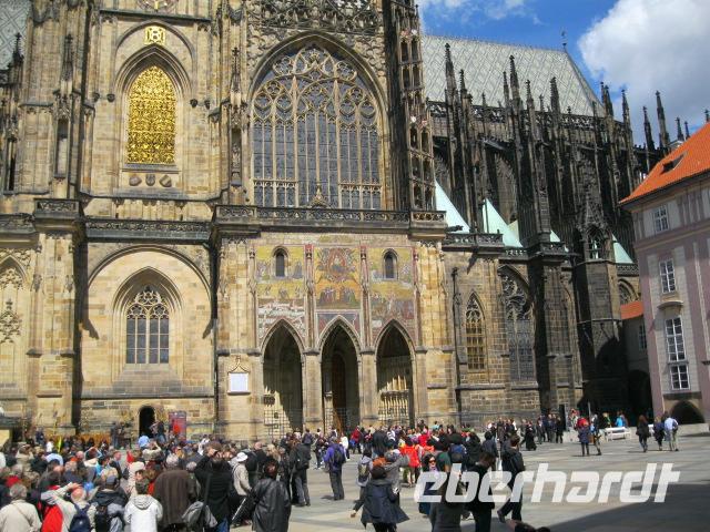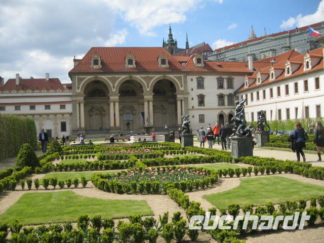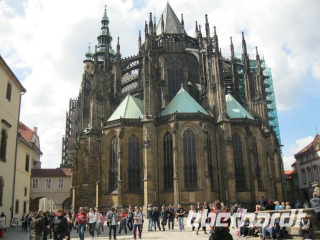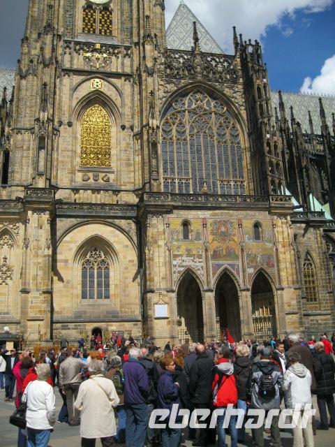 Sa 21.04.12 Nach einem ausgedehnten Langschläferfrüstück trafen wir Jana wieder und fuhren mit der L22 zum Burgberg.Dort erwartete uns ein Lustschloß mit singenden Brunnen und ein Park mit uraltem Baumbestand-die königl.Gärten.Über die Burghöfe gelangten wir zum Veitsdom und Schlange stehen war angesagt.Karl IV veranlaßte 1344 die Grundsteinlegung,aber Generationen waren mit der Fertigstellung beschäftigt,dauerte sie doch fast 6oo Jahre.Der Dom wurde erst 1929 vollendet eingeweiht.Unterschiedliche baugeschichtliche Elemente prägen daher auch sein heutiges Aussehen.Viele bekannte Persönlichkeiten der Zeitgeschichte fanden dort ihre letze Ruhestätte.Wir besichtigten noch den alten Königspalast-(wo es zum sogenannten Prager Fenstersturz kam) die St.Georgs Basilika und das goldene Gässchen durfte nicht fehlen.(dort suchte Kafka abends Zuflucht ,um in Ruhe schreiben zu können).Nach Besichtigung des Waldstein Palais u.Gartens gelangten wir zur Karlsbrücke.Sicher hatte jeder einen Wunsch,den er dem hl.Nepomuk anvertraute,und nun hofft in Erfüllung zu gehen.Den Abend verbrachten wir wieder gemeinsam.Das Stammlokal vom "braven Soldaten Schwejk" mußten wir unbedingt gesehen haben.Im"U Kalicha"bei deftigem Essen,wohl temperierten Bier u.zünftiger böhm.Musik wurde es ein recht geselliger Abend ,den jeder nach seinem Bettgefühl beendete.