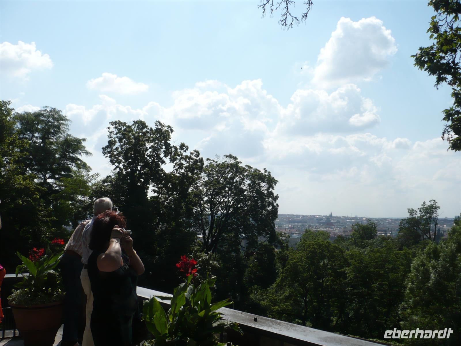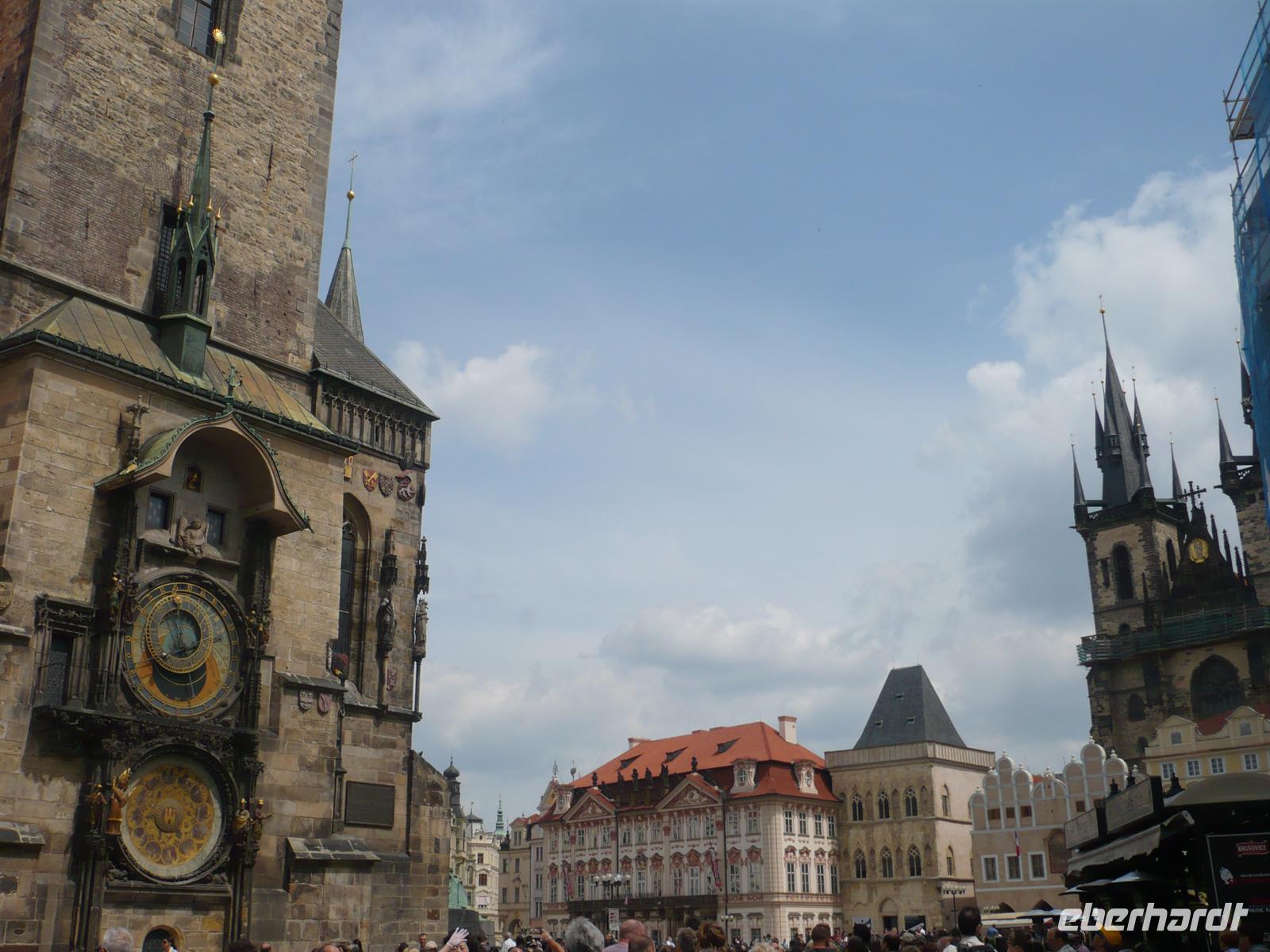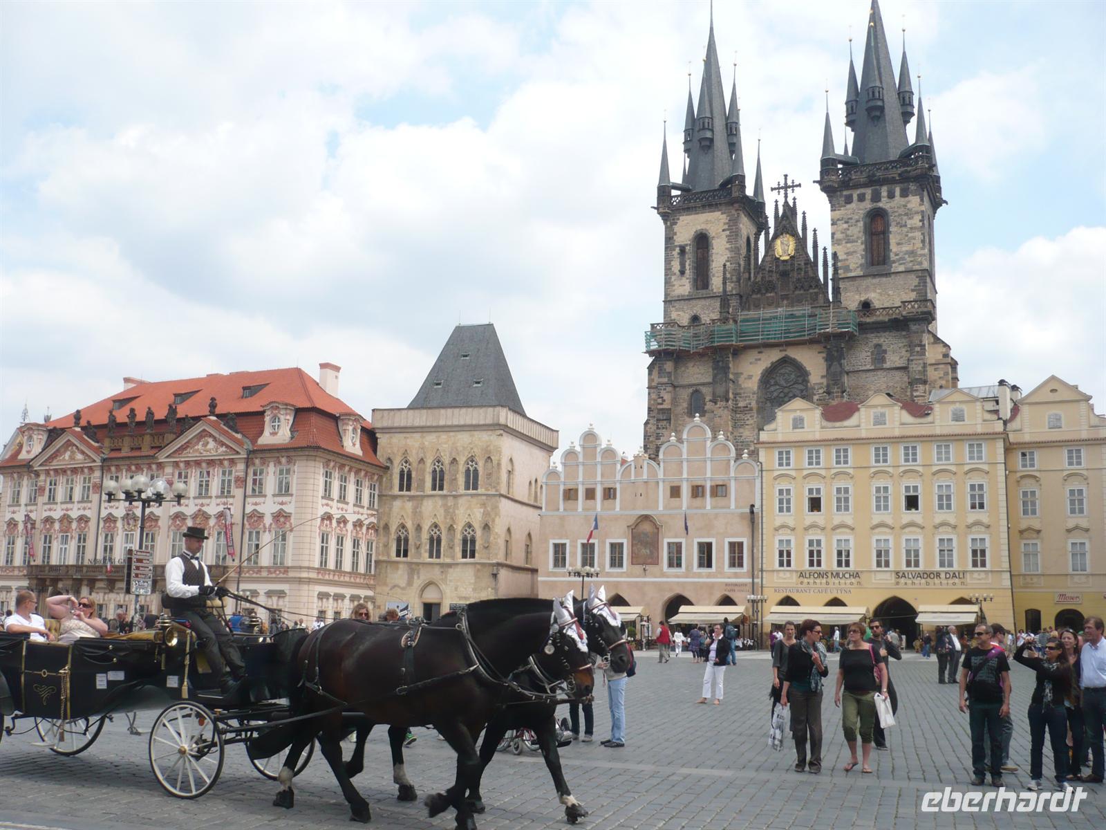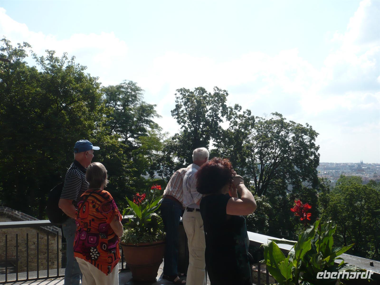 1. Tag AnreiseVoller Vorfreude fuhren wir, eine familiäre Gruppe von 24 Eberhardt Gästen, in die "Goldene Stadt" Prag. Bereits auf der Fahrt gab es Einiges zu sehen, wir fuhren vorbei an dem herrlichem Altstadtpanorama der Landeshauptstadt Dresden, über das idyllische Bad Gottleubatal nach Böhmen. In Prag angekommen erhaschten wir schon die ersten schönen Blicke über die Moldau und auf einige der prägendsten Sehenswürdigkeiten der Stadt. Vorbei am Bahnhof, dem Nationalmuseum und dem Reiterdenkmal des Heiligen Wenzels auf dem Wenzelsplatz, erreichten wir unser zentrales Hotel. Nach dem Bezug der Zimmer, erkundeten wir gemeinsam die Stadt. Ein ganz besonderes Ausflugsziel sollte der Petrin, der Laurenziberg, werden. Mit der historischen Drahtseilbahn fuhren wir auf dem Stadtberg, auf dem der Prager „Eiffelturm“ über der Stadt ragt. Am Abend liefen wir gemeinsam zur berühmtesten und einer der ältesten Prager Bierstuben, dem "U Fleku". Hier wurden wir auf ganz böhmische Art verköstigt: deftige Knoblauchsuppe, schmackhafter Schweinebraten mit Knödel und Apfelkuchen. Das Hausbier der Brauerei durfte natürlich auch nicht fehlen.2. Tag AltstadtNach einem vitalen Frühstück wurden wir von unserer Reiseleiterin Jana empfangen. Gemeinsam spazierten wir durch Passagen im Stil der 30er Jahre hin zum bunten, mit Rosen übersäten Franziskaner Garten. In der Maria-Schnee-Kirche, bestaunten wir den höchsten Böhmischen Altar. Über den Platz auf dem das Geburtshaus von Franz Kafka steht, liefen wir zum Gemüsemarkt. Hier wird schon seit Jahrhunderten frisches Obst und Gemüse verkauft. Heute findet man hier auch die leckeren Oblaten und andere Mitbringsel für die Lieben Zuhause. Über den Gemeindeplatz, welcher vom Gemeindehaus und dem Pulverturm geschmückt wird, liefen wir durch die Gassen zum Altstädter Ring. Hier hatten wir mehr als eine Stunde um unsere Füße auszuruhen, zu Mittag zu essen oder einfach das bunte Getümmel zu beobachten. Nach einer ausgiebigen Mittagspause spazierten wir weiter zur imposanten Karlsbrücke. Eine der schönsten Brücken Europas erstreckt sich vor dem königlichen Hradschin über die Moldau, ein beeindruckendes Bild das kein Pragbesucher vergessen wird. Unser Spaziergang endete an den Landungsbrücken, wo wir die Besichtigung Prag zu Wasser weiterführten. Auf dem eigens für unsere Gruppe angemieteten Moldauschiff sahen wir die Stadt aus einer anderen Perspektive. Am Abend suchten wir in einer kleinen Gruppe eine urige Prager Bierstube auf.3. Tag Hradschin
