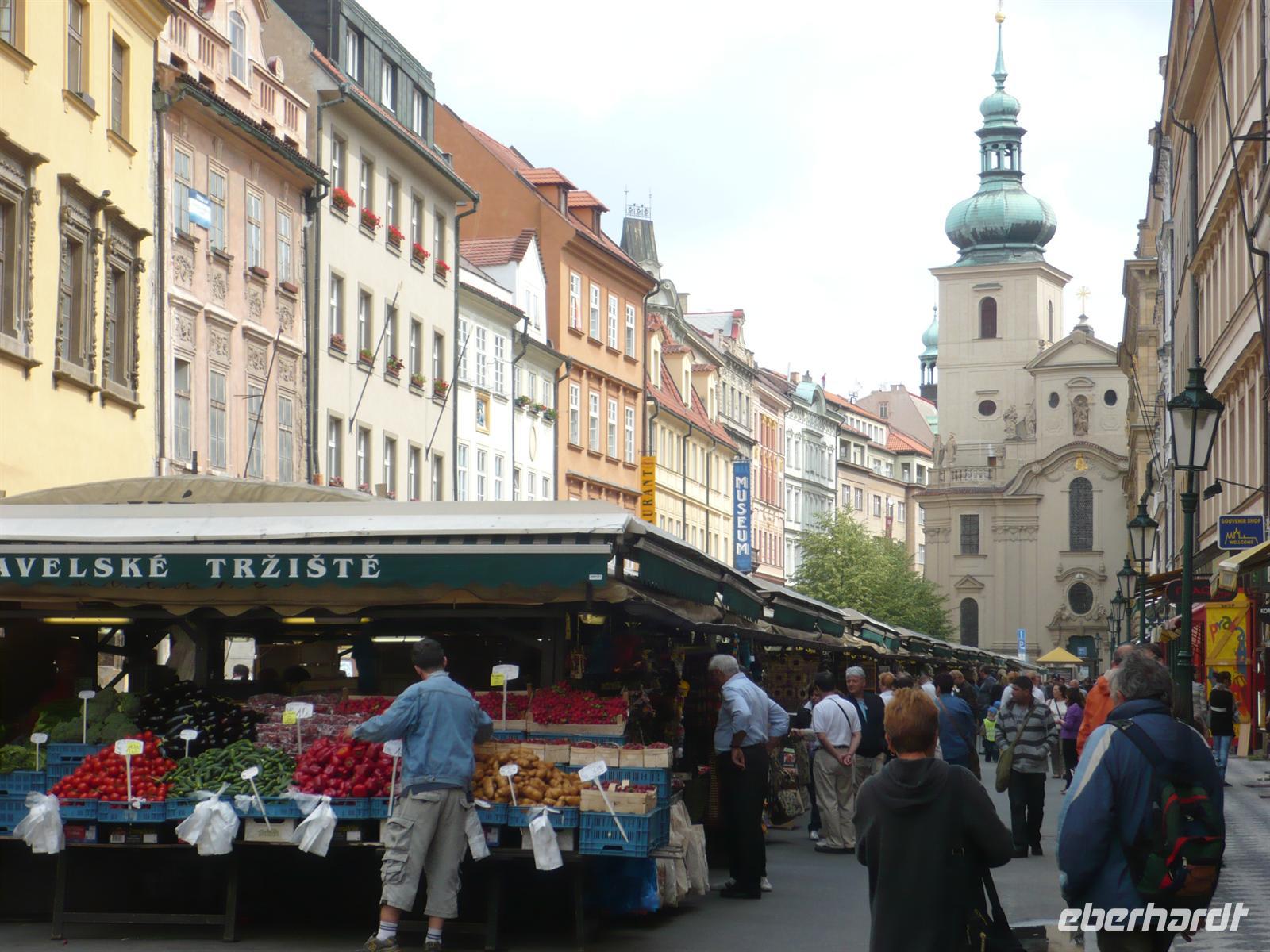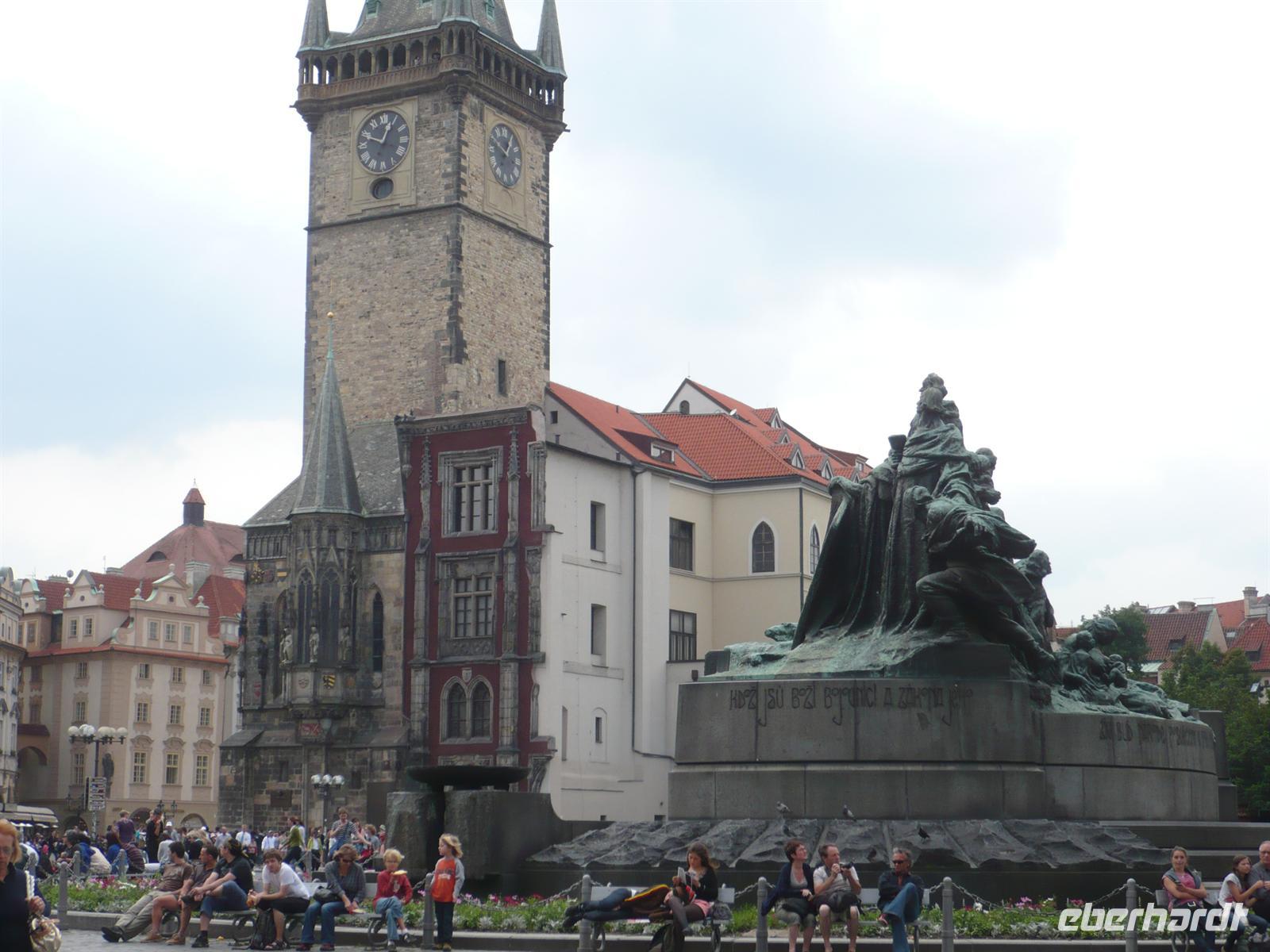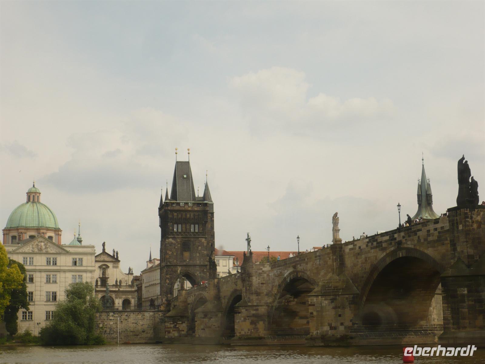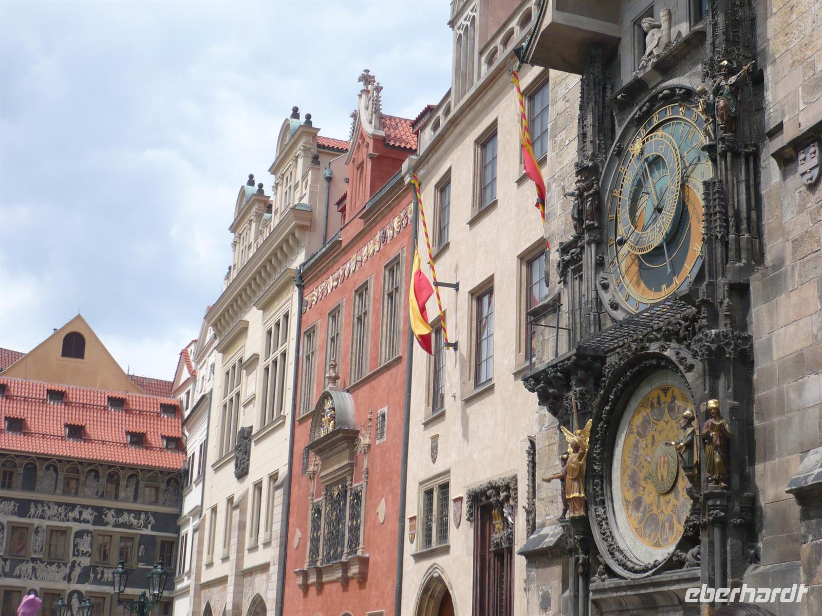 1. Tag AnreiseVoller Vorfreude fuhren wir, eine familiäre Gruppe von 24 Eberhardt Gästen, in die "Goldene Stadt" Prag. Bereits auf der Fahrt gab es Einiges zu sehen, wir fuhren vorbei an dem herrlichem Altstadtpanorama der Landeshauptstadt Dresden, über das idyllische Bad Gottleubatal nach Böhmen. In Prag angekommen erhaschten wir schon die ersten schönen Blicke über die Moldau und auf einige der prägendsten Sehenswürdigkeiten der Stadt. Vorbei am Bahnhof, dem Nationalmuseum und dem Reiterdenkmal des Heiligen Wenzels auf dem Wenzelsplatz, erreichten wir unser zentrales Hotel. Nach dem Bezug der Zimmer, erkundeten wir gemeinsam die Stadt. Ein ganz besonderes Ausflugsziel sollte der Petrin, der Laurenziberg, werden. Mit der historischen Drahtseilbahn fuhren wir auf dem Stadtberg, auf dem der Prager „Eiffelturm“ über der Stadt ragt. Am Abend liefen wir gemeinsam zur berühmtesten und einer der ältesten Prager Bierstuben, dem "U Fleku". Hier wurden wir auf ganz böhmische Art verköstigt: deftige Knoblauchsuppe, schmackhafter Schweinebraten mit Knödel und Apfelkuchen. Das Hausbier der Brauerei durfte natürlich auch nicht fehlen.2. Tag AltstadtNach einem vitalen Frühstück wurden wir von unserer Reiseleiterin Jana empfangen. Gemeinsam spazierten wir durch Passagen im Stil der 30er Jahre hin zum bunten, mit Rosen übersäten Franziskaner Garten. In der Maria-Schnee-Kirche, bestaunten wir den höchsten Böhmischen Altar. Über den Platz auf dem das Geburtshaus von Franz Kafka steht, liefen wir zum Gemüsemarkt. Hier wird schon seit Jahrhunderten frisches Obst und Gemüse verkauft. Heute findet man hier auch die leckeren Oblaten und andere Mitbringsel für die Lieben Zuhause. Über den Gemeindeplatz, welcher vom Gemeindehaus und dem Pulverturm geschmückt wird, liefen wir durch die Gassen zum Altstädter Ring. Hier hatten wir mehr als eine Stunde um unsere Füße auszuruhen, zu Mittag zu essen oder einfach das bunte Getümmel zu beobachten. Nach einer ausgiebigen Mittagspause spazierten wir weiter zur imposanten Karlsbrücke. Eine der schönsten Brücken Europas erstreckt sich vor dem königlichen Hradschin über die Moldau, ein beeindruckendes Bild das kein Pragbesucher vergessen wird. Unser Spaziergang endete an den Landungsbrücken, wo wir die Besichtigung Prag zu Wasser weiterführten. Auf dem eigens für unsere Gruppe angemieteten Moldauschiff sahen wir die Stadt aus einer anderen Perspektive. Am Abend suchten wir in einer kleinen Gruppe eine urige Prager Bierstube auf.3. Tag Hradschin