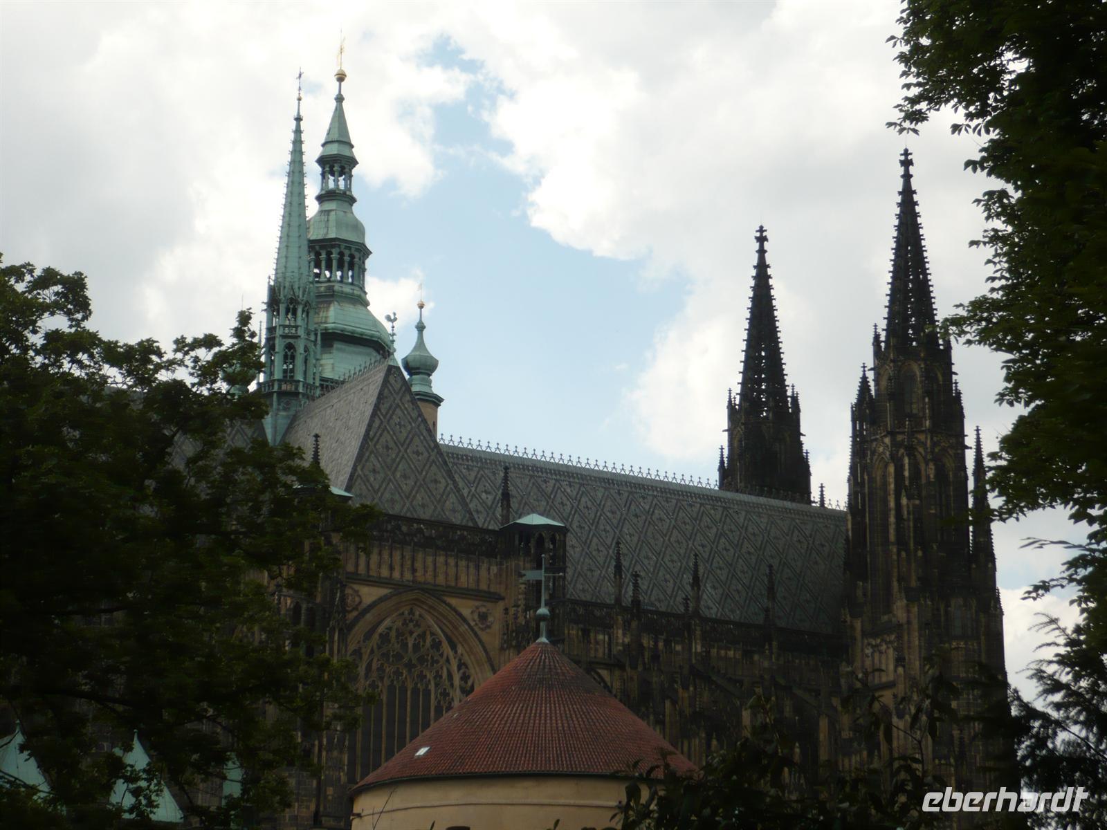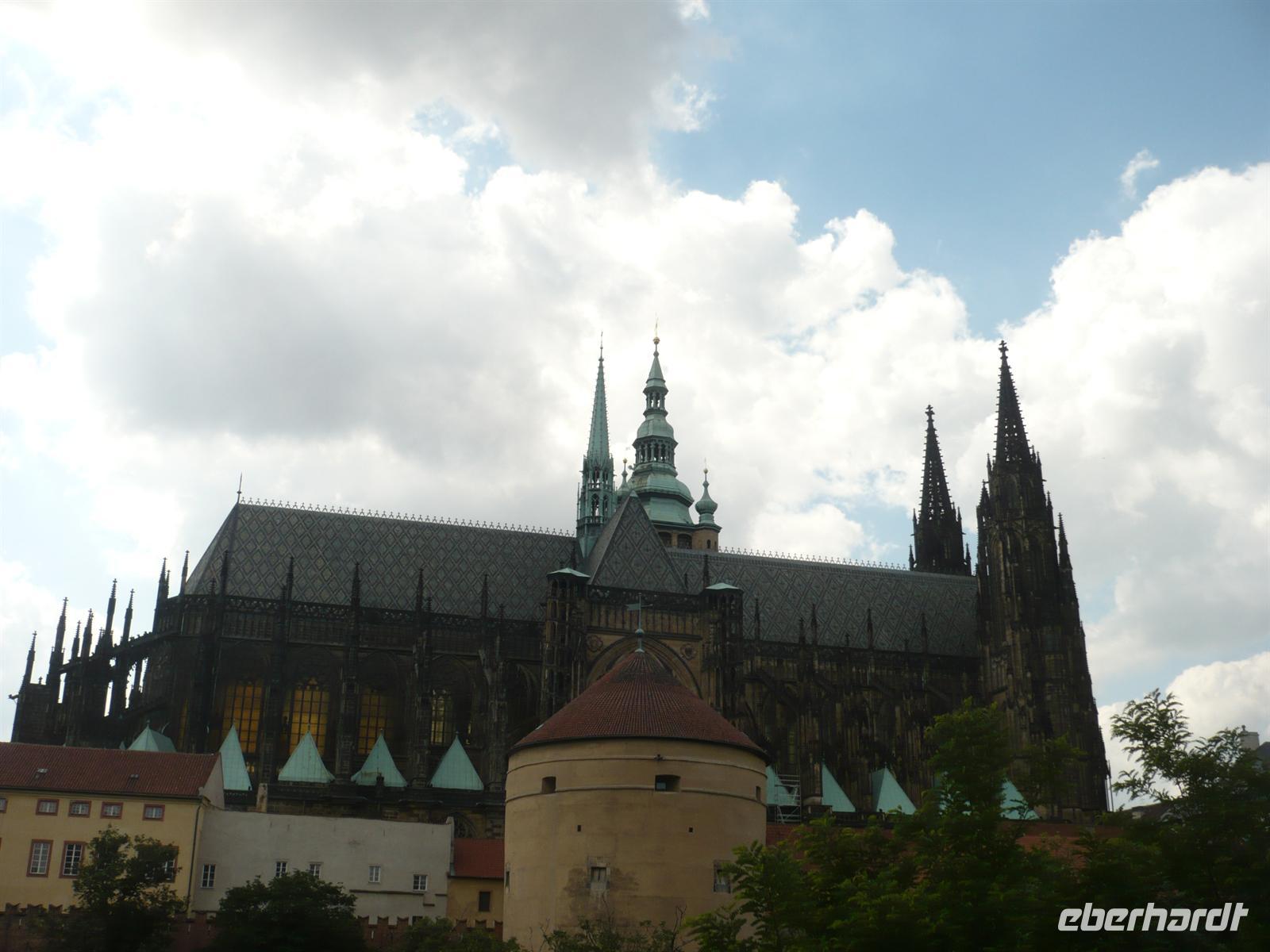 Die Prager Burg ist war im Mittelalter das geistige Zentrum der Stadt. Mit der Straßenbahn fuhren wir auf den Burgberg. Beim Lustschloss mit Bronzespringbrunnen und den Ballspielsaal von Königin Anna verließen wir die Bahn. Von hier aus hat man einen herrlichen Blick auf die Stadt und man sieht den Veitsdom aus einem ganz anderen Blickwinkel. Durch die königlichen Gärten schlenderten wir bis zu den Pforten der Prager Burg. Über den 2.Burghof gelangten wir zum imposanten Dom.