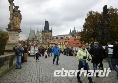 Nach ganz pünktlicher Ankunft konnten wir schon um 12:30 Uhr unsere Zimmer im Hotel „Diplomat" im Botschaftsviertel von Prag beziehen und wenig später zur ersten Ausflugstour durch das malerische Prag aufbrechen. Unsere beiden Stadtführerinnen Jana und Iva „ent"führten uns in das geschichtsträchtige Stadtviertel Kleinseite (Mala Strana) unterhalb der Prager Burg - nur 2 Metro-Stationen von unserem Hotel entfernt. Nach einer Einführung in die 1000-jährige Geschichte Prags führte uns unsere Erkundungstour zunächst zum größten Palast Prags, dem Barock-Palais Valdštejn (Wallenstein) mit seinen weitläufigen Gartenanlagen, wo heute der Senat des Parlaments der Tschechischen Republik residiert. Wir erlebten einen der wertvollsten Barockbauten nördlich der Alpen, die berühmte St. Niklas-Kirche auf dem Kleinseiter Platz, bestaunten die John-Lennon-Mauer und erreichten schließlich eine der berühmtesten Brücken Europas, die Karlsbrücke (ein Wahrzeichen Prags), die mit ihren 30 kunstvollen Figuren - einschließlich des Brückenheiligen Nepumuk - bezaubert.
