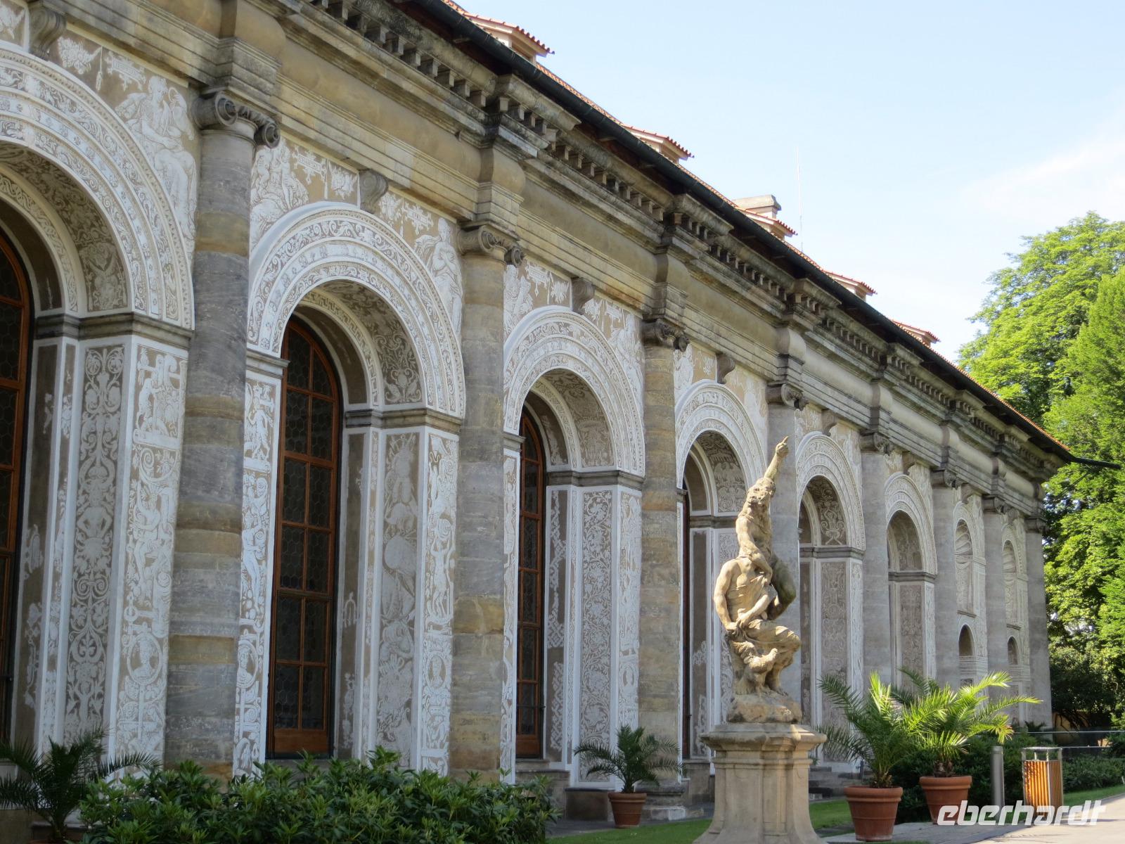 Die Prager Kleinseite ist vielleicht die Entdeckung für Gäste, die Jahrzehnte nicht mehr in Prag waren. In den achtziger Jahren an der Grenze des Verfalls einiger Gassen, strahlen uns heute prächtig restaurierte Paläste an. Ein touristische Topgebiet des Barock und der barockisierten Renaissance. Das Gebiet wird wesentlich bestimmt durch das Valdstein-Palais und die Kirche St. Nikolas. Durch die Gassen stiegen wir hinauf zur Deutschen Botschaft und schauten durch den Zaun zum „Genscher Balkon". Ein Solaris-Bus brachte uns dann wieder einige hundert Meter Richtung Valdstein-Palais, dem heutigen Gebäude des tschechischen Senats. Wir hatten am Sonnabend das Glück, durch einige der repräsentativen Säle gehen zu können. Durch den Garten des Palais führte unser Weg Richtung Moldau und auf die Kampa-Halbinsel. Auch diese ist nach Jahren des Zerfalls und mehreren Hochwassern zu großer Blüte erwacht. Am kleinen Kanal Certovka vorbei bummelten wir zur John-Lennon-Wand. Na, ja - da unterscheiden sich wohl die Meinungen über Kunst. Vorher standen wir jedoch noch am Denkmal David Cernys „Der Trabant auf vier Beinen" - aber pinkelt man auf Böhmen und Mähren? Von Kampa führte der Weg hinaus auf die Karlsbrücke, wo wir beim Heiligen Nepomok unseren Spaziergang durch die Prager Kleinseite beendeten und uns von der vielbelesenen und allseitig informierten Jana verabschiedeten. An diesem Nachmittag und Abend war nun viel Zeit für individuelle Vorhaben: Smetana oder Kaffka-Museum, der Hügel Petrin mit dem Prager Eifelturm, das Metronom auf dem Letna, das Strahov-Kloster, die alte Feste Vysegrad mit dem Prominentenfriedhof oder einfach nochmals Bummeln in den Gassen von Stara Mesto, Mala Strana oder Nove Mesto.