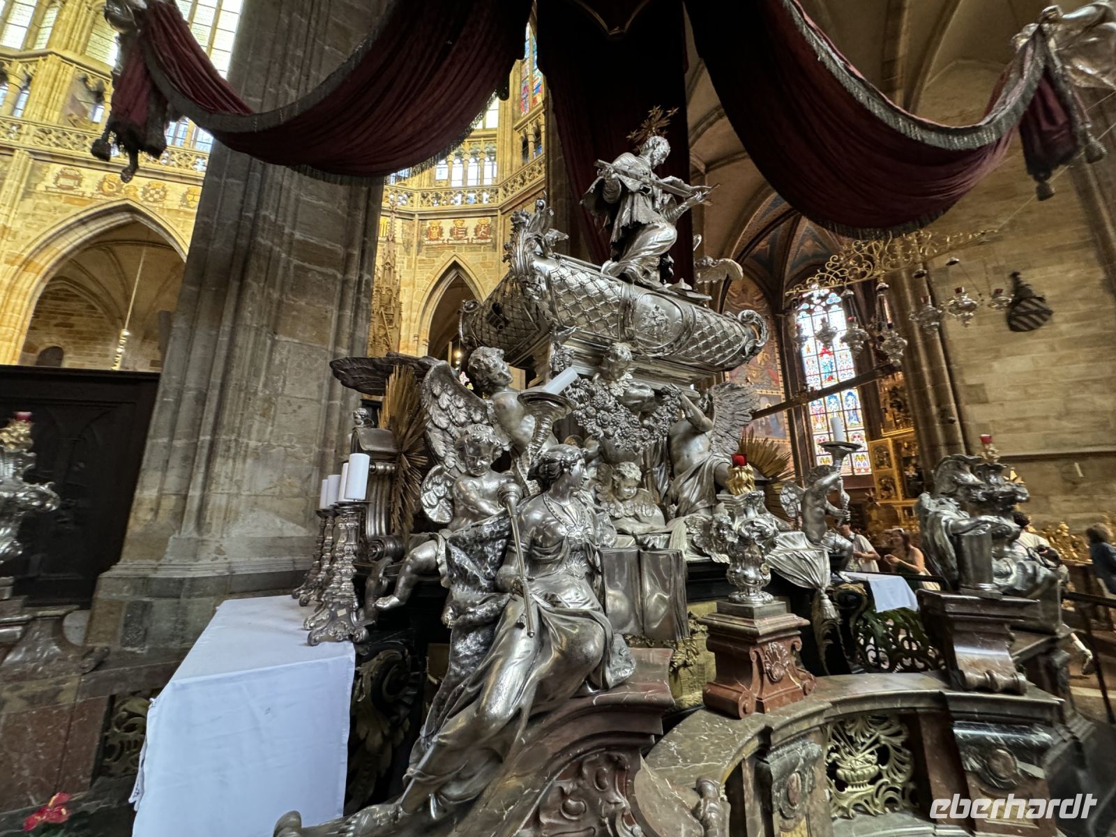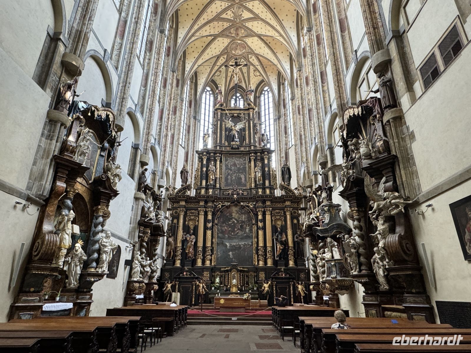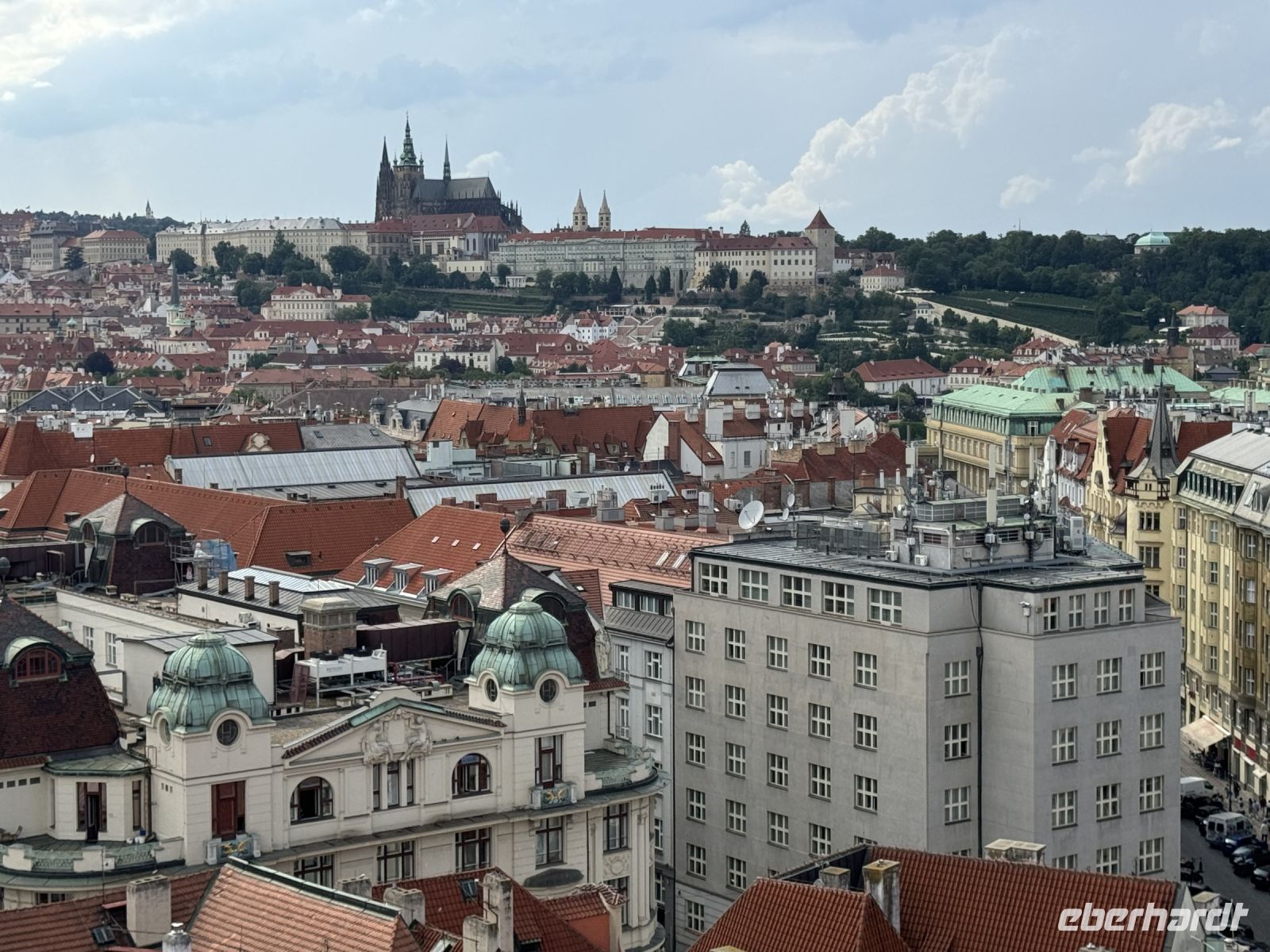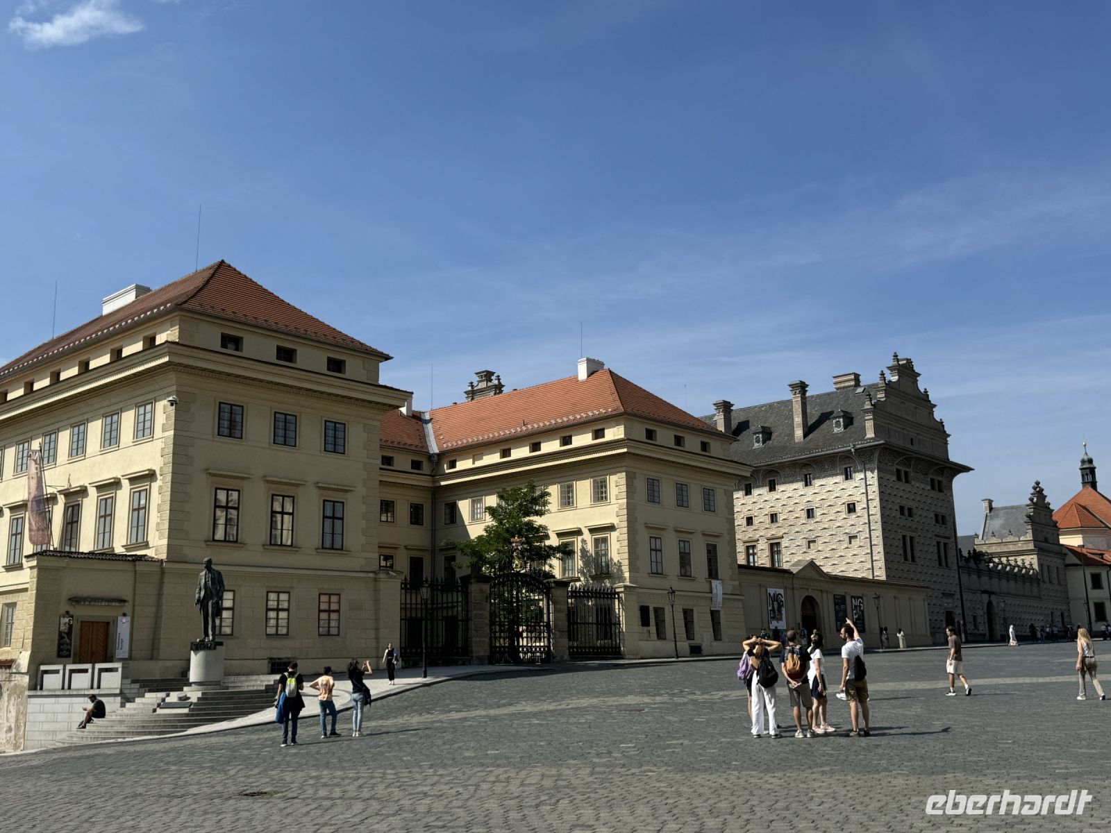 Der Vormittag unserer Städtereise nach Prag stand ganz im Zeichen der Prager Burg, dem größte in sich geschlossene Burgareal der Welt. Mit der Tram fuhren wir zum Burgberg. Am Burgtor erlebten wir die Wachablösung der Paradesoldaten. Nach einem kurzen Blick auf den Burgplatz besichtigten wir den imposanten gotischen Veitsdom mit seinen schillernden Mosaikfenstern und dem faszinierenden, silberverzierten Grab des Heiligen Nepomuk. Anschließend spazierten wir durch die Innenhöfe der Burg zum ehemaligen Königspalast. Direkt beim Betreten begeistert uns die verspielten Deckenverzierung des Vladislav-Saals. Wir sehen das wahrscheinlich berühmteste Fenster Mitteleuropas: Im Mai 1618 fand an dieser Stelle Prager Fenstersturz statt, welcher den Dreißigjährigen Krieg auslöste. Nach einem kurzen Besuch der architektonisch beeindruckenden romanischen St. Georgs-Basilika erreichten wir schließlich das Goldene Gässchen. Ursprünglich der Ort, an welchem die Ärmsten der Stadt auf engstem Raum zusammenlebten, aber auch Franz Kafka sich inspirieren ließ und Alchemisten schufen. Nach einem herrlichen Blick von der Burg auf Prag stigen wir hinab zum Wallenstein-Palais mit seinem europaweit geschätzten Barockgarten.