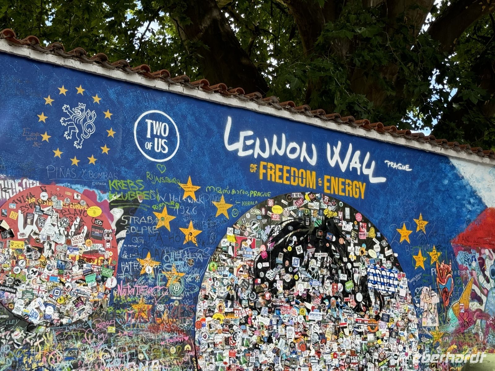 Mit der Standseilbahn fuhren wir bergauf in Richtung Laurenziberg bis zur Zwischenstation. Zu Fuß gingen wir dann sonnengeschützt unter Bäumen in Richtung Strahov- Kloster und sahen die imposanten Sehenswürdigkeiten Prags von oben. Wir gingen zu Fuß vorbei an den schönen Palästen der Kleinseite Kleinseite und konnten auch einen Blick auf den Garten der Deutsche Botschaft werfen und die Ereignisse von 1989 dort rekapitulieren. Nach einem kurzen Stopp im Wallensteinpalais besuchten wir die Insel Kampa mit der symbolischen John Lennon-Wall und dem künstlich angelegten Moldauarm Certovka - Teufelsbach. Ziel des Rundgangs ist die weltberühmte gotische Karlsbrücke mit ihren 30 Statuen und Statuengruppen. Die wohl berühmteste Statue ist jene des Heiligen Johannes von Nepomuk, welcher der Überlieferung nach an eben jener Stelle 1393 ertränkt wurde. Natürlich wurden dort die persönlichen Wünsche durch Berühren der Reliefplatten dem guten Geiste übergeben Am Nachmittag spazierte ein Teil der Gruppe nach gemeinsamen Essen über den Wenzelsplatz.