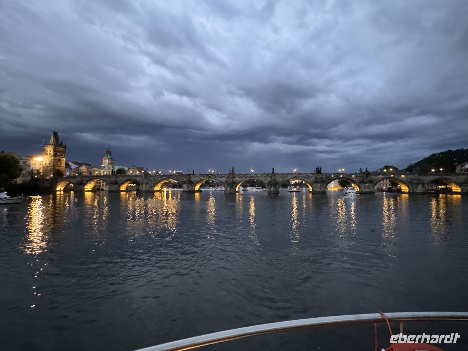 Der Tag klang aus mit einer 3-stündigen Dinner-Cruise auf der Moldau mit reichhaltigen Buffet. Nach der Tour erfreuten wir uns noch an einem Rundgang durch das nächtliche Prag und erfreuten uns an illuminierten Sehenswürdigkeiten, die uns schon am Tage erklärt worden waren.