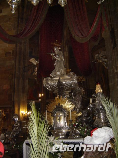 In der Teynkirche erzählte uns Jana vom dänischen Astronomen Tycho Brahe, der sich Ende des 16. Jahrhunderts in Böhmen niederließ. Viele Legenden kursieren um den Tod des bedeutenden Astronoms, zum Beispiel dass seine Harnblase geplatzt sei, weil er sich nicht getraute, den Tisch bei Anwesenheit des Kaisers zu verlassen. Überrascht waren wir auch über die Entdeckung der Nasenprothese Brahes.