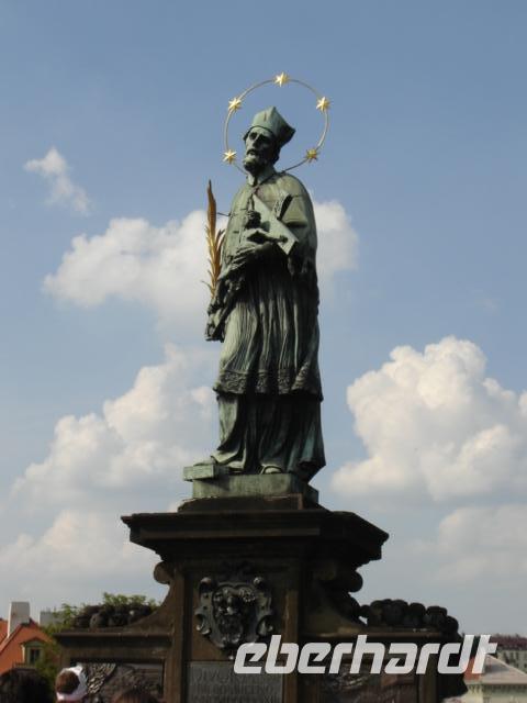 Unser letzter Höhepunkt der Stadtführung war die Karlsbrücke. Heute hatten wir die Karlsbrücke von einer anderen Seite erlebt - im Trubel der vielen Besucher schien sie heute das Zentrum jeglichen Geschehens zu sein. Auch zur Karlsbrücke verriet uns Jana viele aufregende Geschichten, wie die Legende zum heiligen Johannes Nepomuk, dem Brückenheiliger. Der treue und verschwiegene Priester wurde auf Befehl des jähzornigen, eifersüchtigen Königs Wenzel IV. von der Karlsbrücke ins Wasser gestürzt. Danach erhob sich sein Leichnam und es erschienen fünf Sterne auf der Moldau, welche für die fünf Buchtaben des latainischen Wortes "tacui" (zu Deutsch "ich habe geschwiegen" stehen.
