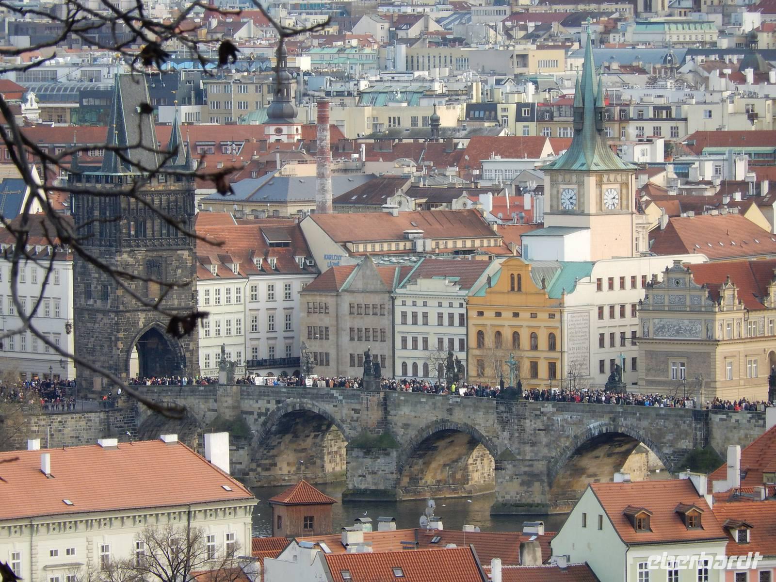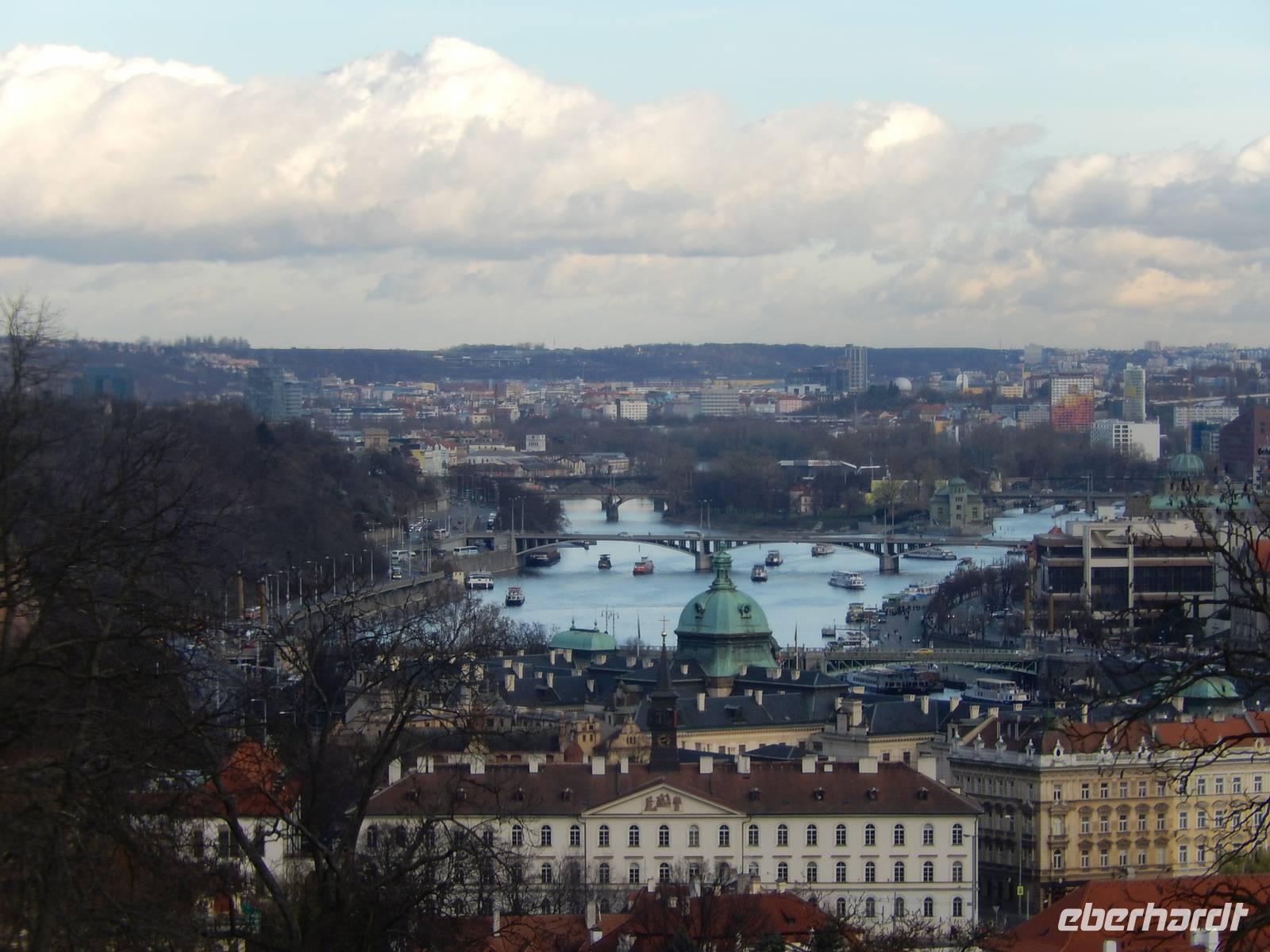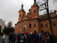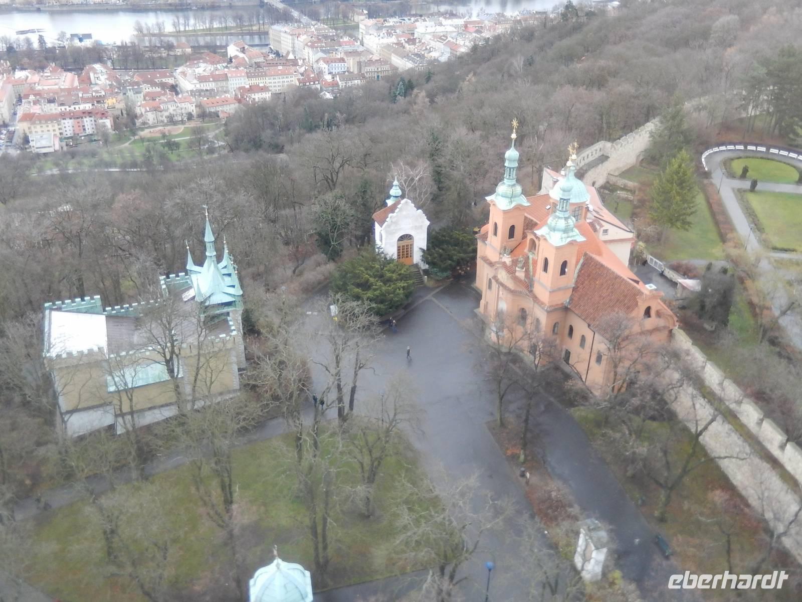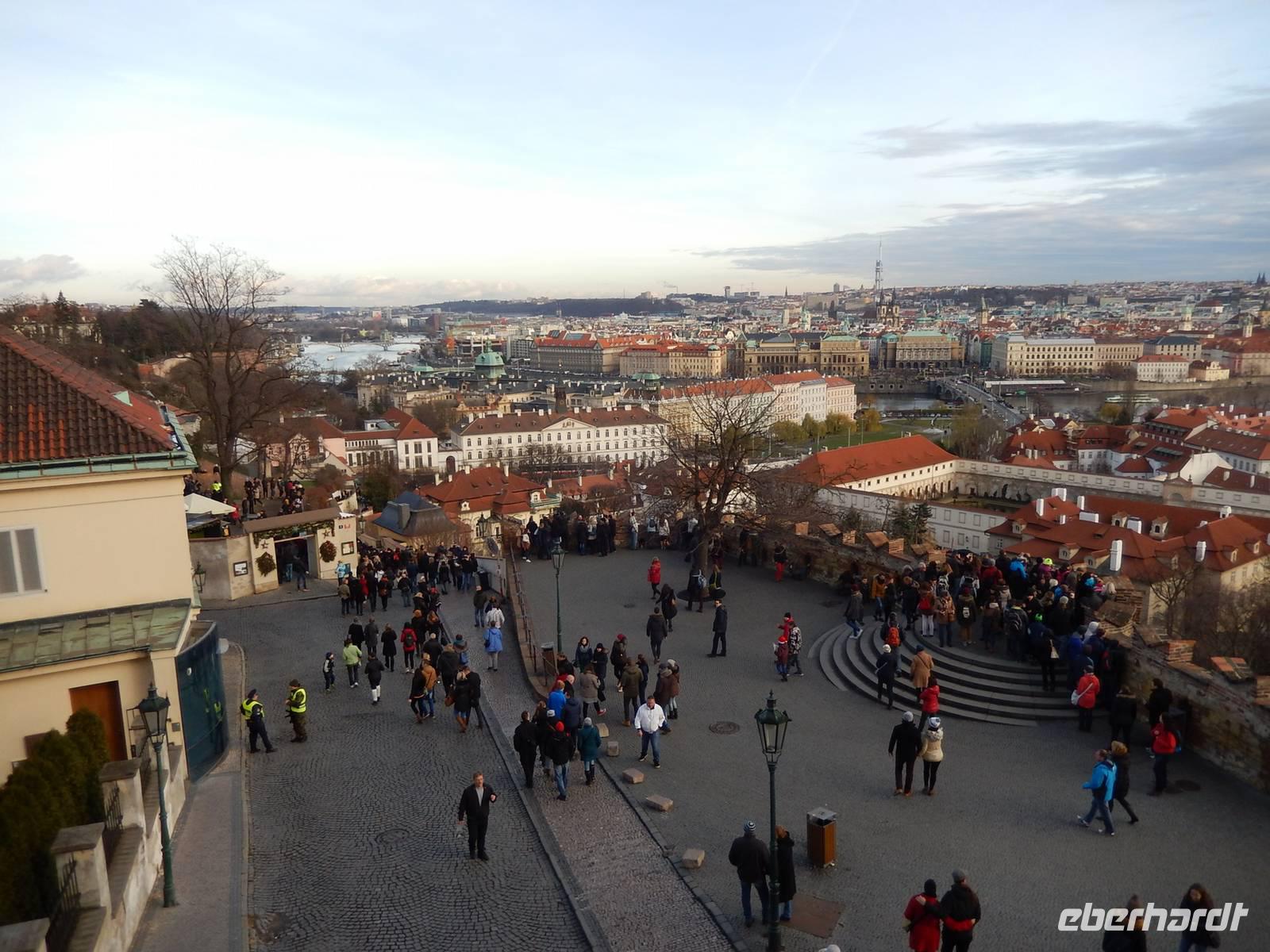 Nach gutem Schlaf wurden wir zum reichhaltigen Frühstücksbuffet mit Musik vom Klavier verwöhnt und konnten uns für den bevorstehenden anstrengenden Tag stärken. Das Buffet ließ keine Wünsche offen und gut gelaunt trafen wir uns in der Lobby und dort auf unsere freundliche Stadtführerin Irena, die uns die kommenden Tage begleiten sollte. Unsere erste Station war der Berg Petrin, den wir eigentlich mit einer Standseilbahn erreichen wollten. Leider wird diese im Moment gewartet und da uns noch einige Kilometer an diesem Tag erwarten sollten, haben wir uns für eine bequeme Anreise per Kleinbus-Taxi entschieden. Kurz vor 10 Uhr waren wir da und unsere erste Station hieß Spiegelsaal... So manch einer fühlte sich zurückversetzt in Kindertage beim Bewundern der Spiegelbilder. Wir haben herzlich gelacht! Und dann standen wir am Eiffelturm - richtig gelesen, am Eiffelturm. Ein wenig kleiner als das Original in Paris, aber für unsere Zwecke optimal. Zum einen handelt es sich dabei um eine Sehenswürdigkeit, die nicht zum Standardprogramm in Prag gehört udn zum anderen hat man von hier einen fantastischen Ausblick über Prag. So konnten wir auch ein paar schöne Fotos schießen. Einige von uns sparten sich dabei den Aufzug, der uns noch knarrenderweise nach oben gebracht hatte und spazierten die 299 Stufen wieder turmab. Eisiger Wind aber auch tolle Blicke waren der Lohn. Nach diesen Höhepunkten begann der anstrengende Teil des Tages. Zuerst spazierten wir gemütlich mit Irena in Richtung Burgviertel. Plötzlich rannte Uwe vom Ende der Gruppe ganz nach vorn - eine sportliche Höchstleistung! Grund dafür war die Intuition ein traumhaftes Gruppenbild zu schießen, in Ruhe vor der Kulisse von Prag bevor wir uns in Richtung Burg bewegen. Vorbei am Lorettoplatz suchen wir uns aber erstmal ein Restaurant zur Stärkung. Wir kehren im "Nepomuk" ein und jeder stärkt sich individuell für die folgenden Kilometer. Das Essen ist schmackhaft - zumindest bei den meisten - und die Bedienung... naja, wichtig ist ja, dass wir pünktlich zur Wachablösung vor den Toren des Hradschin stehen. Spätestens ab hier merken wir auch, wie attraktiv die tschechische Hauptstadt für Touristen aus aller Welt ist. Es fällt Irena nicht imemr leicht unsere eigentlich angenehm kleine Gruppe immer zusammen zu halten, aber mit orangen Handschuhen und auberginfarbene Schirm und bei diesen top disziplinierten Gästen geht natürlich alles gut. Und so bewundern wir im Alten Königspalast natürlich die historisch berühmte Böhmische Kanzel, von der aus der Prager Fenstersturz 1618 quasi den 30-jährigen Krieg auslöste... Anschließend stehen die St. Georgs Basilika und das Goldene Gässchen auf dem Programm und mit Irena an unserer Seite bleibt keine Frage unbeantwortet. Zum Schluss schlüpfen wir noch in den monumentalen St. Veits-Dom und lauschen den Geschichten von Nepomuk und dem Heiligen Wenzel. Am Ende haben wir ein bisschen Zeitnot, denn unser voll gepacktes Programm wartet mit dem nächsten Höhepunkt. An der Haltestelle Prager Burg steigen wir in eine